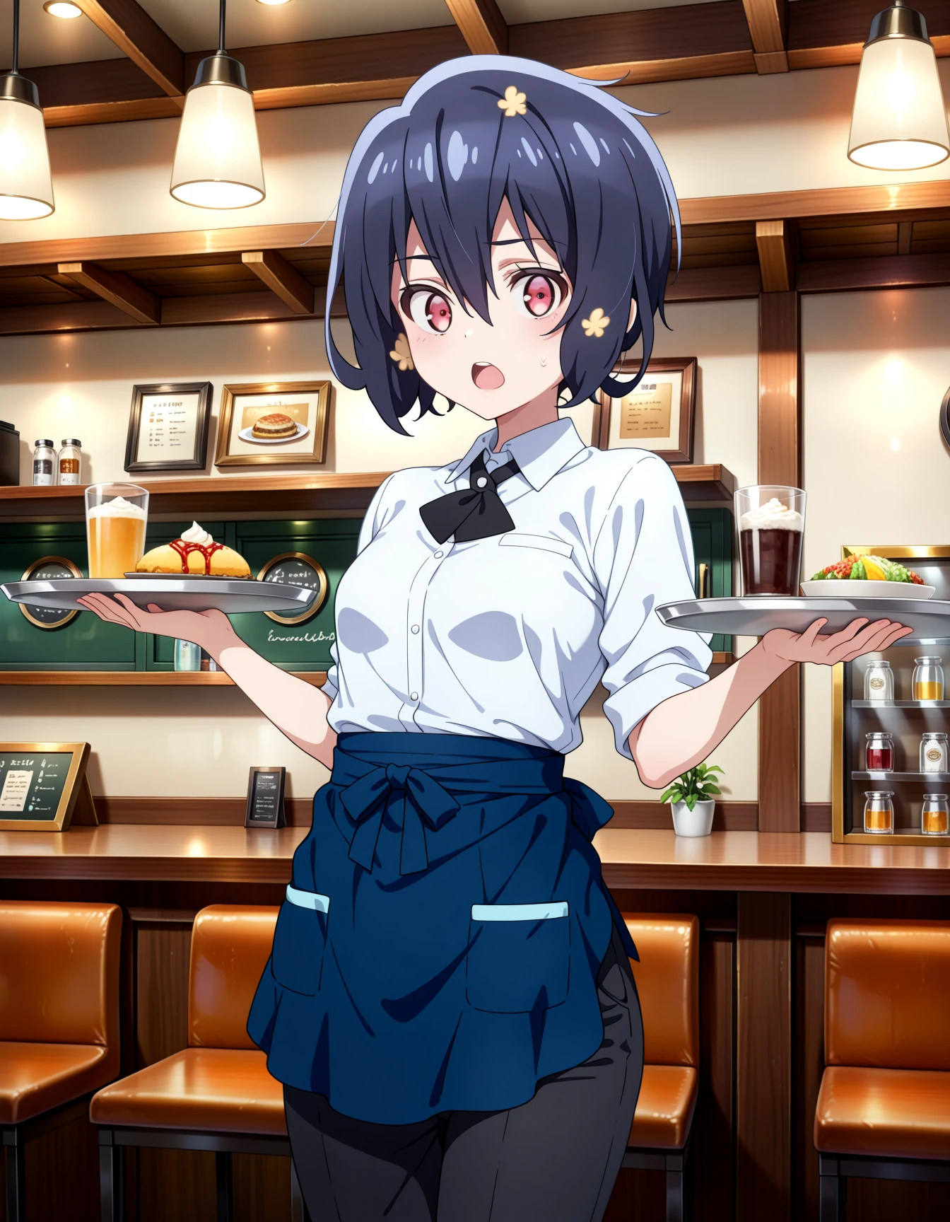 mizuno ai, short hair, mini hair flower, hair between eyes, small breasts,