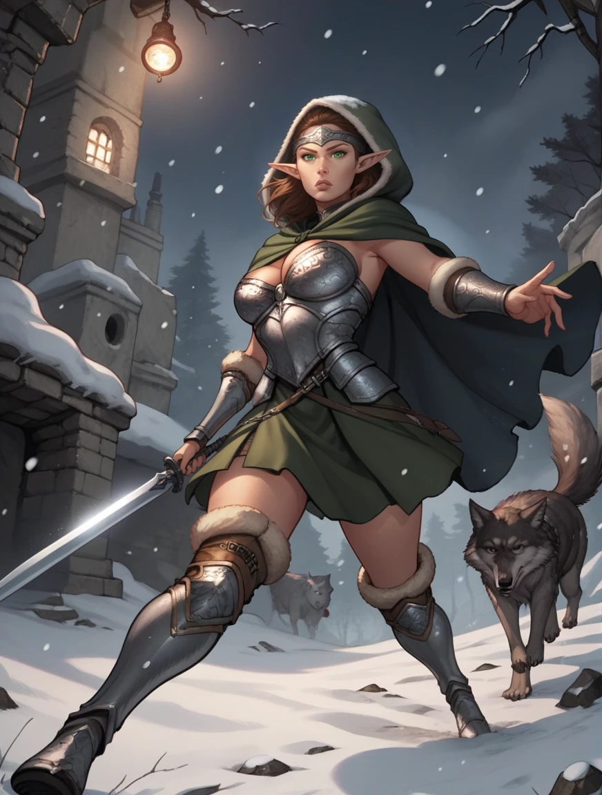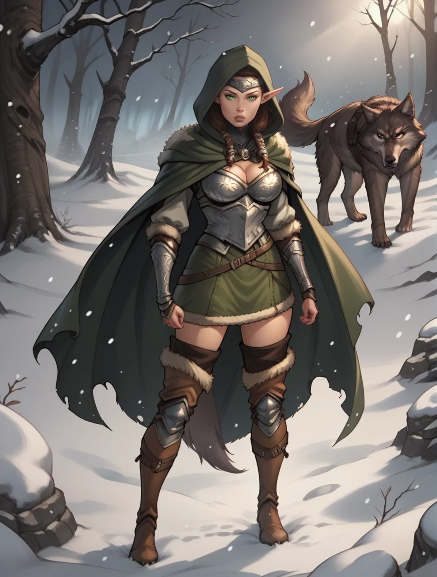 thighboots, armor, fur trim, cape, boots, forehead protector,