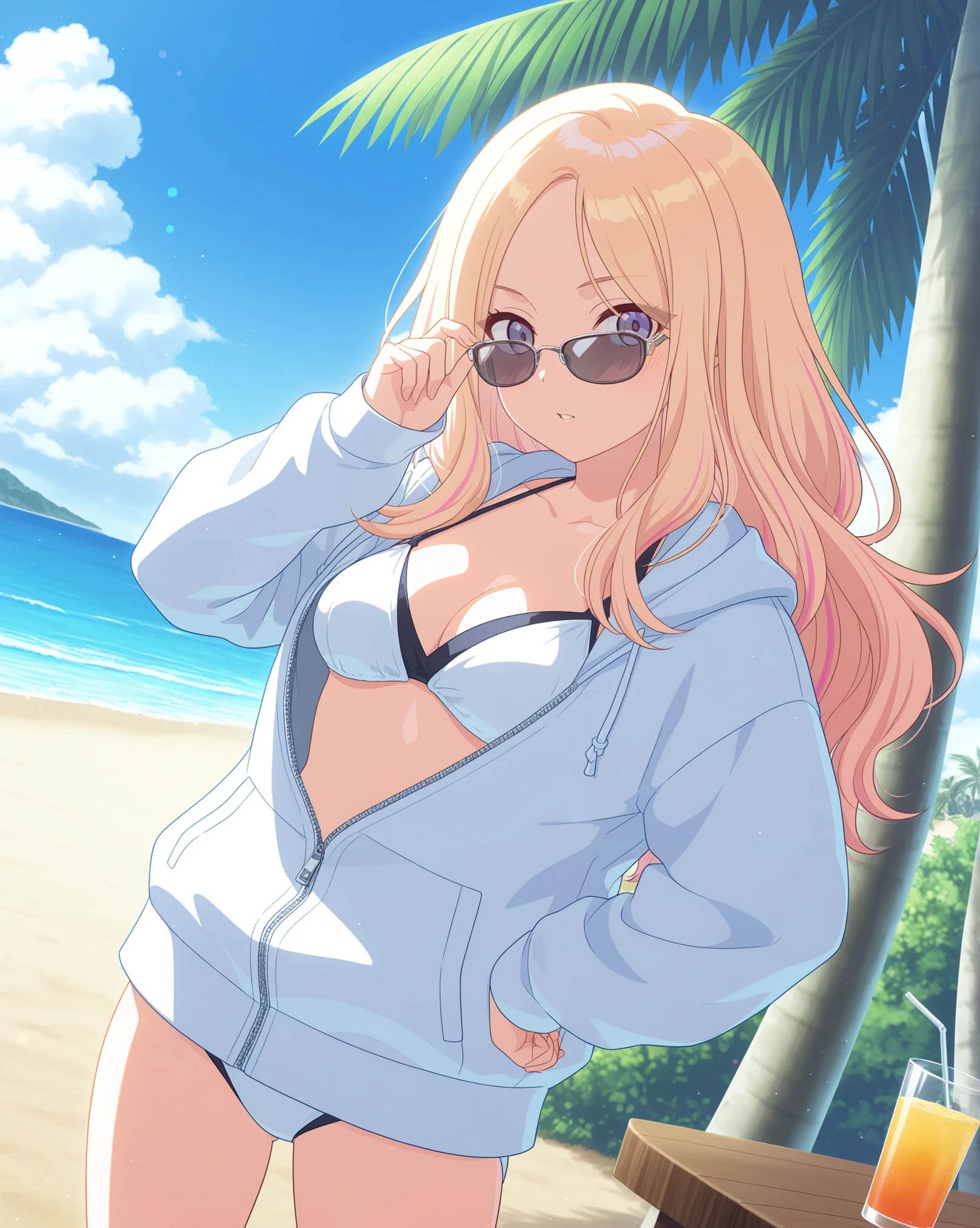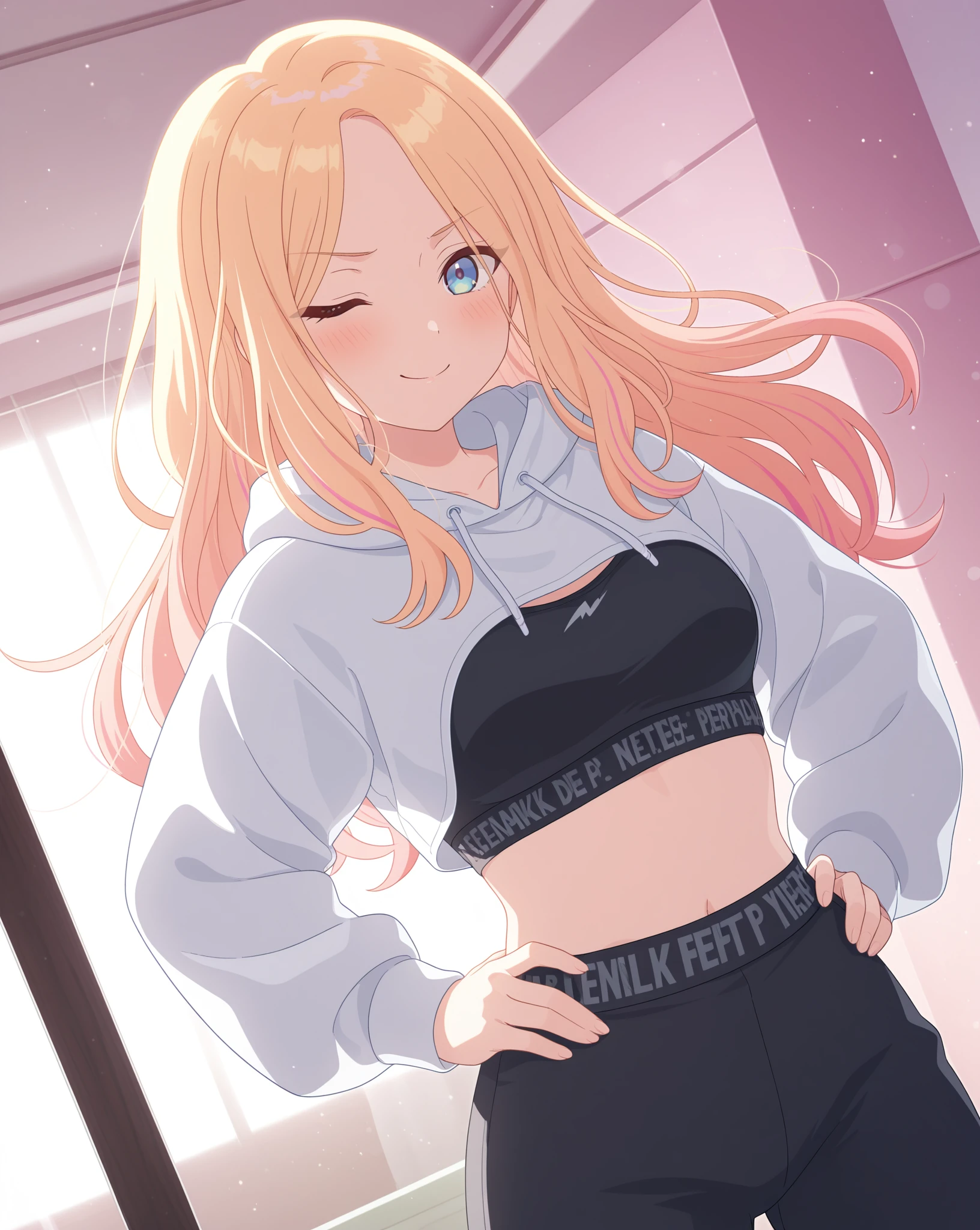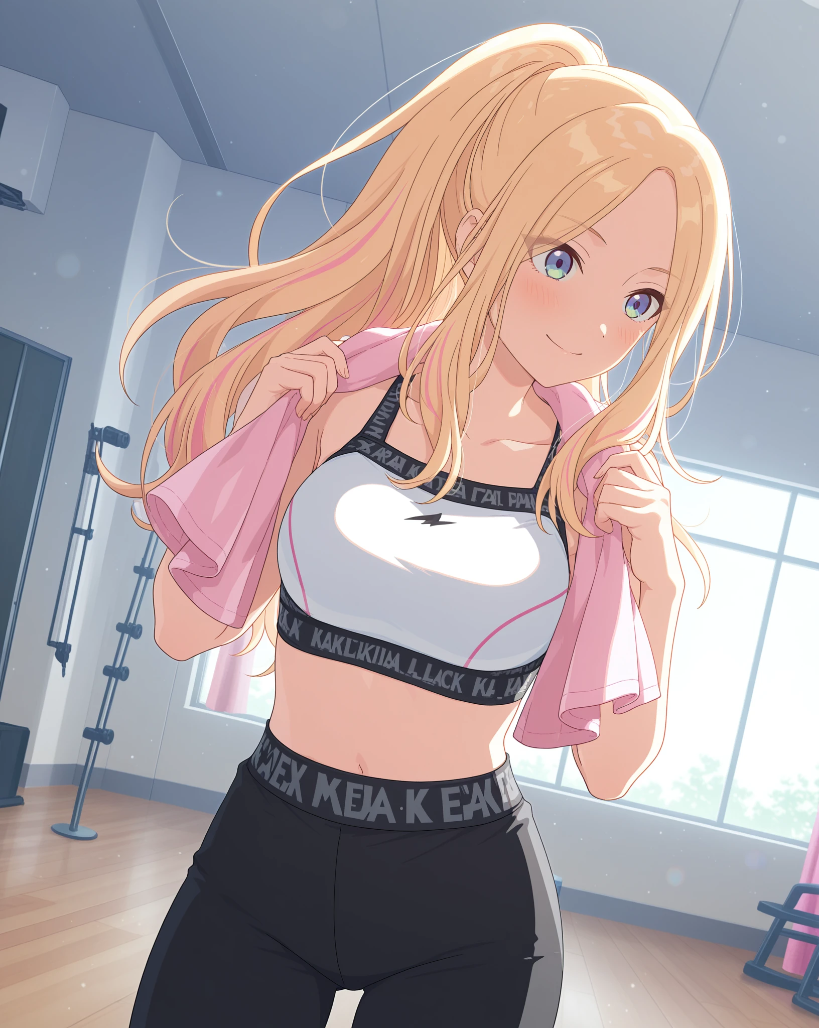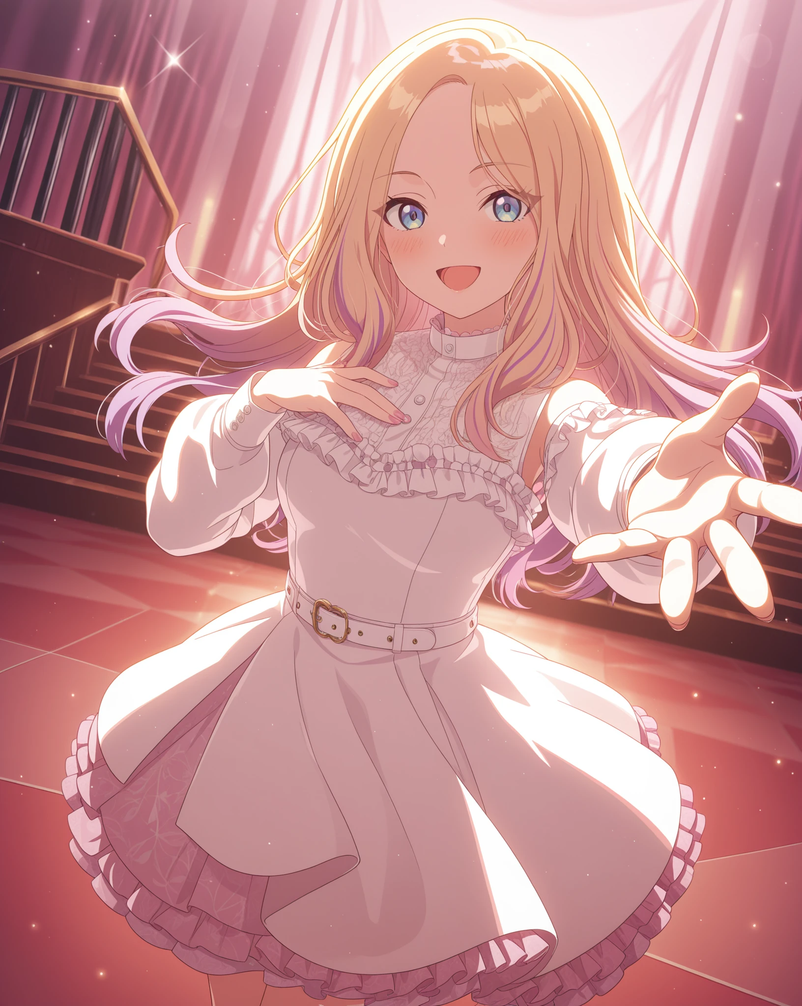 Base: sena765pro, long hair, blonde hair, pink highlights, blue eyes, purple eyes, streaked hair