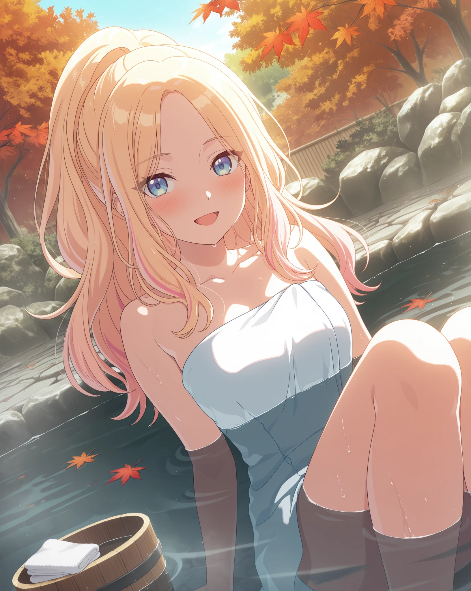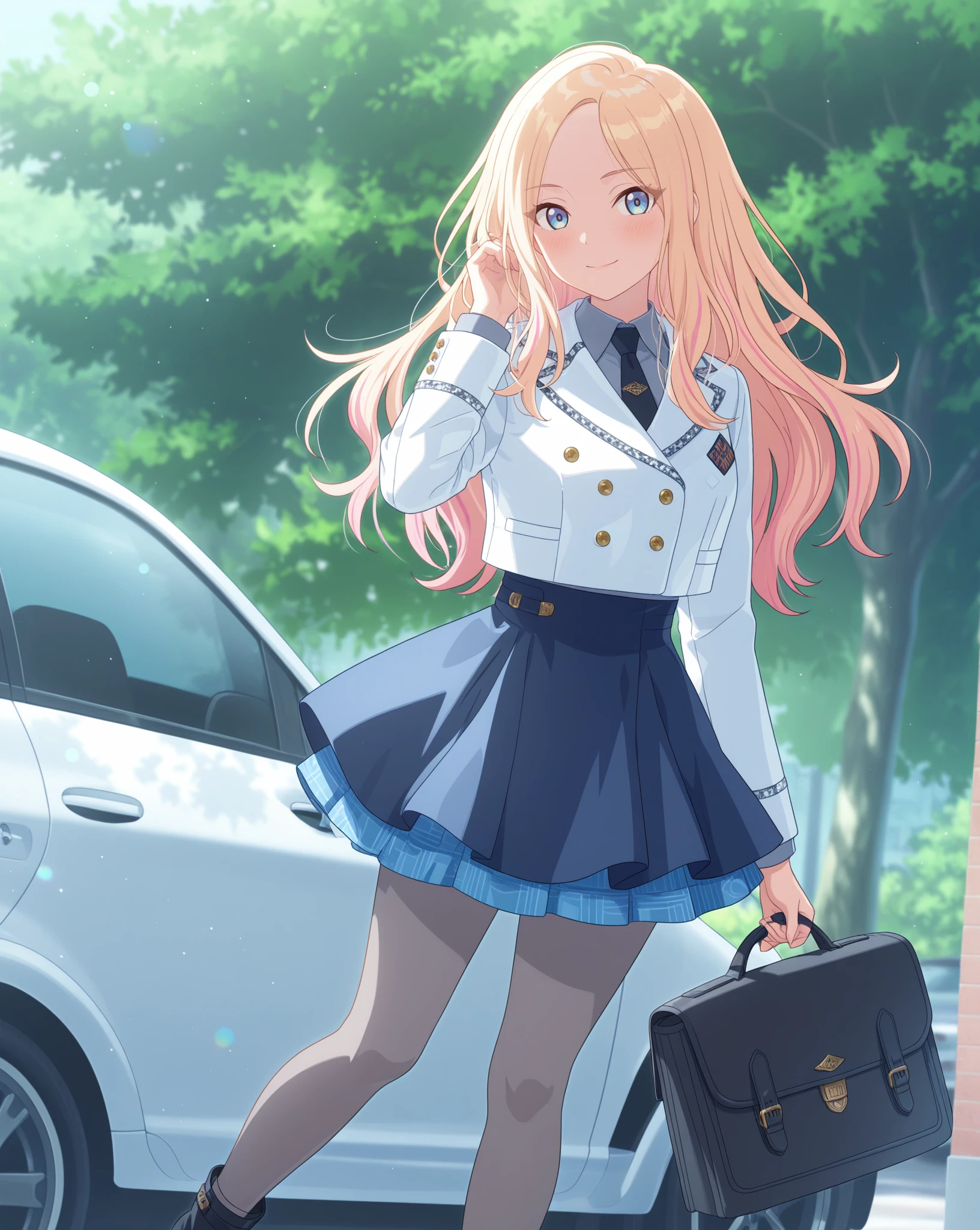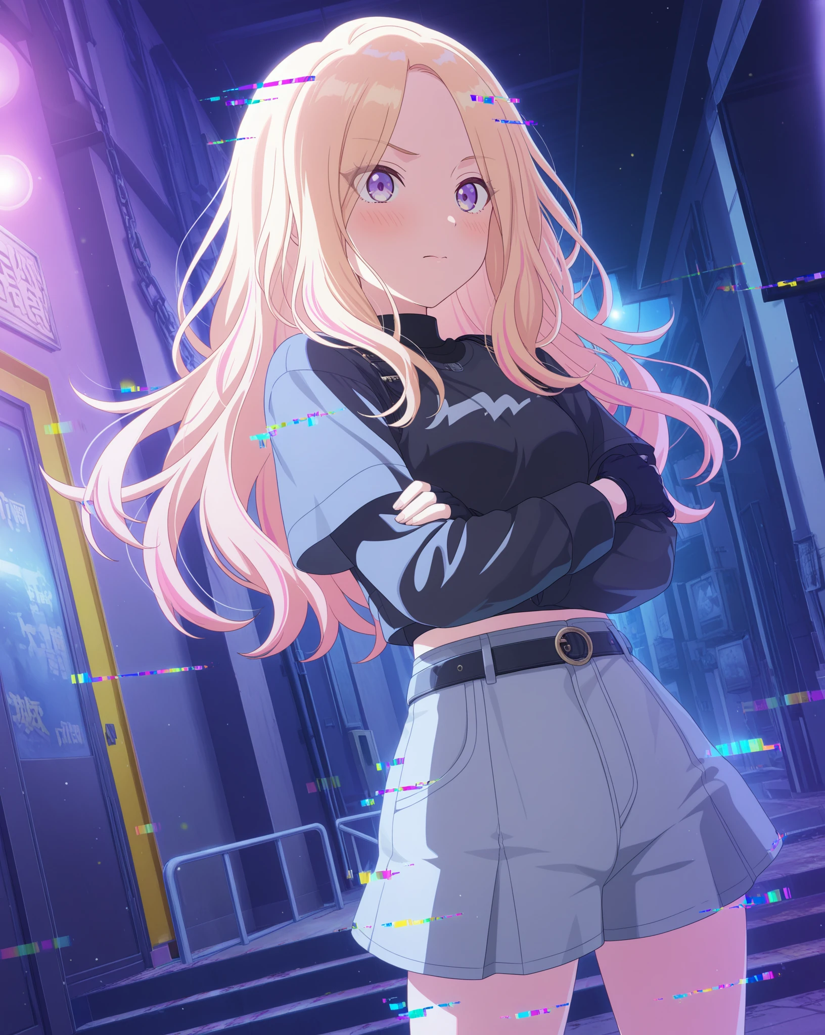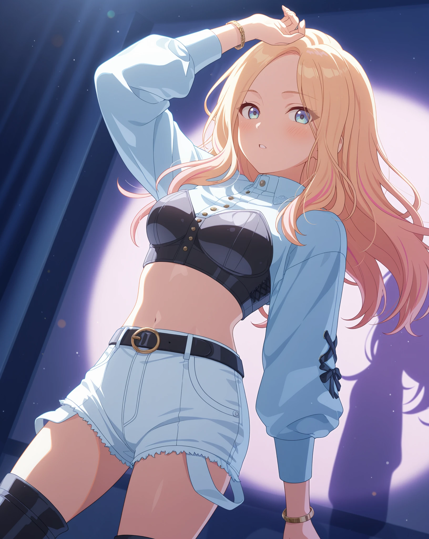 Base: sena765pro, long hair, blonde hair, pink highlights, blue eyes, purple eyes, streaked hair