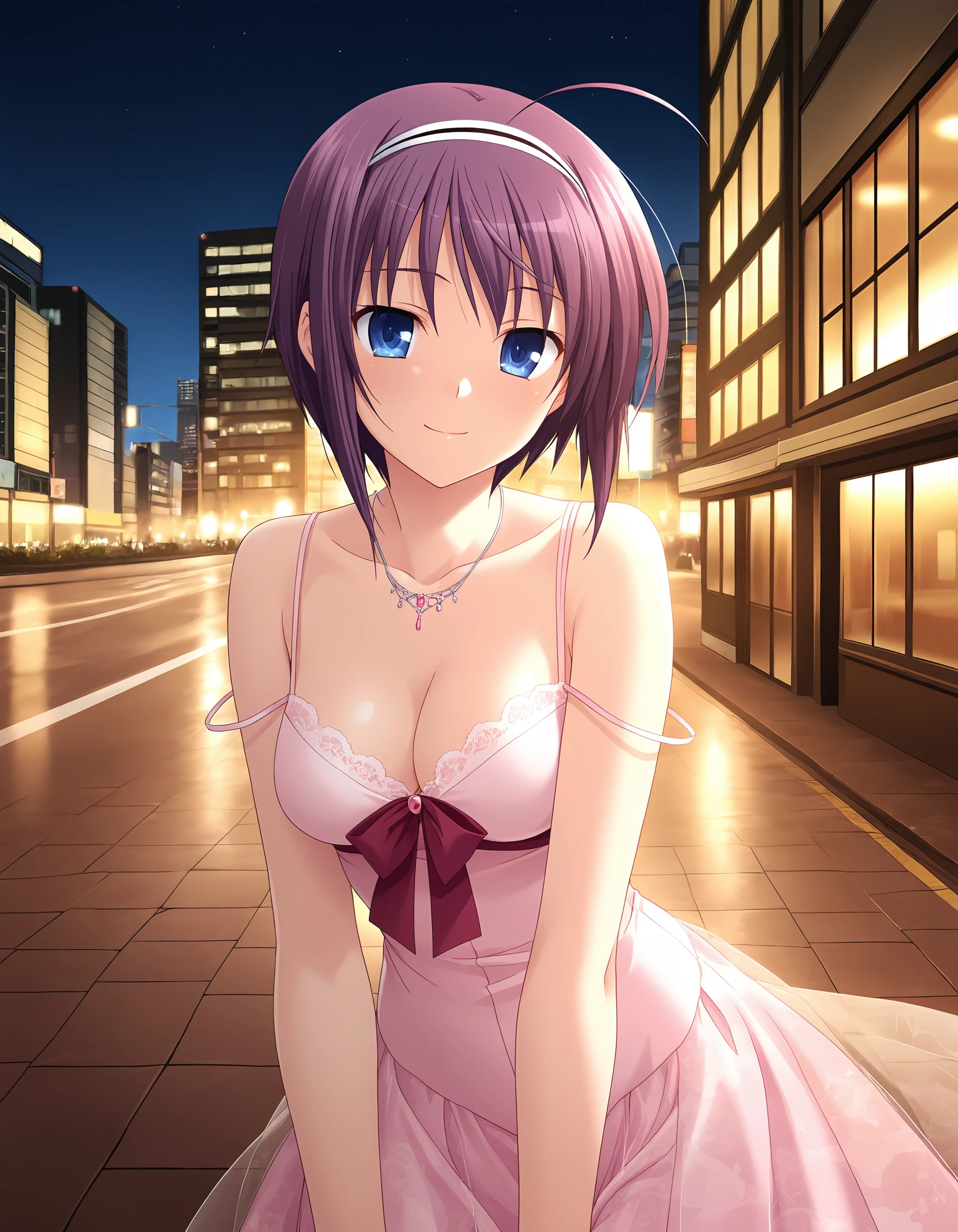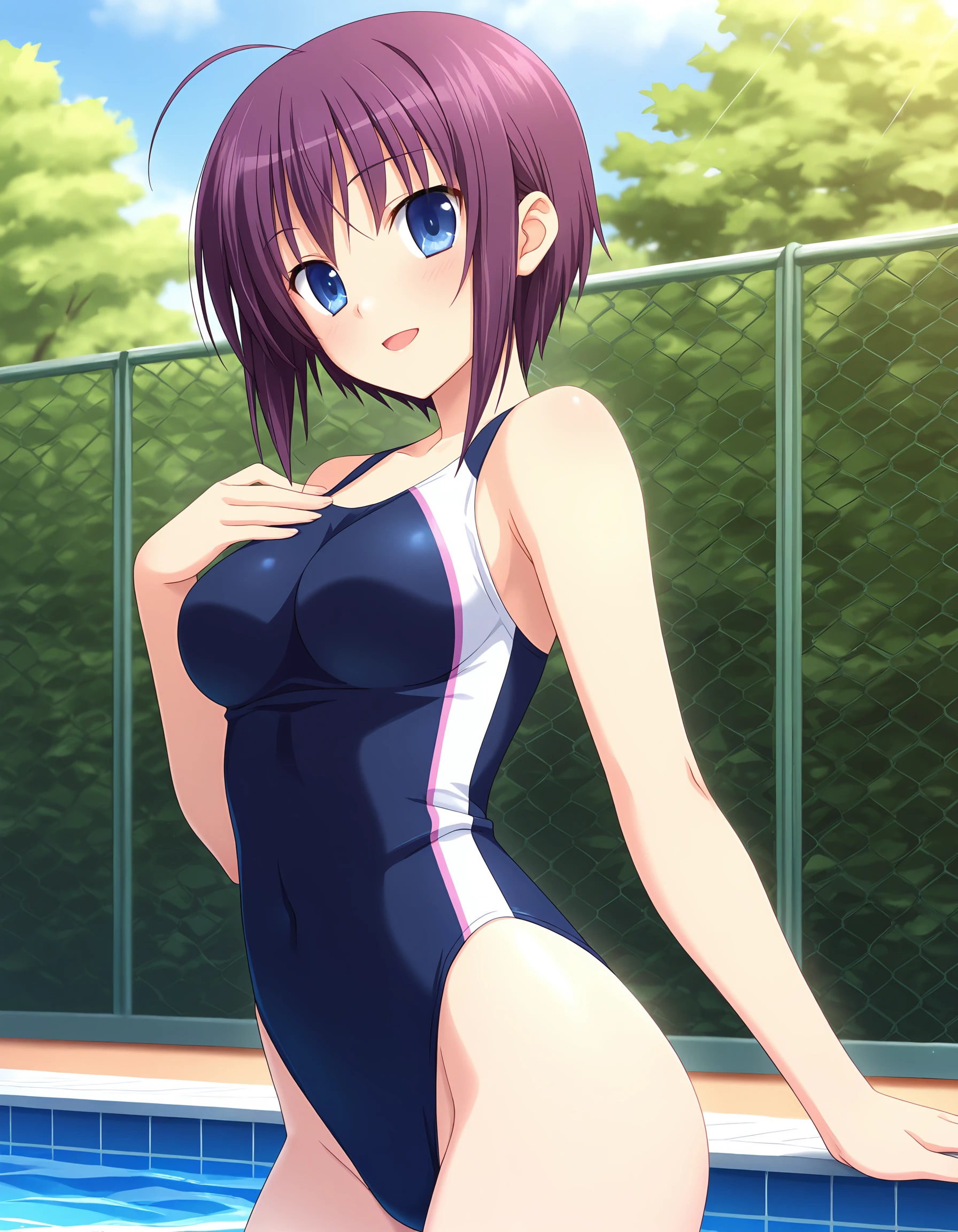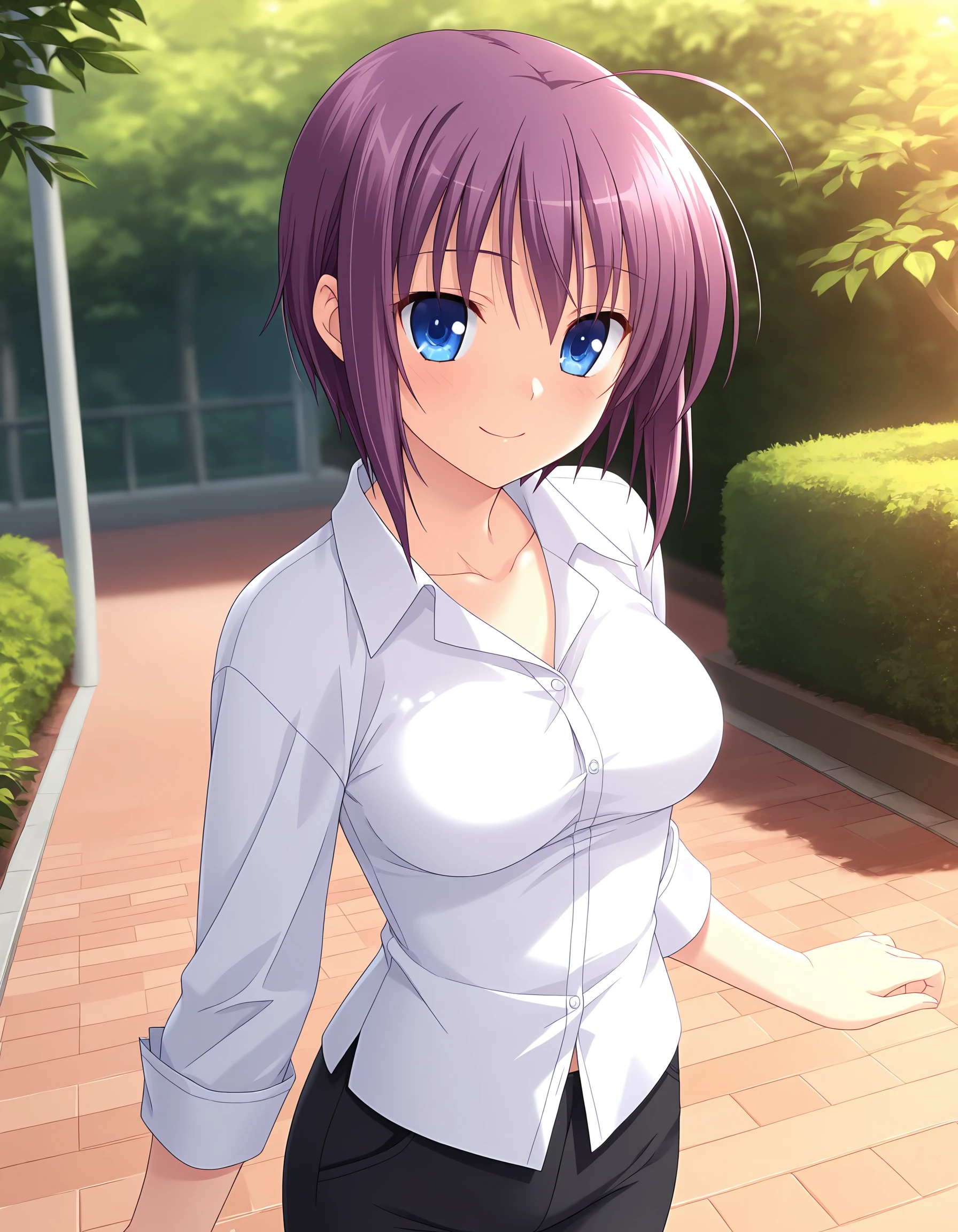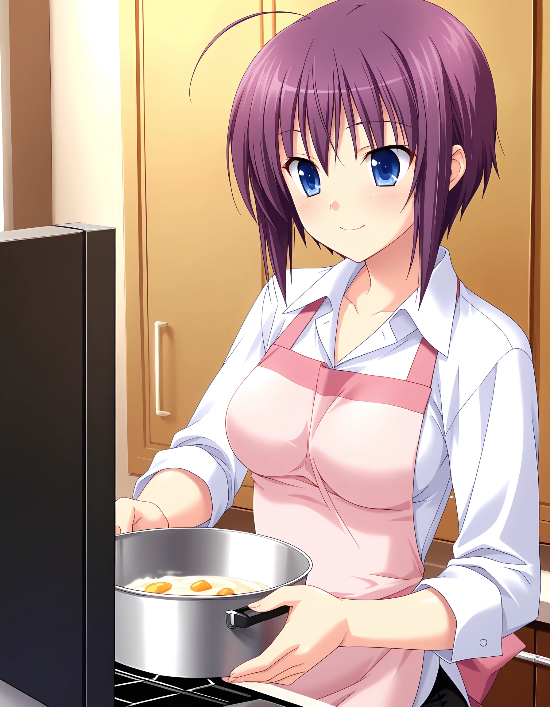 kirishima_yu, purple hair, short hair, sidelocks, hair down, ahoge, blue eyes, medium breasts,