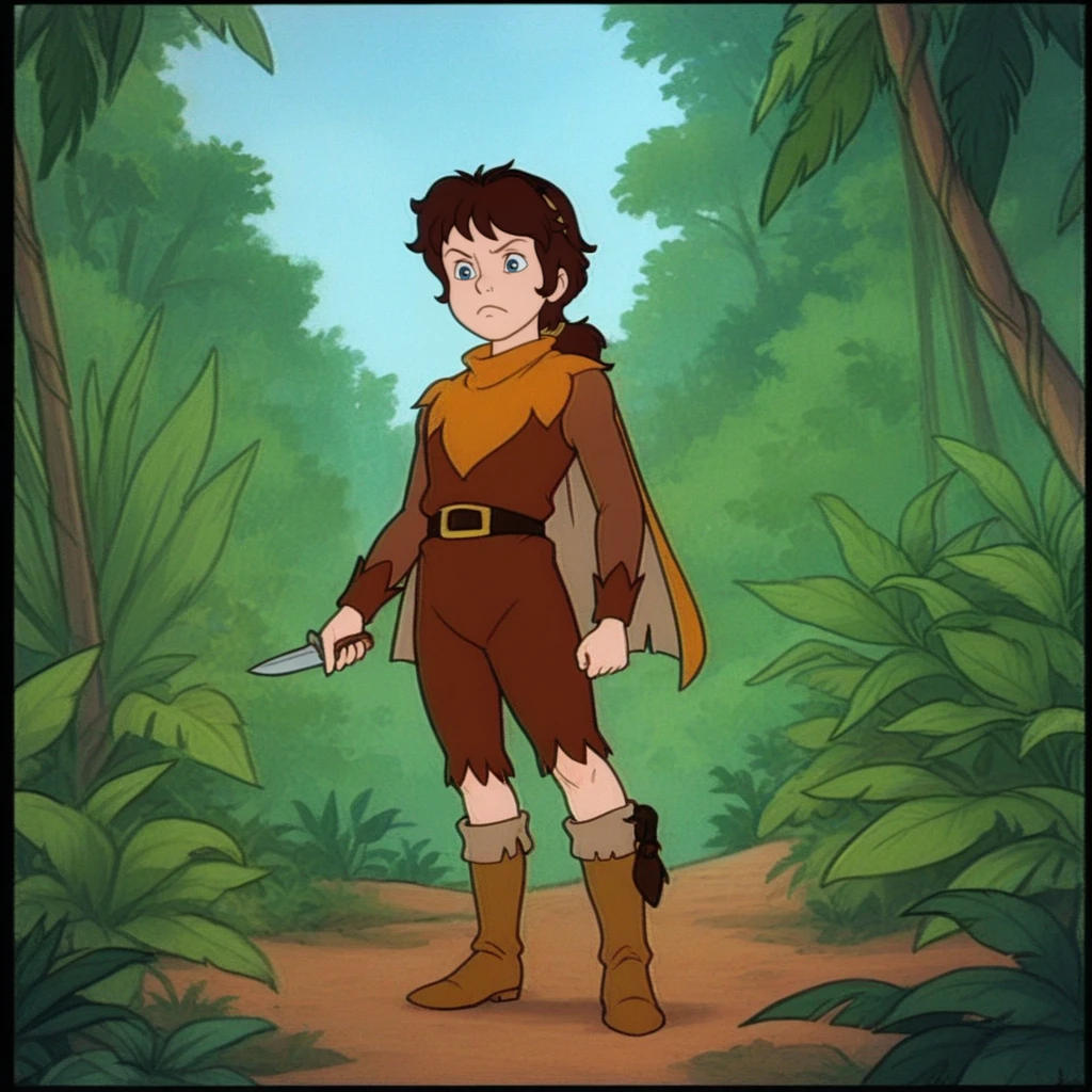 NOTE: If you want Peter Pan to carry his knife (which upon testing is not like how his knife looked in the cartoon), sometimes he may carry more than one and he may also sometimes either have his sheath (where he carries his knife on his right boot in the cartoon) appear in the left boot or have more than one sheath appear at once (even on his waist). If that's the case, maybe you can try adding these negative tags multiple sheaths and multiple knives.