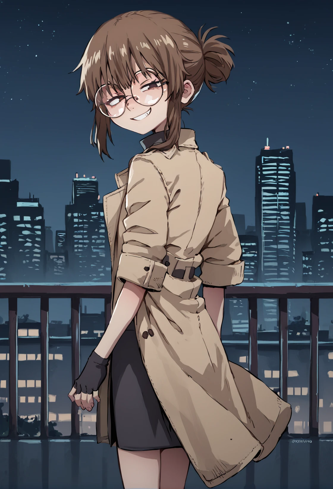Uguisu Anko, best quality, 1girl, brown hair, ponytail, black eyes, glasses, round glasses