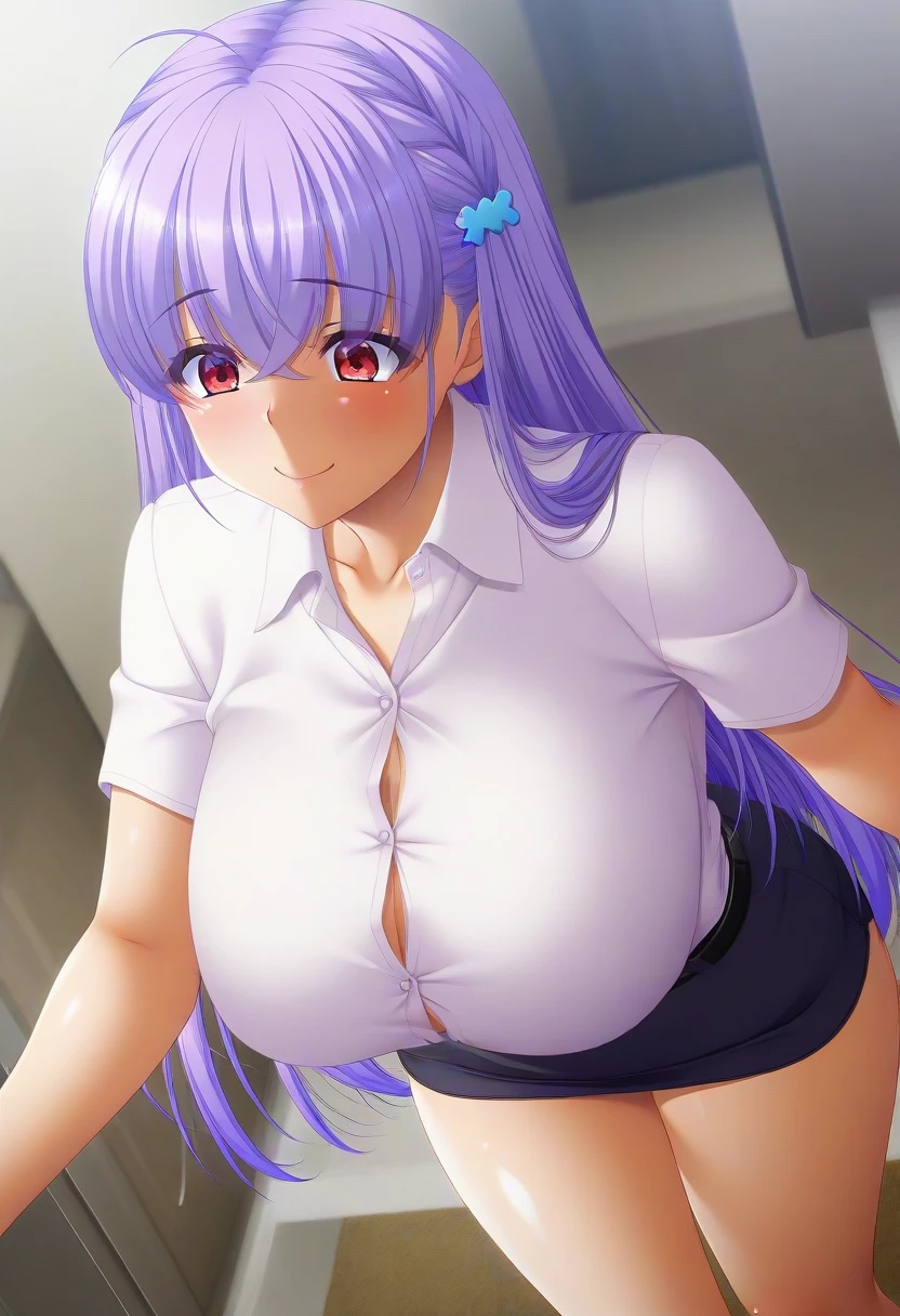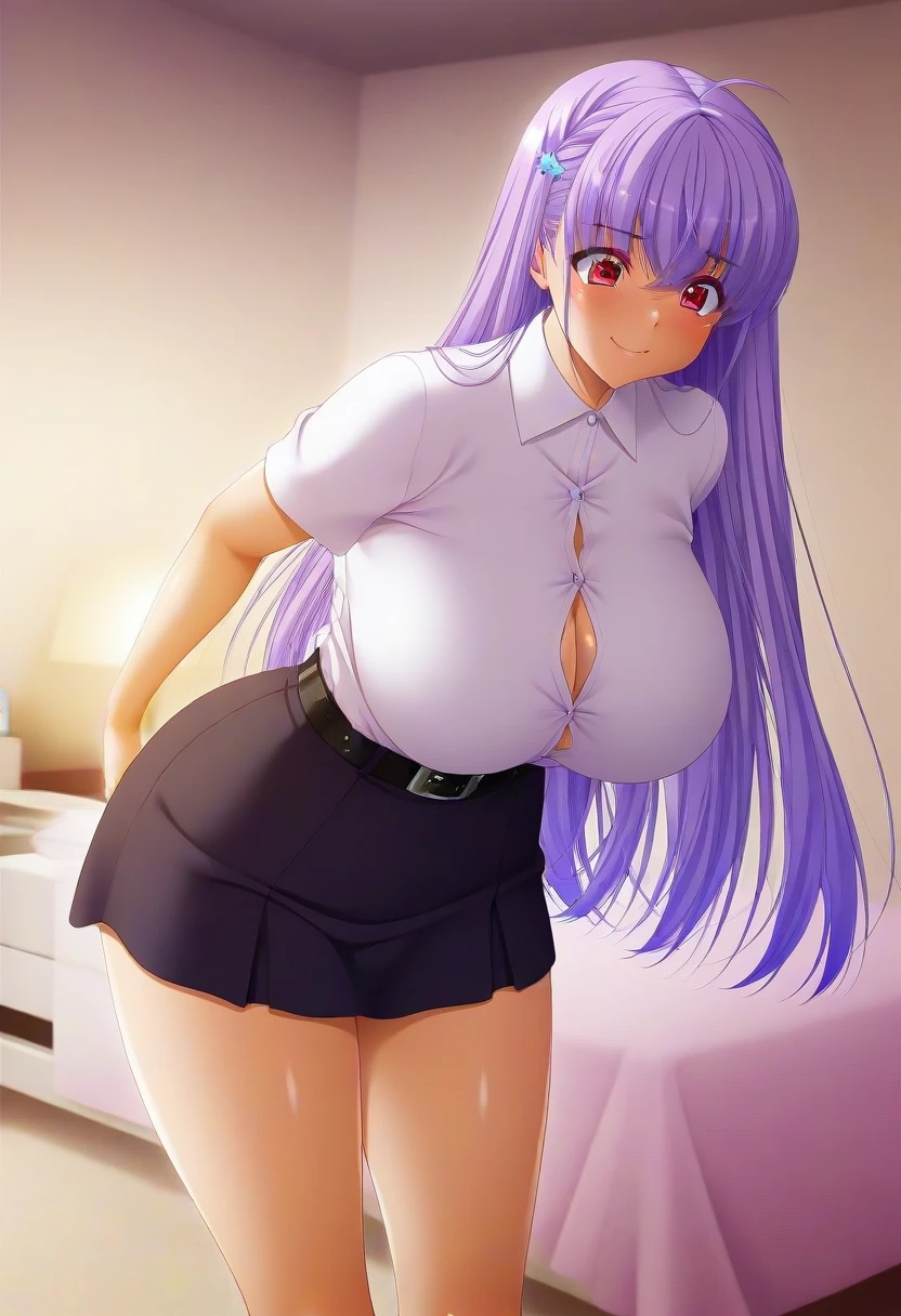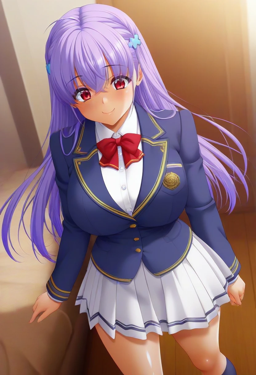 Recommend Prompt:Inori Sawami, red eyes, violet hair, long hair, ahoge, tiny braid, hair ornament,