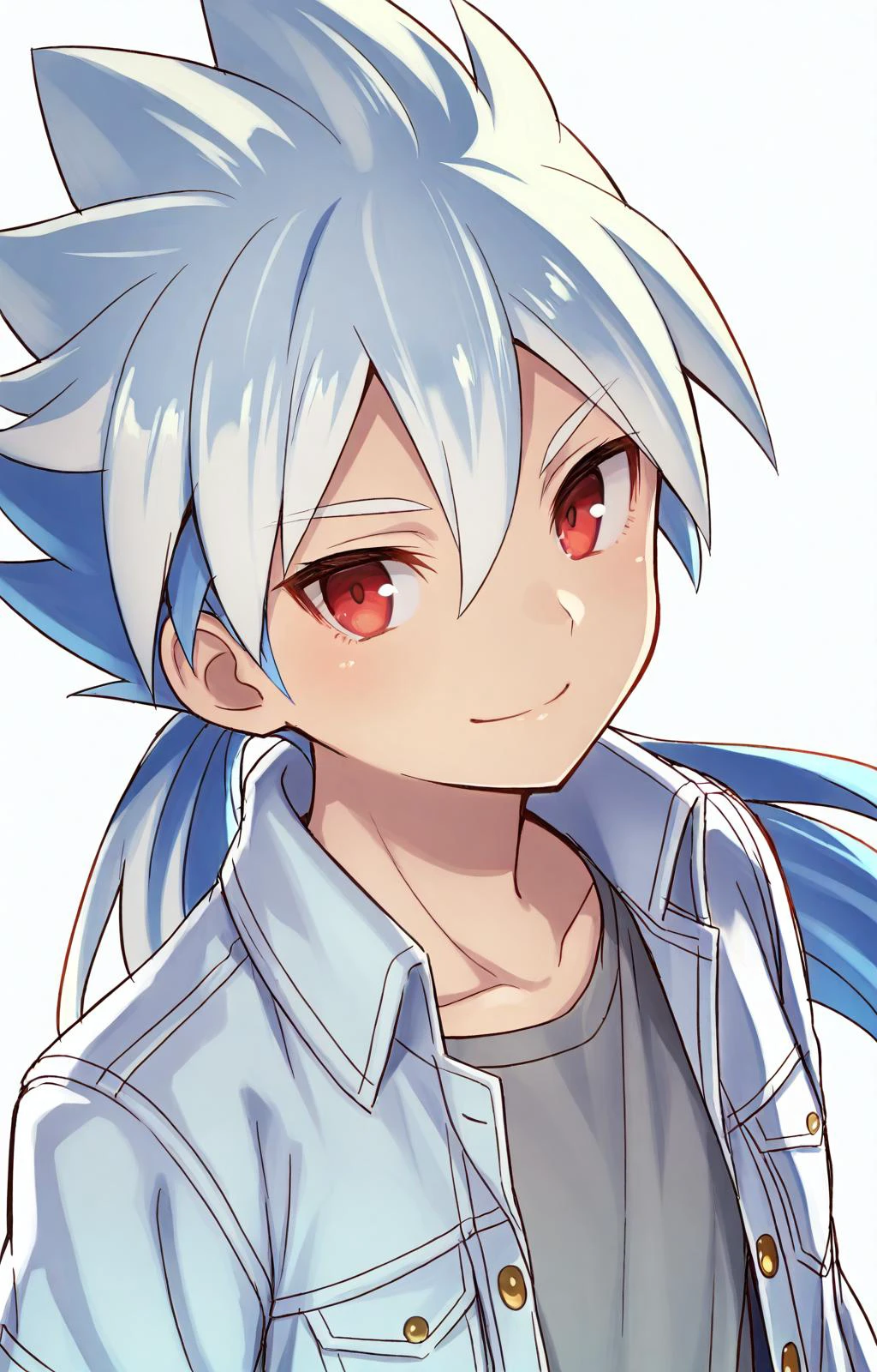 white hair, blue hair, low ponytail