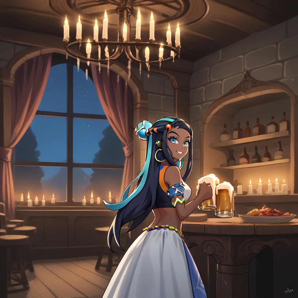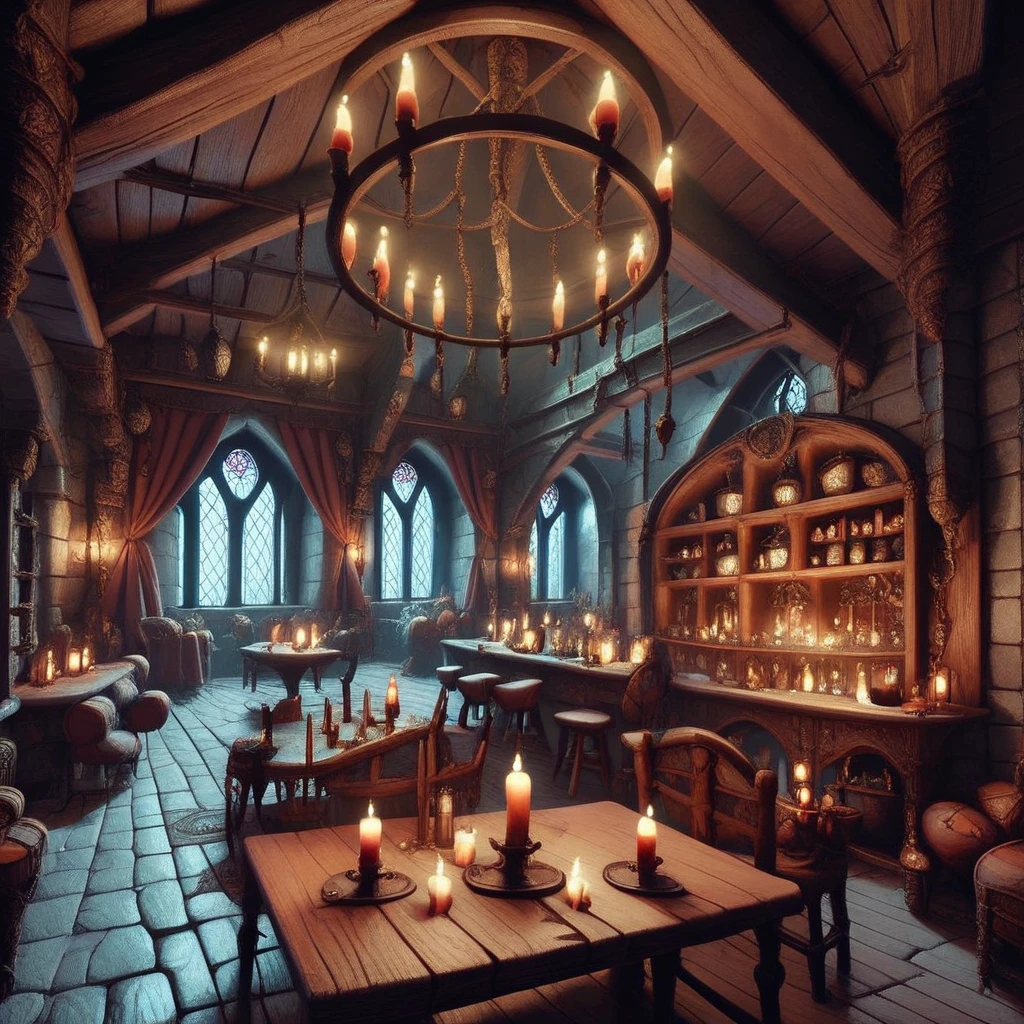 indoors, tables, window, chandelier, candles, food