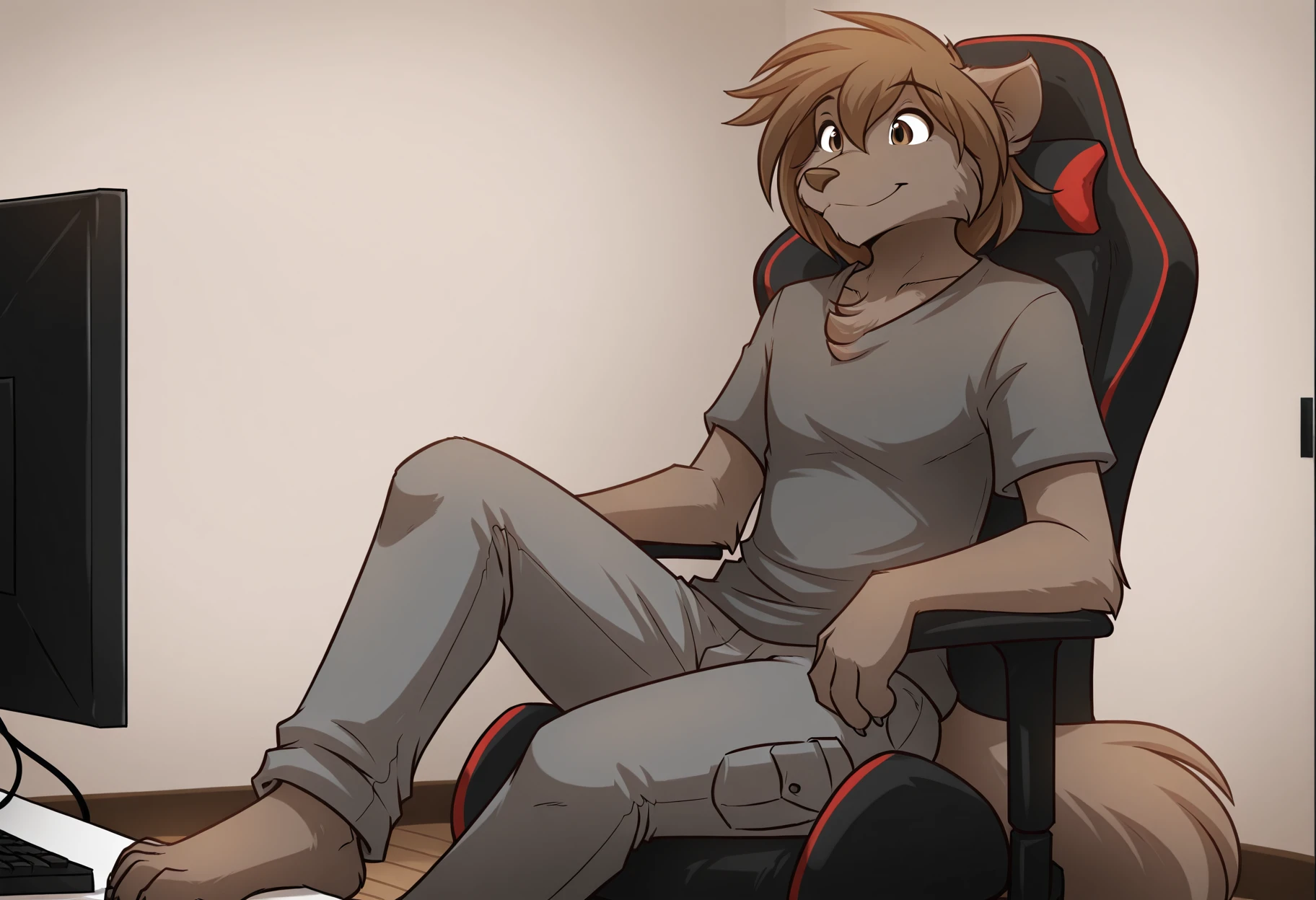 zen_twokinds, anthro wolf, brown eyes, medium hair, wolf tail