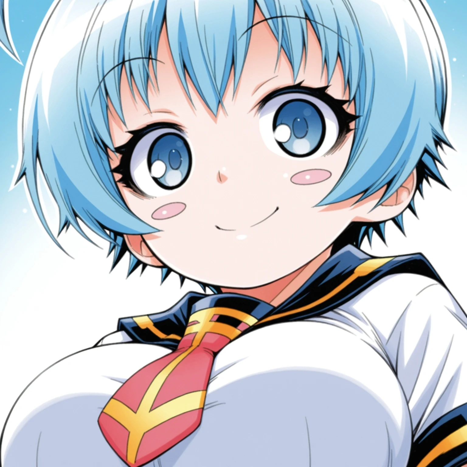 blue hair,blue eyes,school uniform,red tie,pink thighhighs