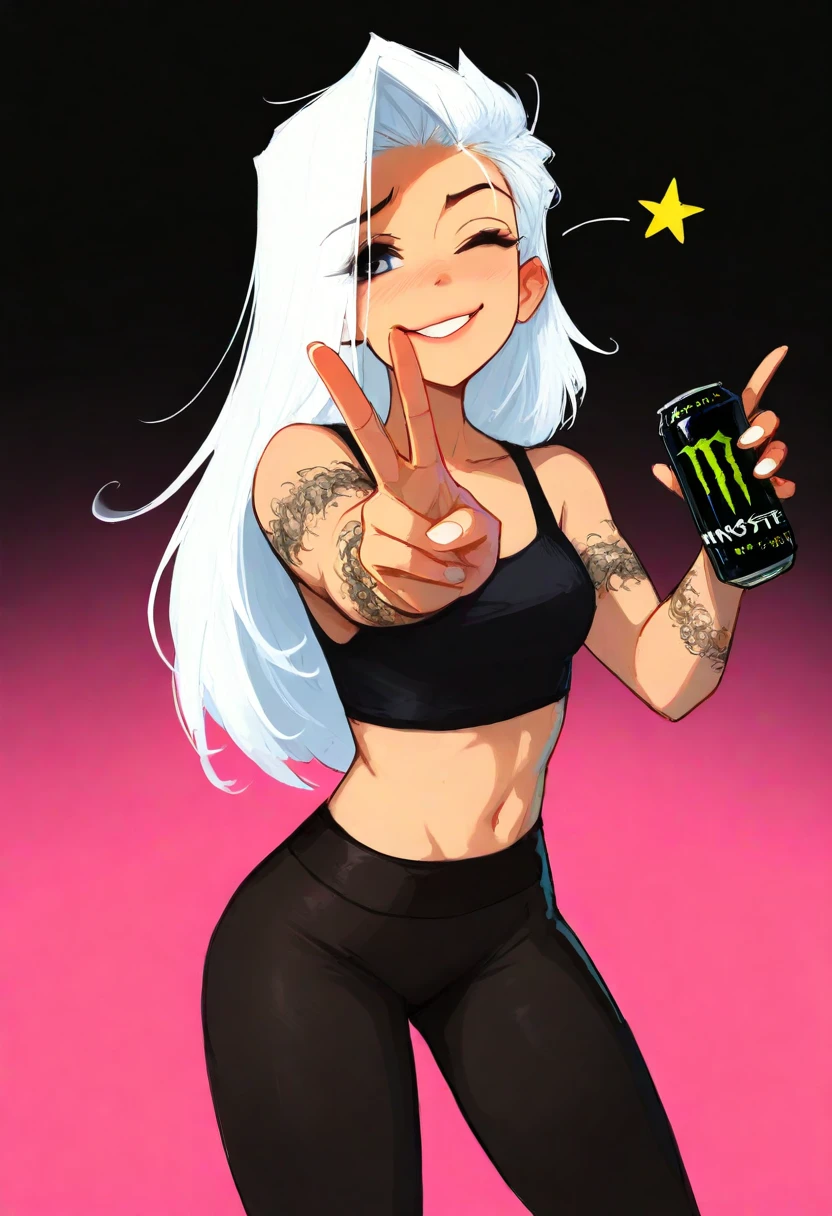 1girl, kara, white hair, long hair, blue eyes, arm tattoo