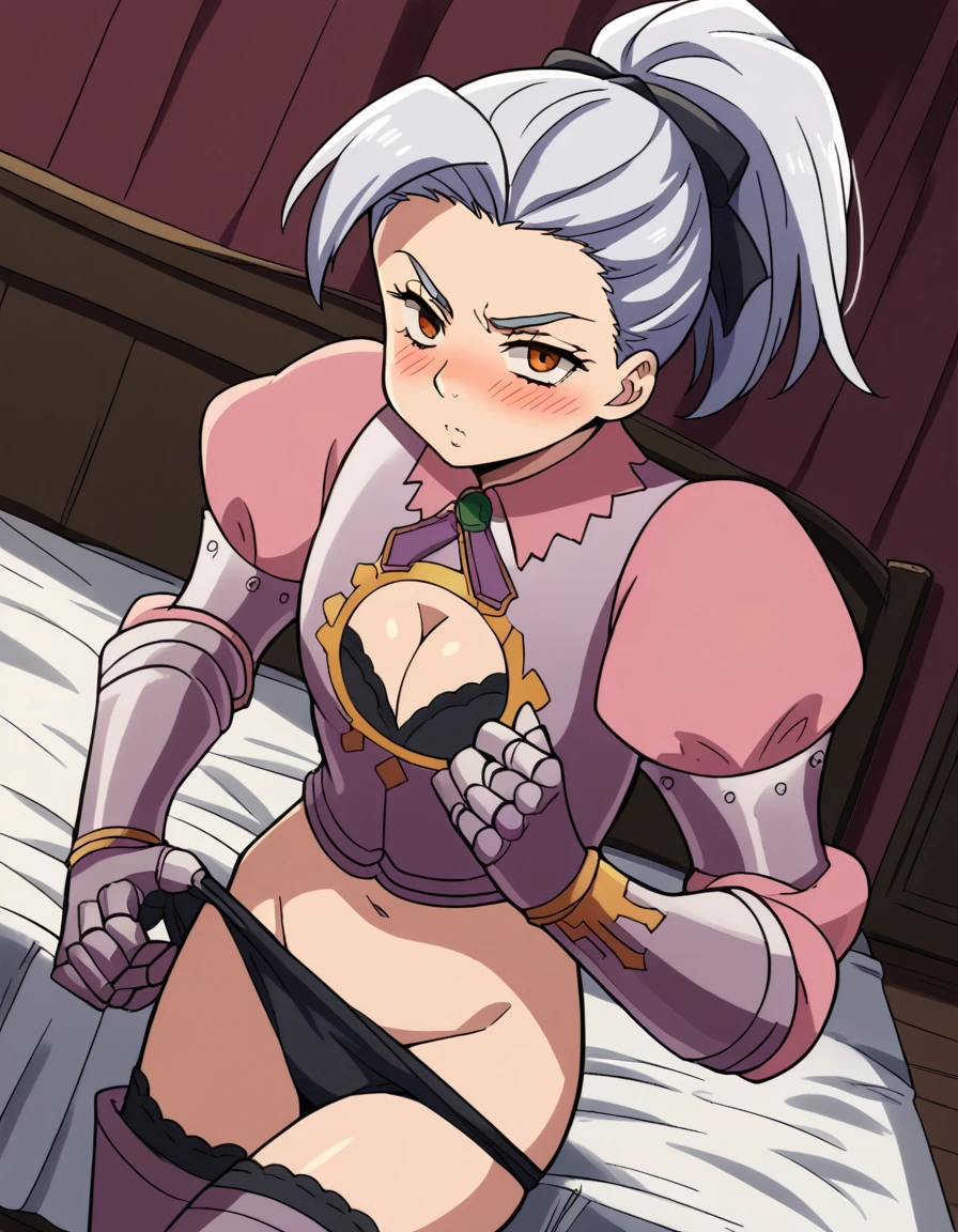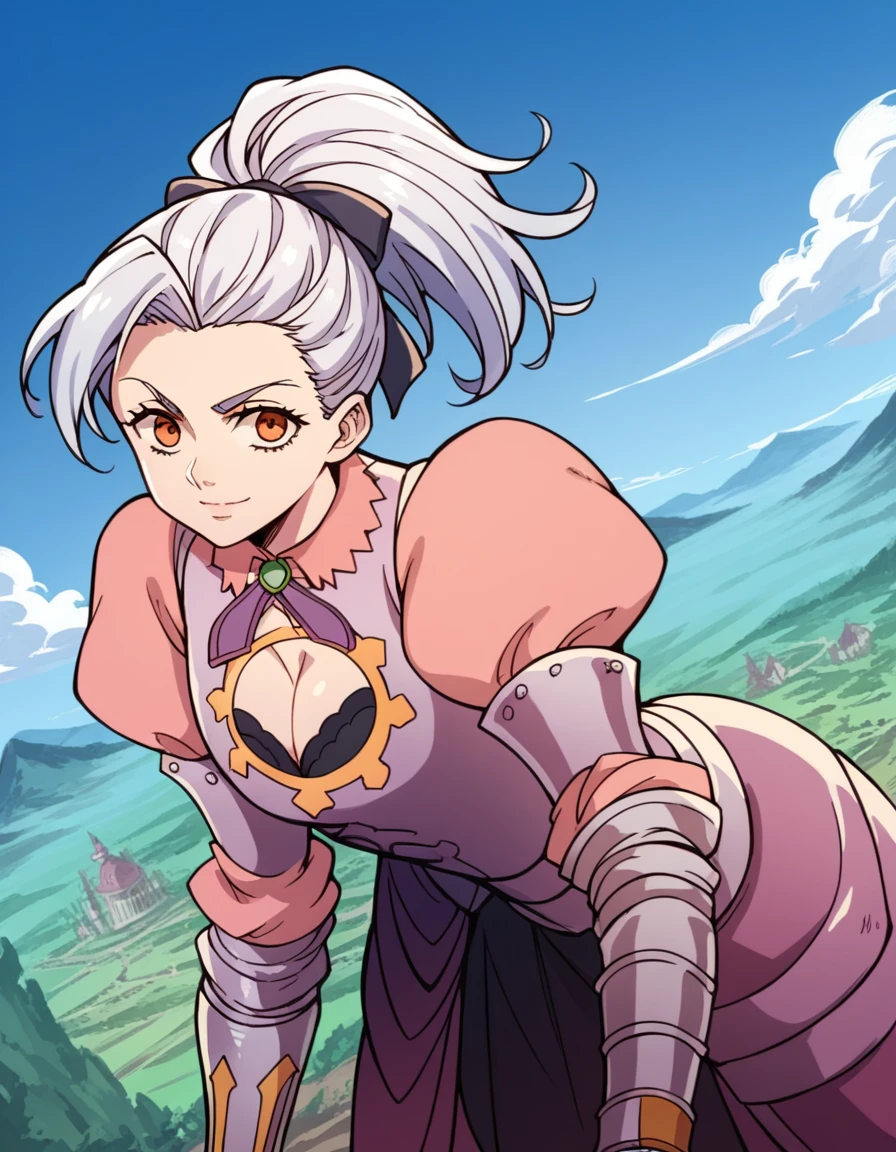 <lora:nanatsu-jericho-s1-ponyxl-lora-nochekaiser:1>, jericho, ponytail, white hair, orange eyes,
