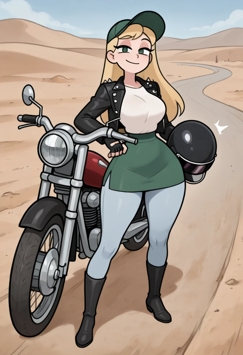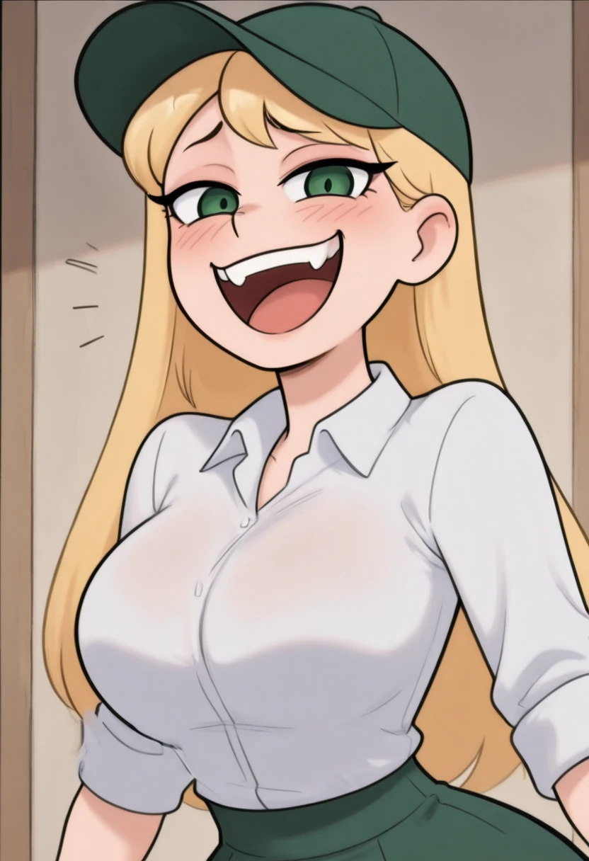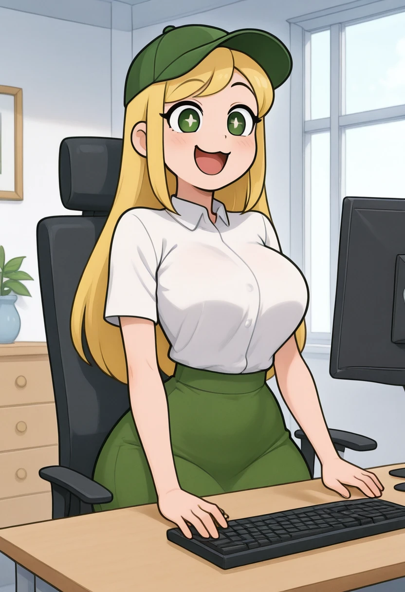 zzBambi, green eyes, blonde hair, long hair, green hat, white shirt, green skirt,