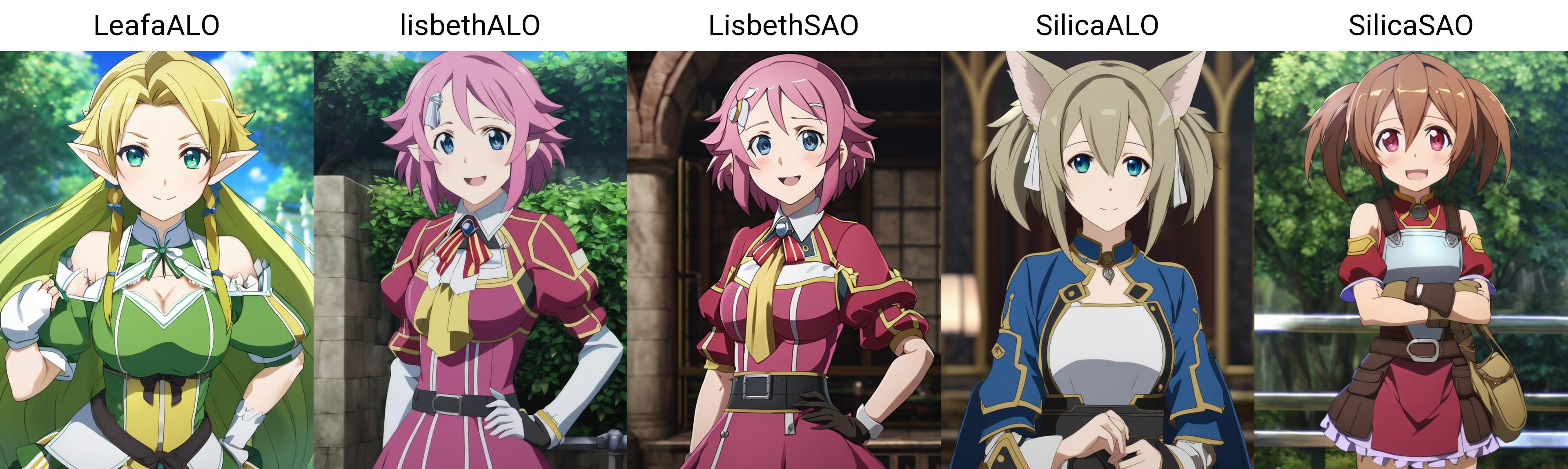 My first SDXL multicharacter attempt. I plan on eventually adding characters back in from my other SAO Lora but for now I only included the 15 girls from SAO and ALO. I also hope to add the guys back in once I finish my hand-picked regularization folder for them but right now on my RTX3080 training takes some time.