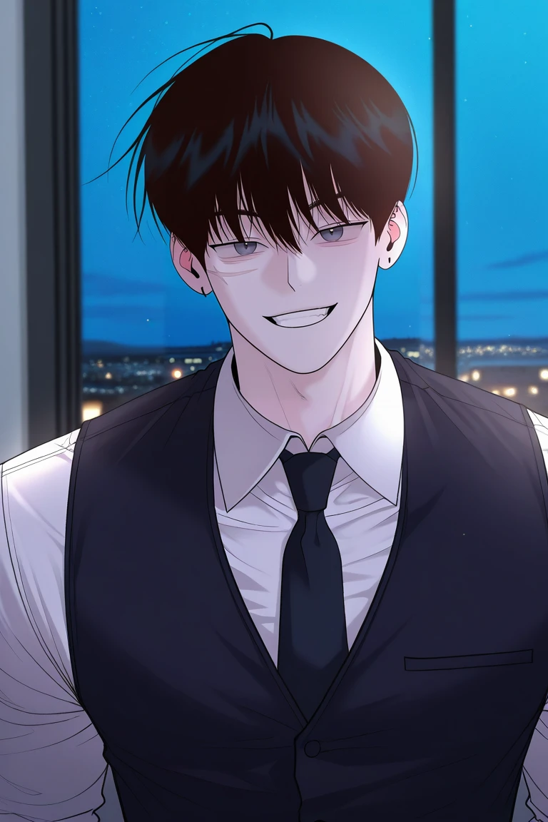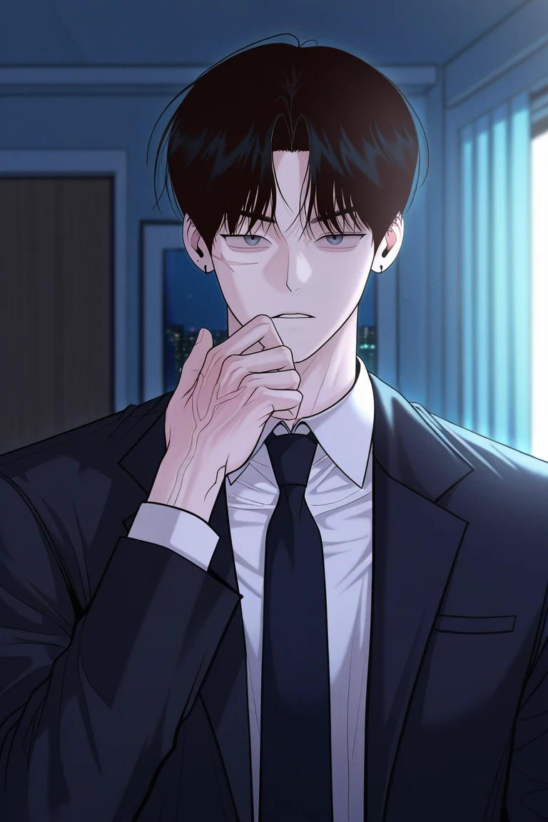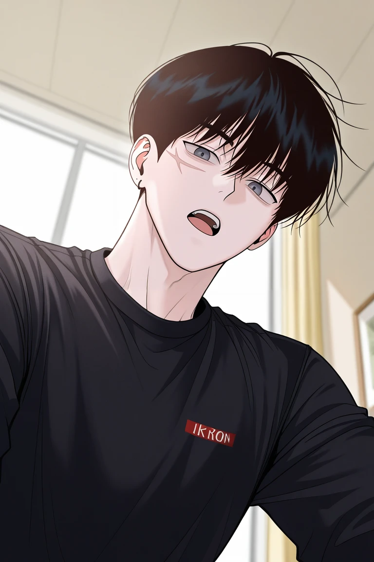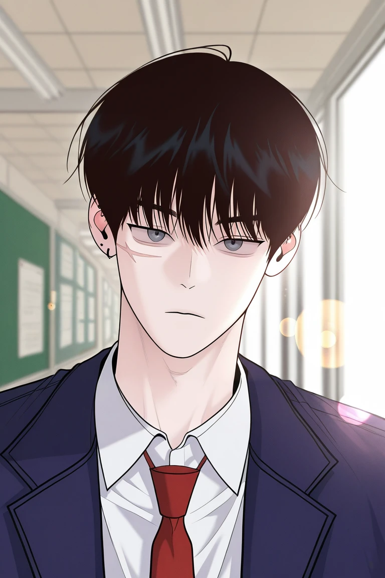 goo yoon won,black hair,grey eyes,short hair,bangs,hair between eyes