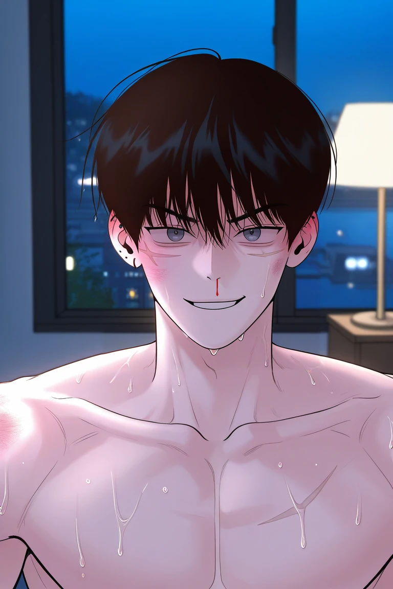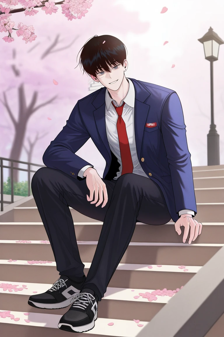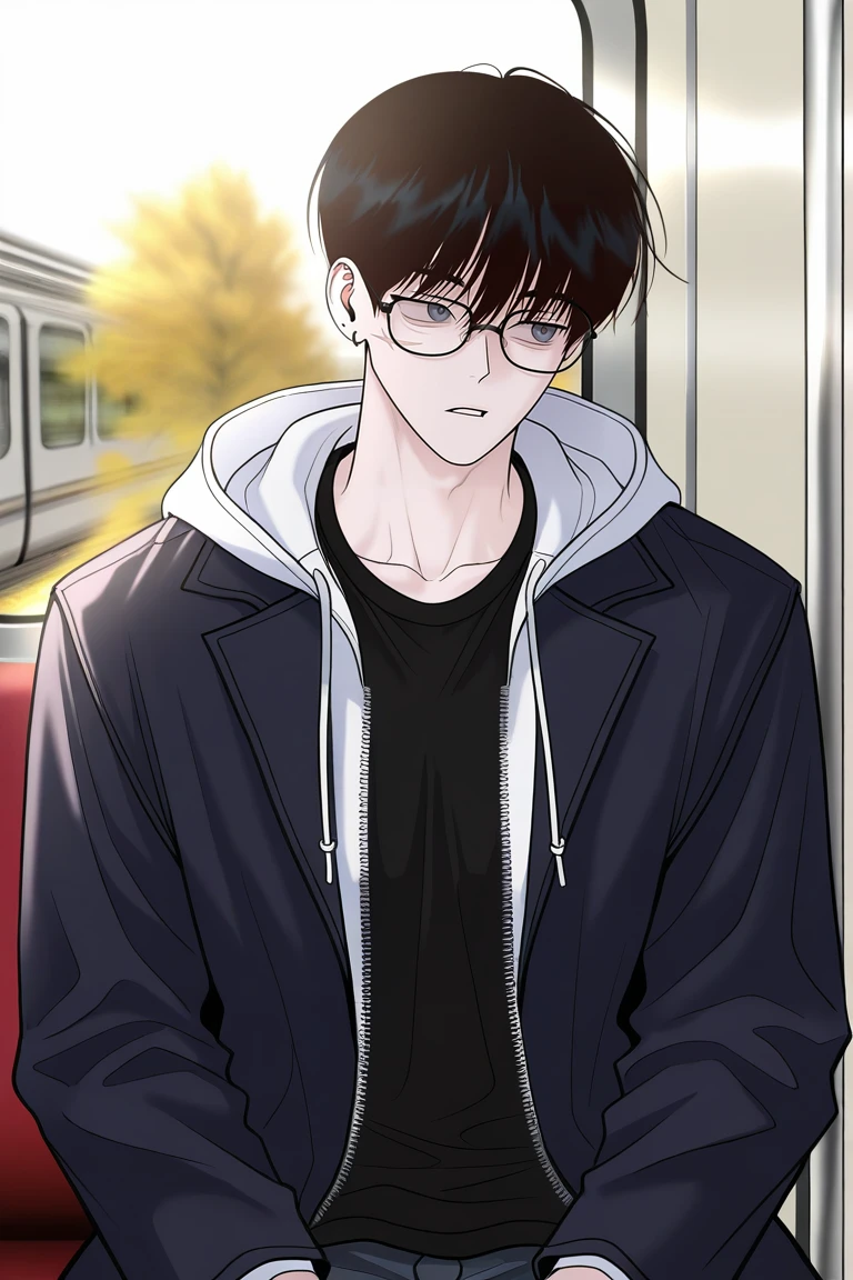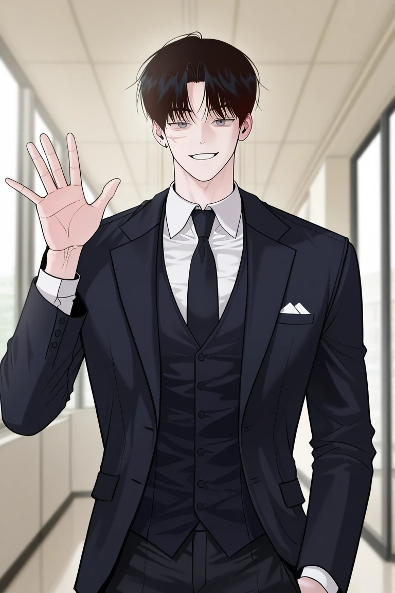 goo yoon won,black hair,grey eyes,short hair,bangs,hair between eyes