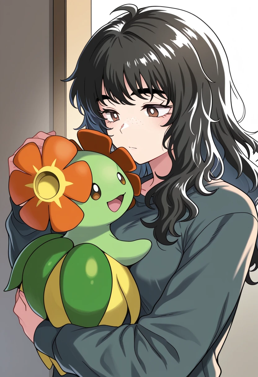 trigger words: sayanee, 1girl, black hair, long hair, brown eyes, freckles