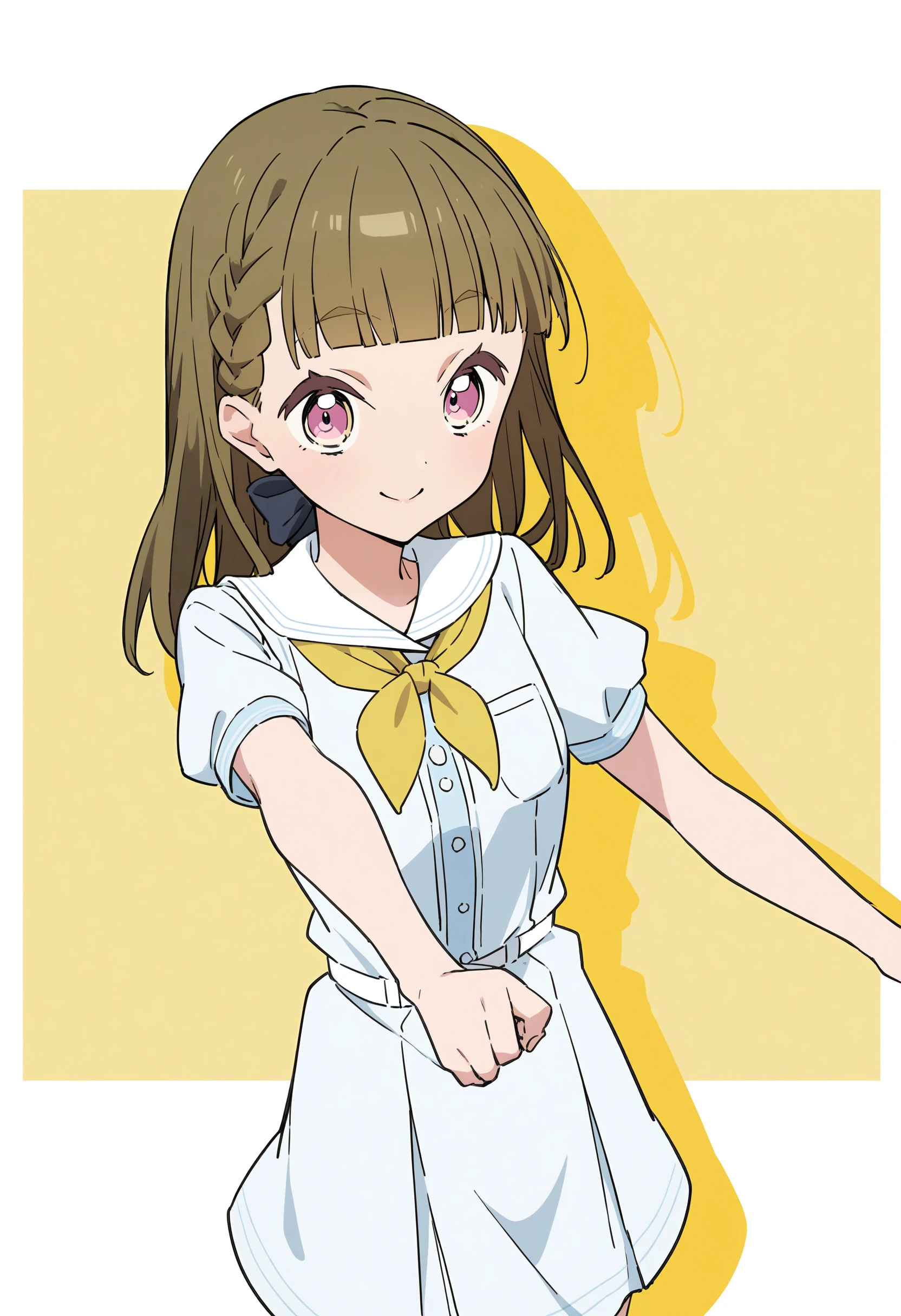 Additional Tags : brown hair, braid, long hair, blunt bangs, pink eyes, ribbon