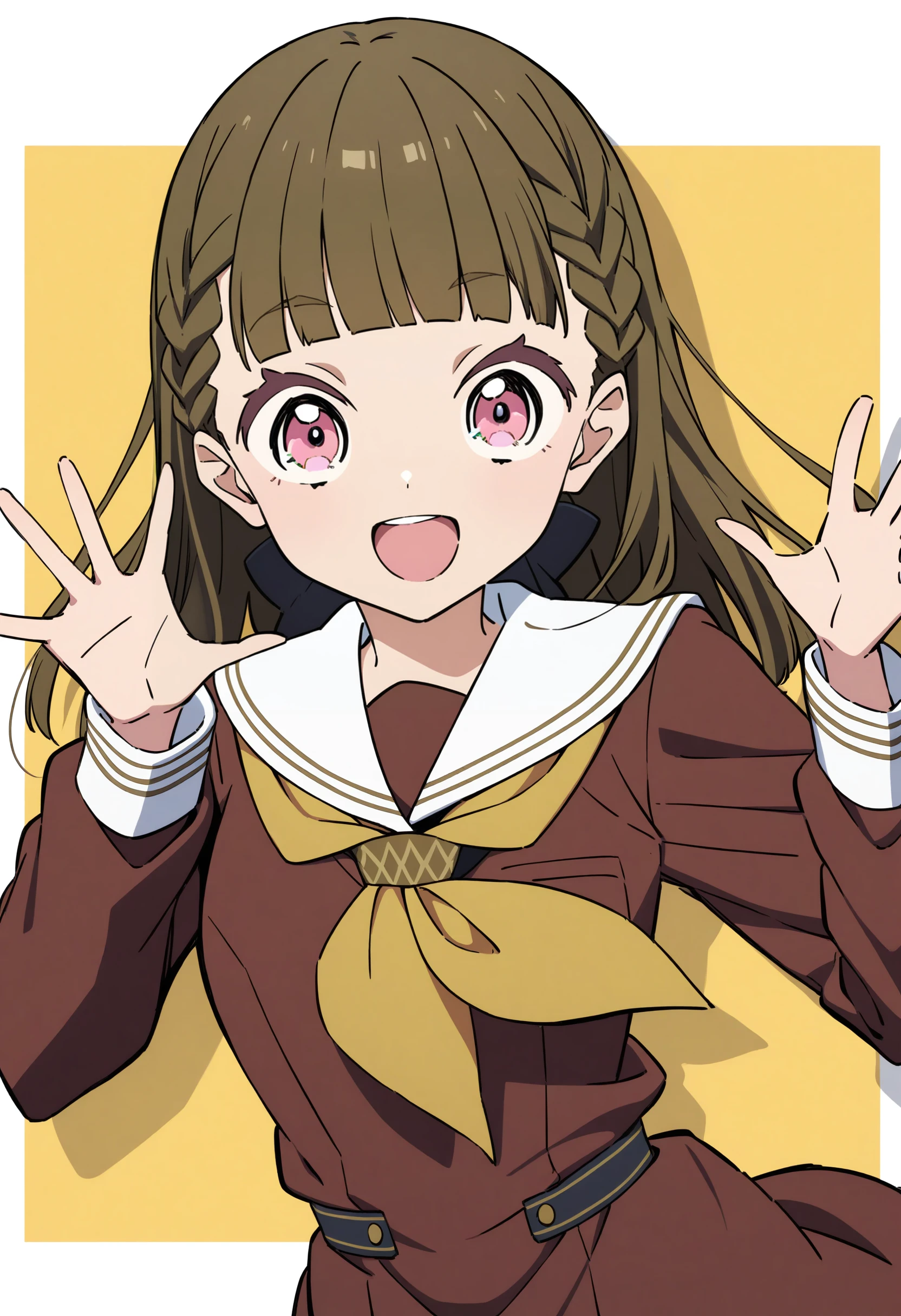 Winter School Uniform : winter uniform, hasunosora school uniform, long sleeves, brown serafuku, yellow neckerchief, white sailor collar
