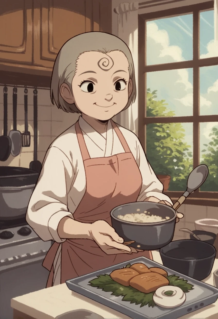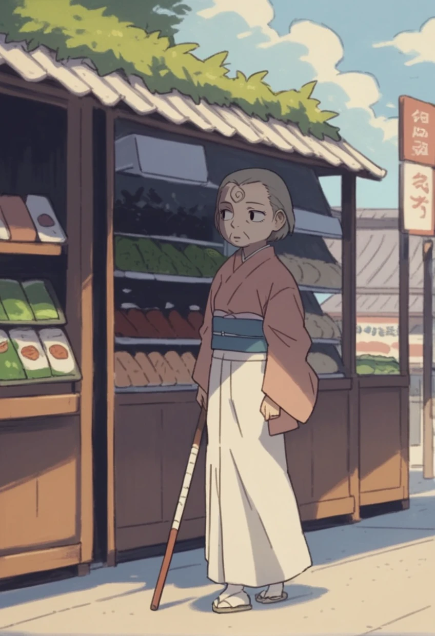 1girl, tokiko, elderly female, grey hair, solo, black eyes,