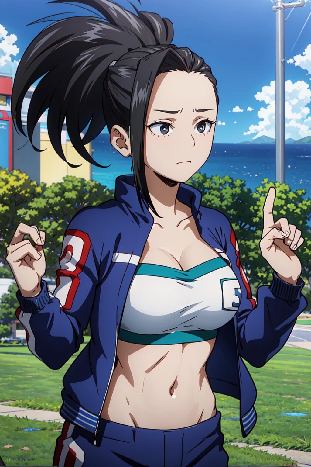 This LORA is based on the character Yaoyoruzu Momo from My Hero Academia Anime. Trained this LORA using Waifu Diffusion.