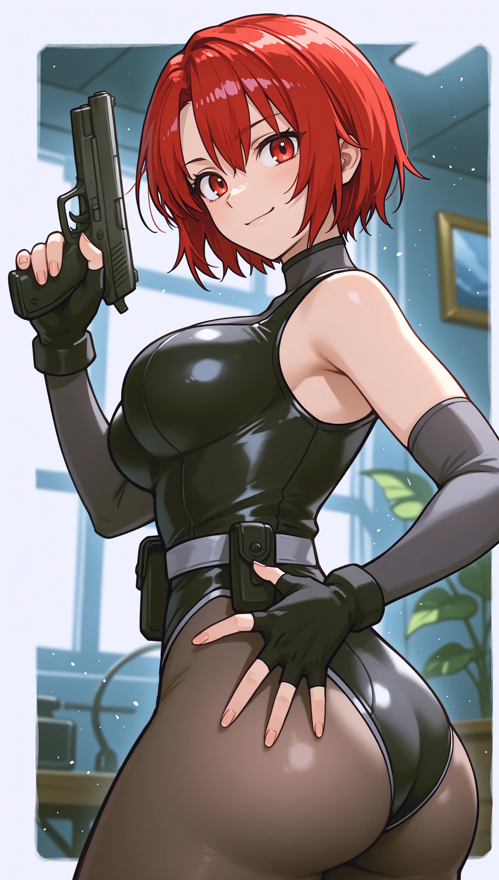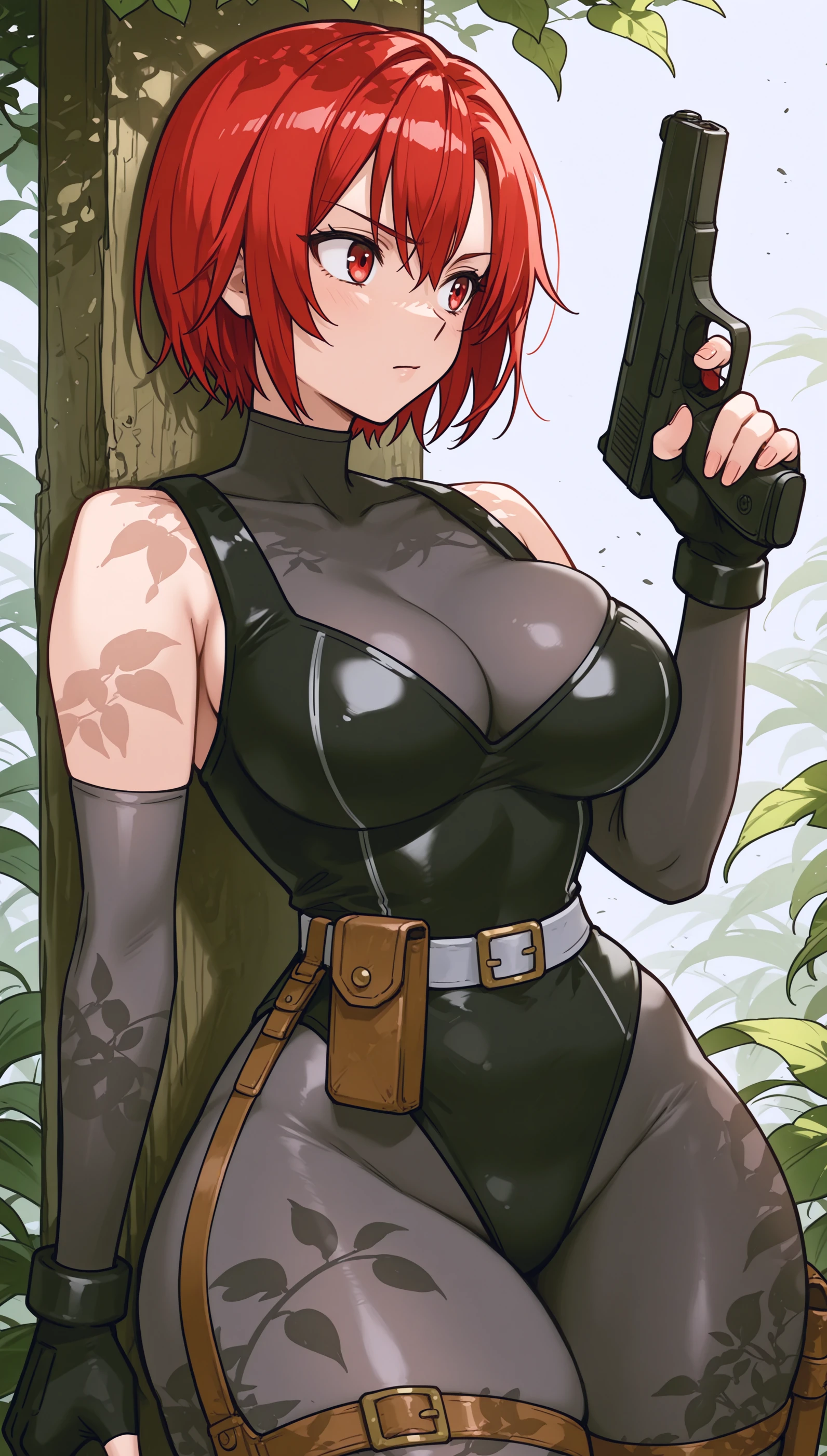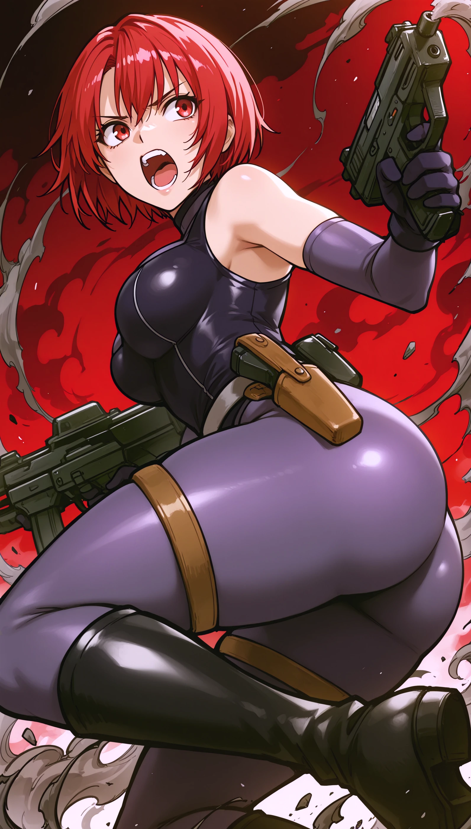 Optionnal Words: red eyes, detached sleeves, sleeveless, elbow gloves, black gloves, fingerless gloves, black leotard, boots, bodysuit