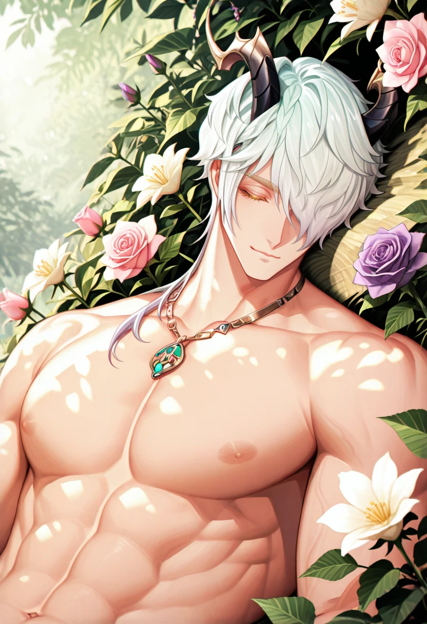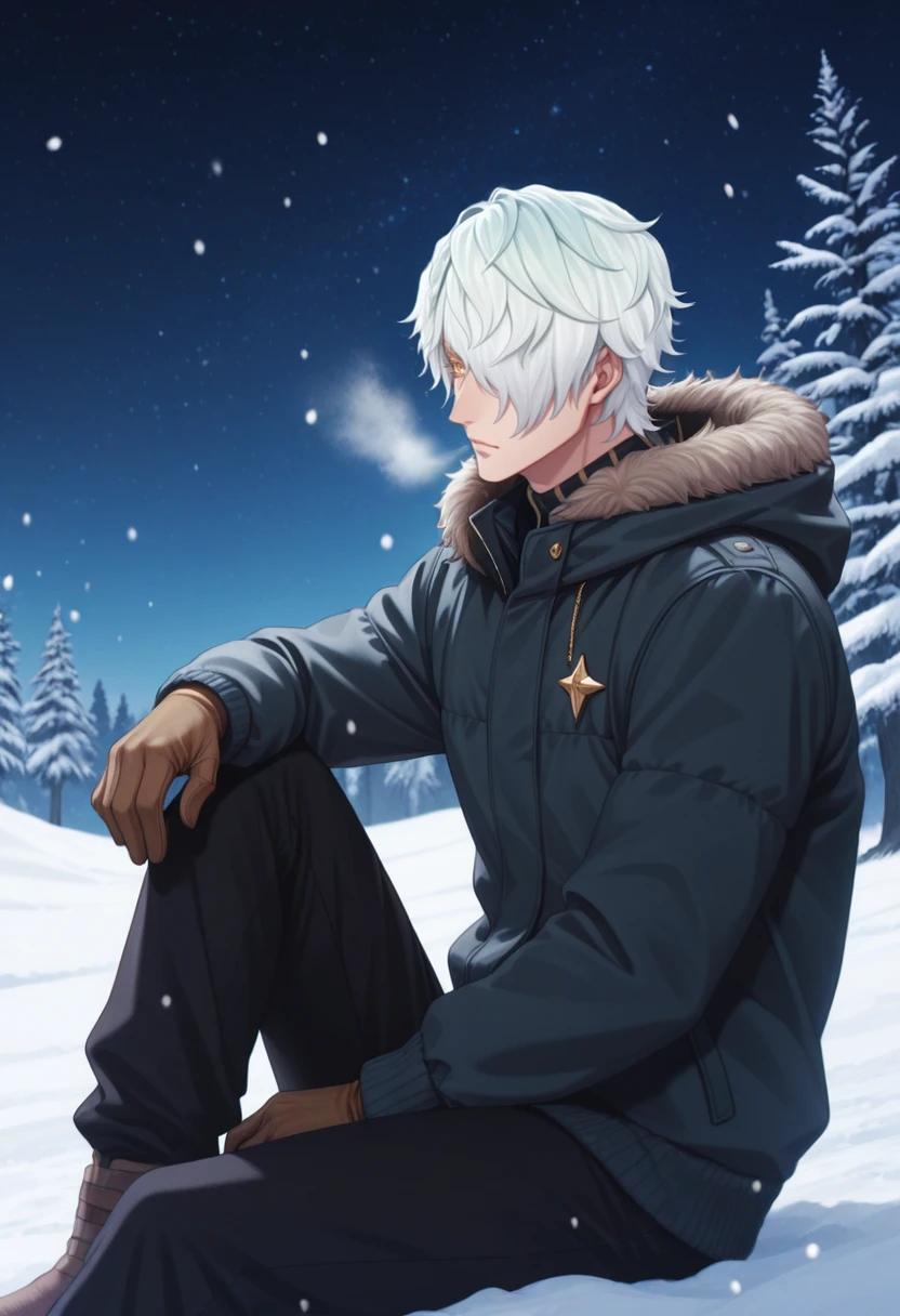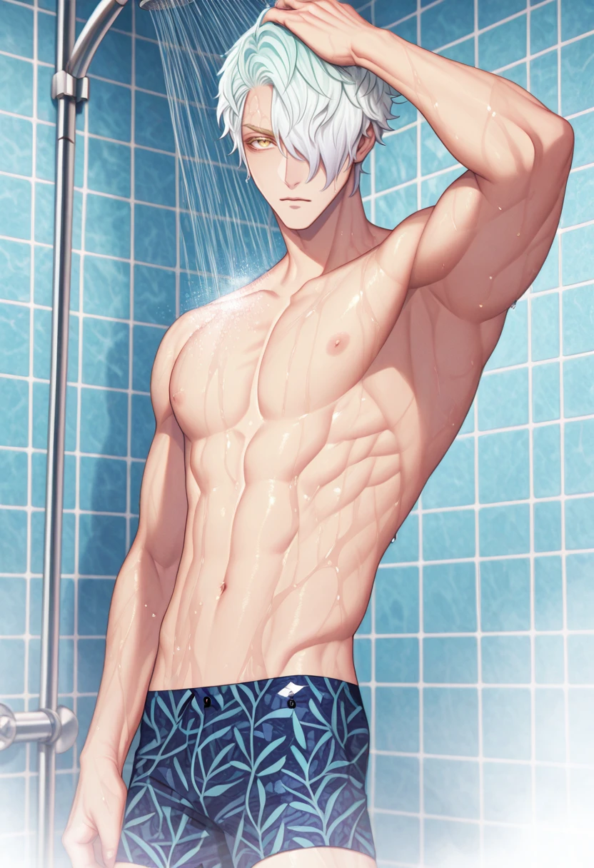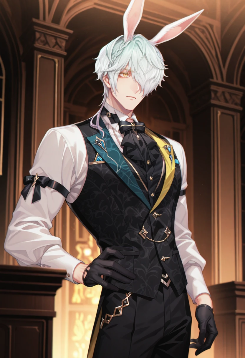 CPSASDPeter, 1boy, male focus, yellow eyes, hair over one eye, gradient hair, white hair, short hair