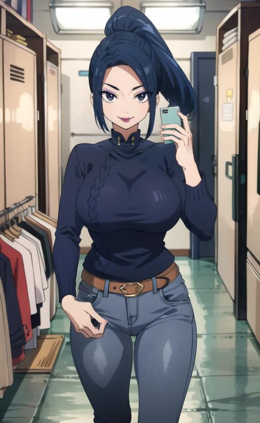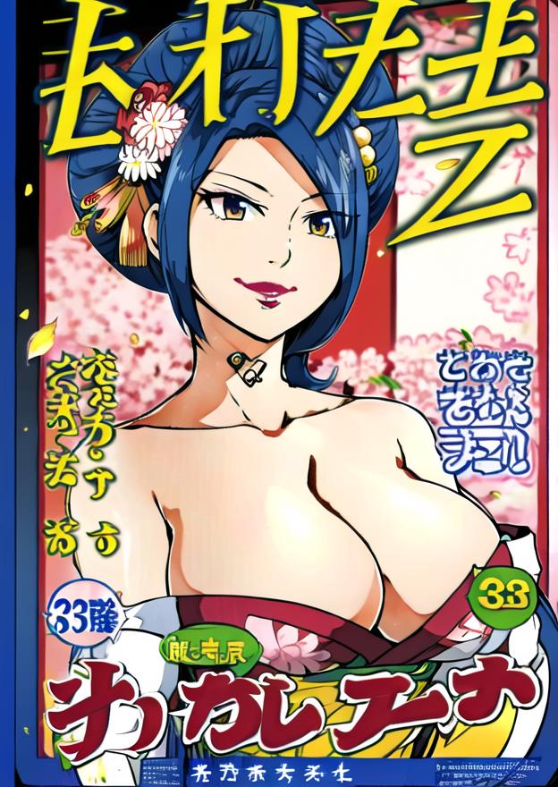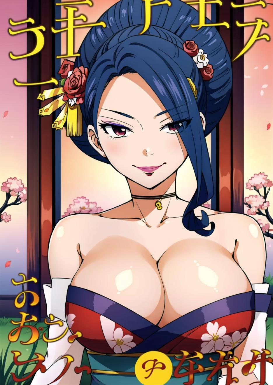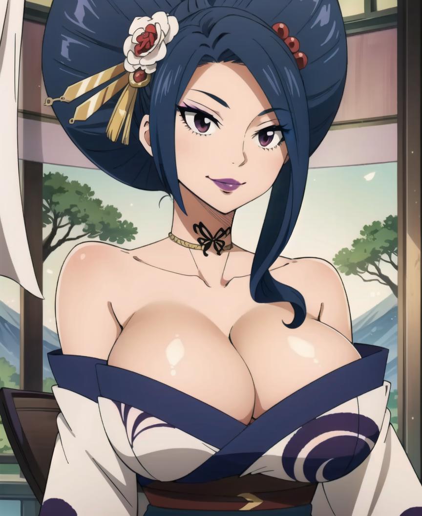 KurenaiKogetsu, darkblue hair,hair ornament, hair flower, lipstick,courtesan hairstyle,
