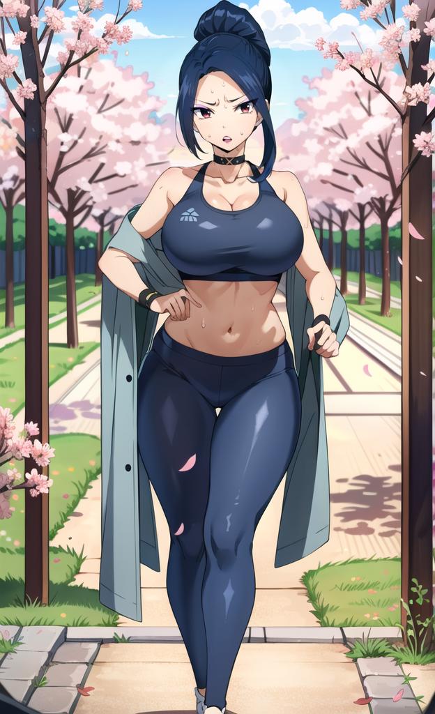 kimono,bare shoulders, gauntlets, silk scarf behind her back, butterfly choker