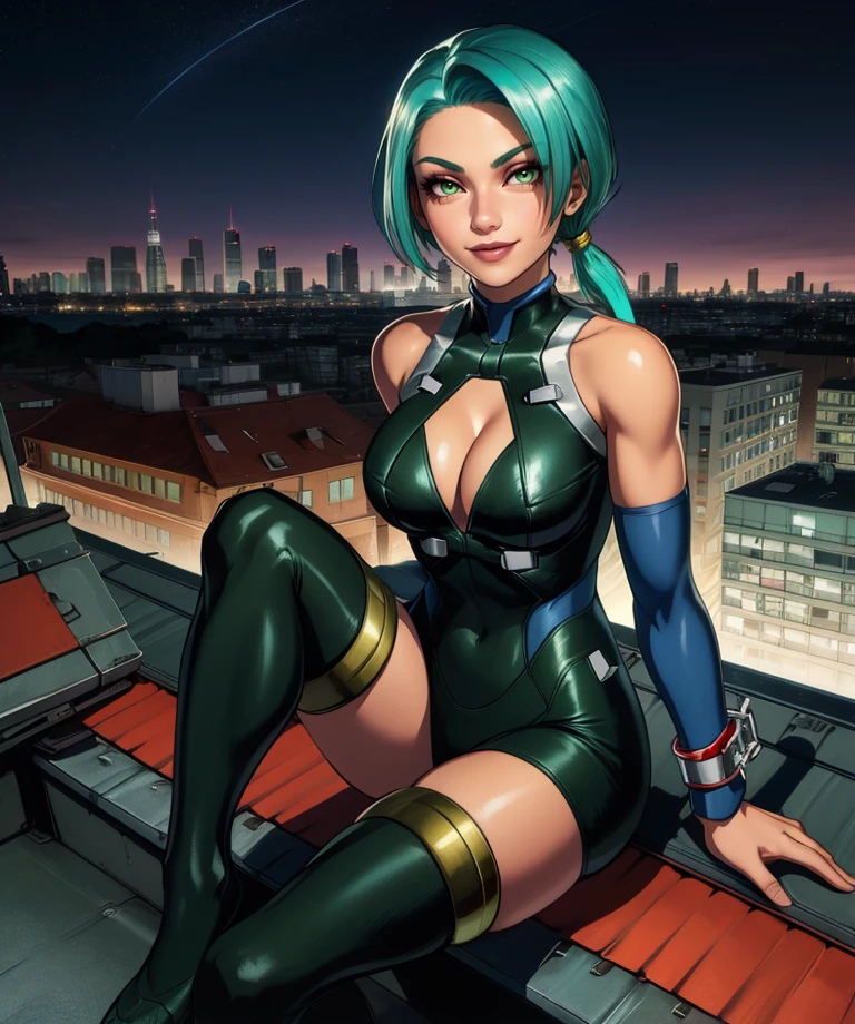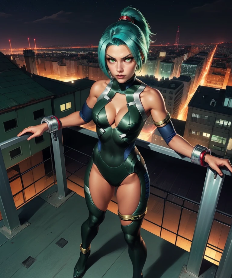 Uranus, aqua hair, green eyes, short hair,