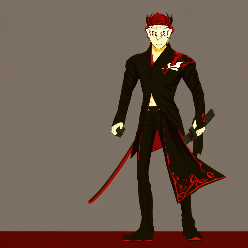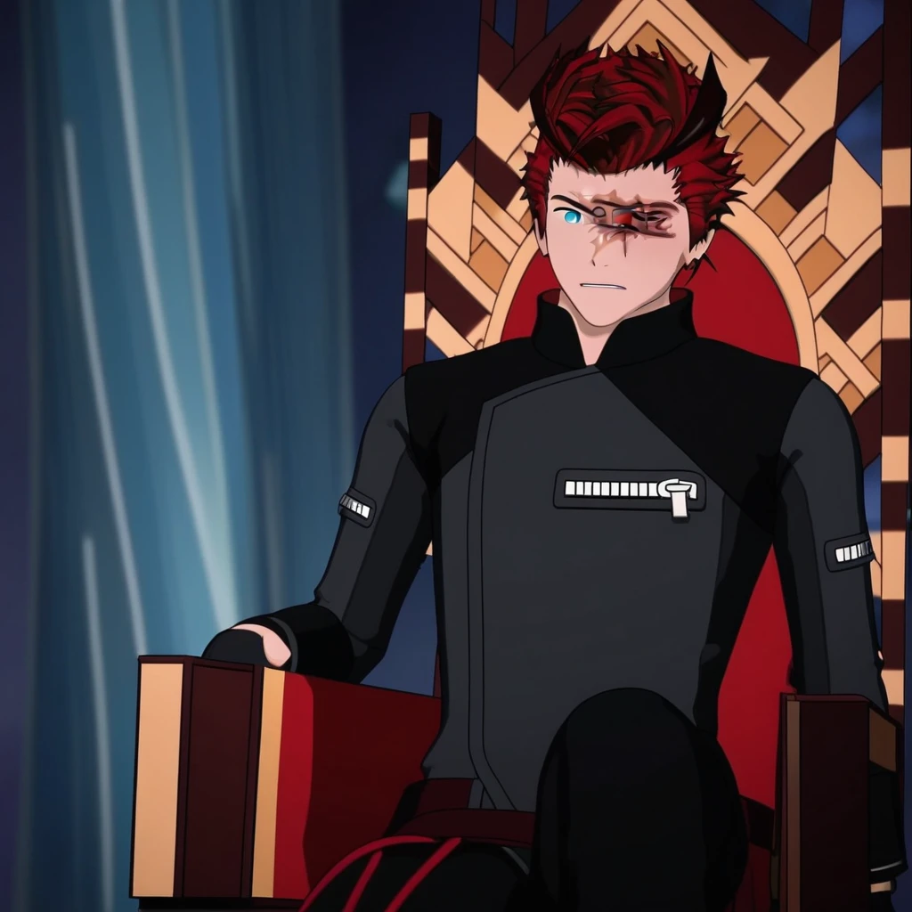 Adam Taurus, Maskless, Red Hair, SDC Brand over Left Eye, Scar, Heterochromia, Blue Eyes, Red Eyes, Horns