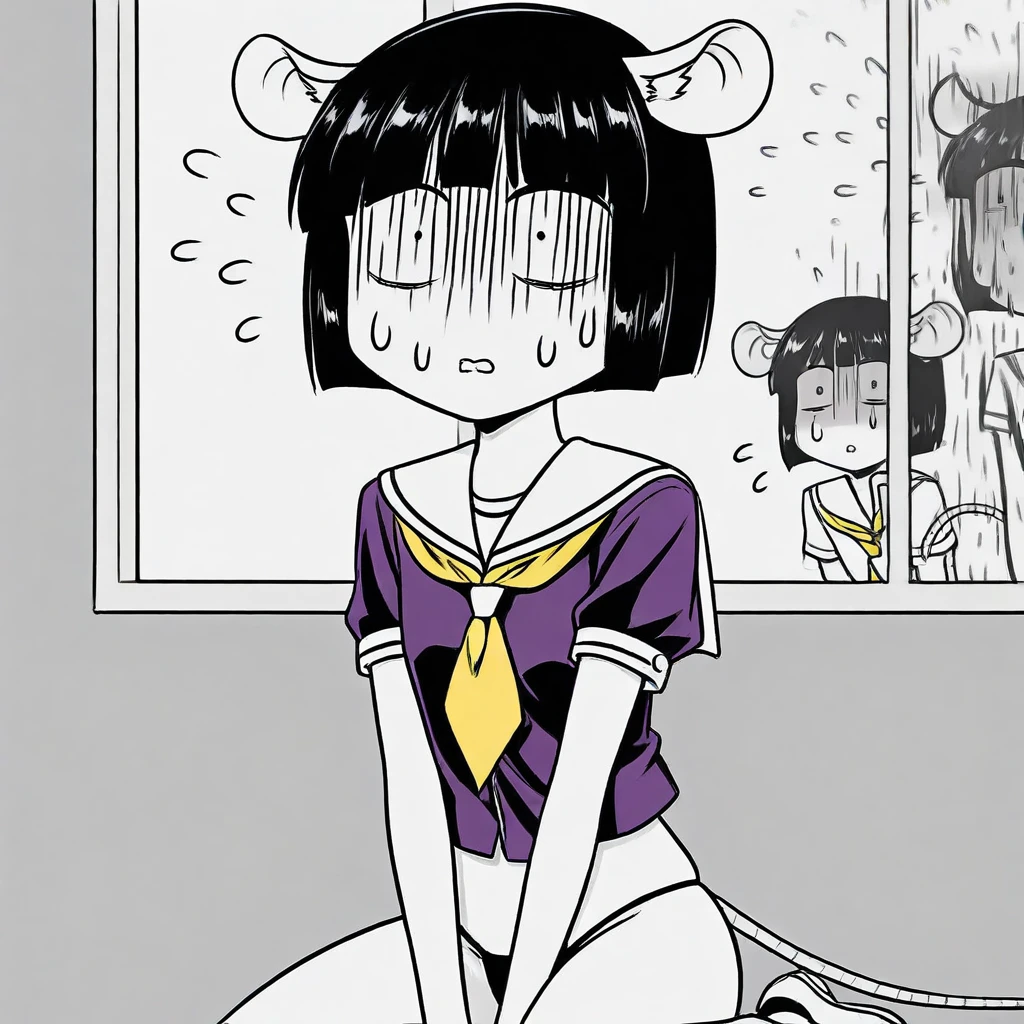 Manako, short black hair, deer ear, straight bob cut, (Black eyes: 1.2).