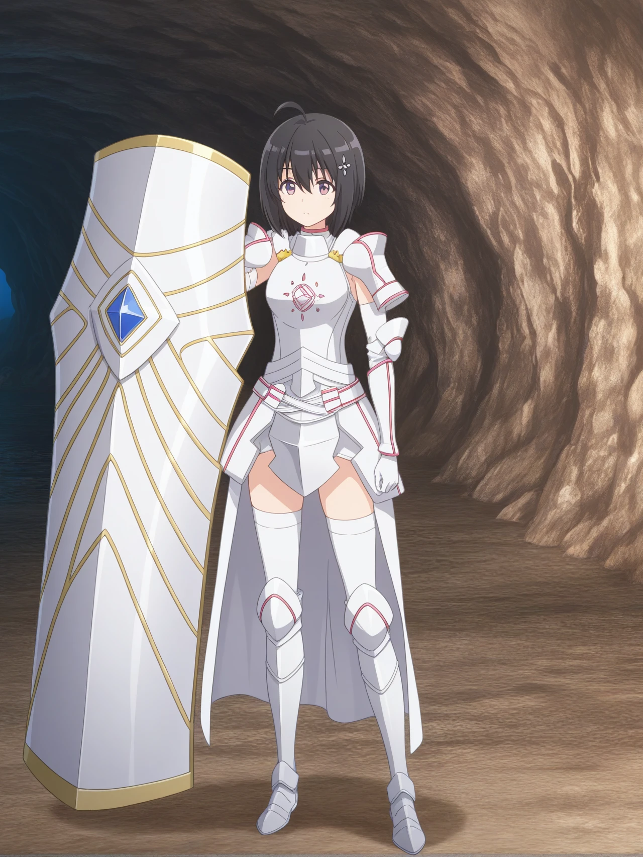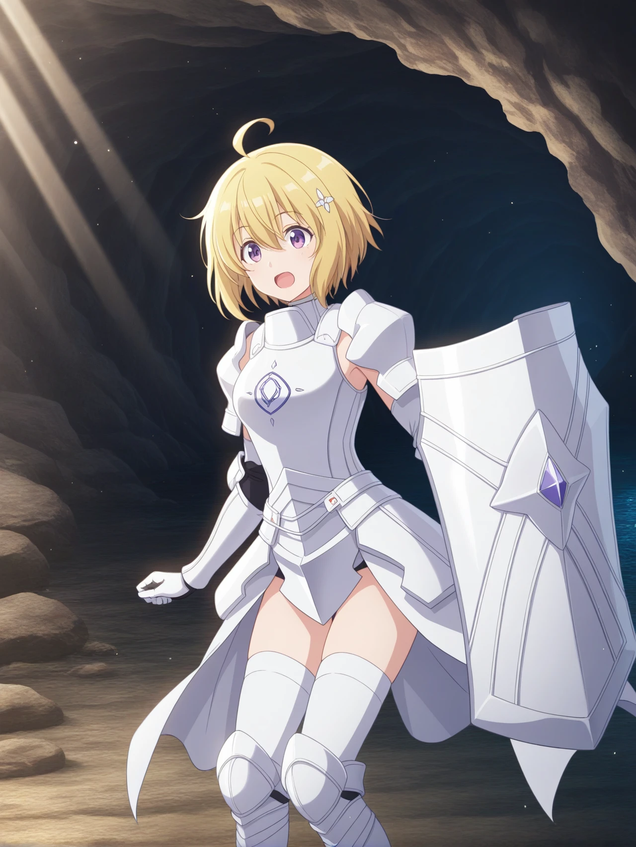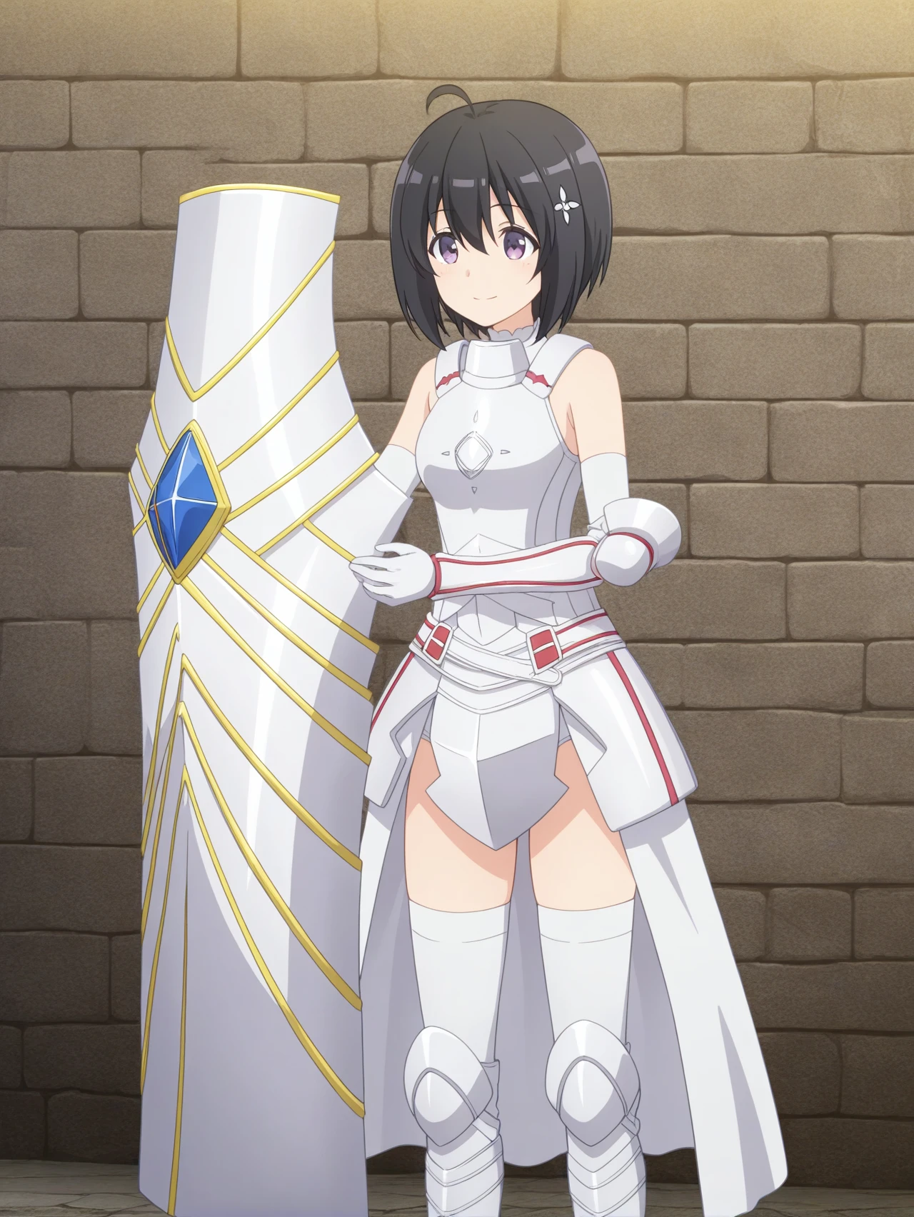 white armor white gloves white sleeves white thighhighs