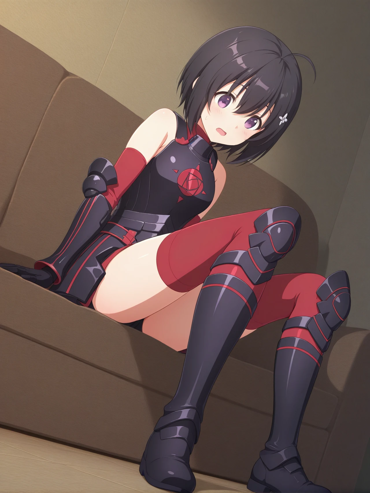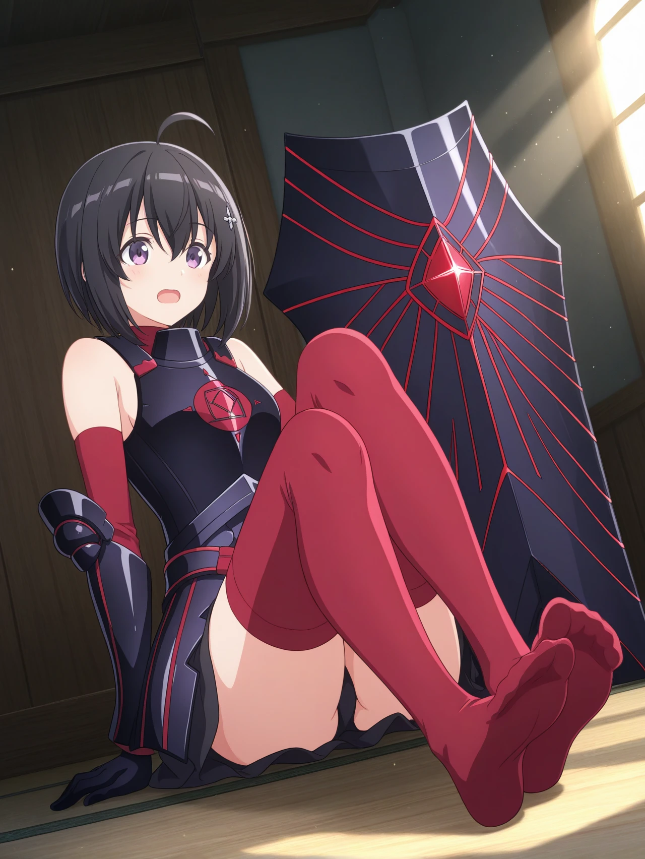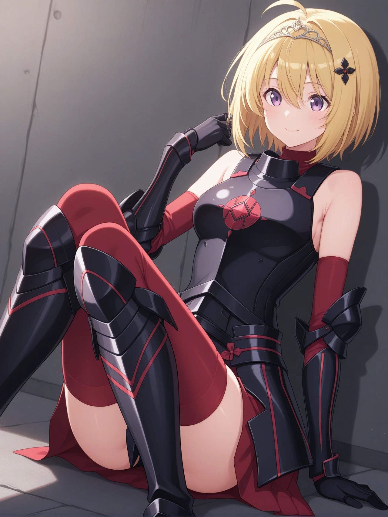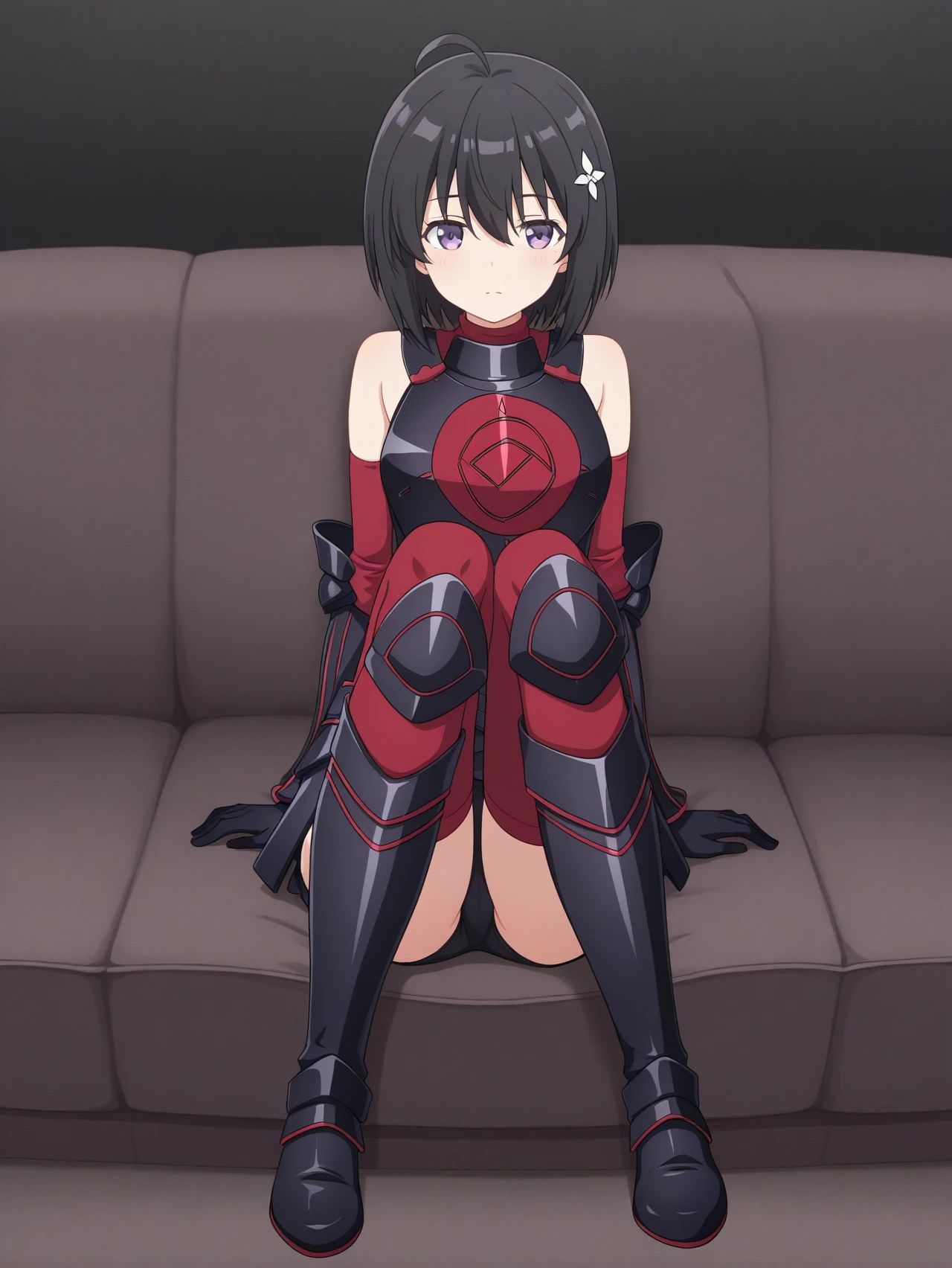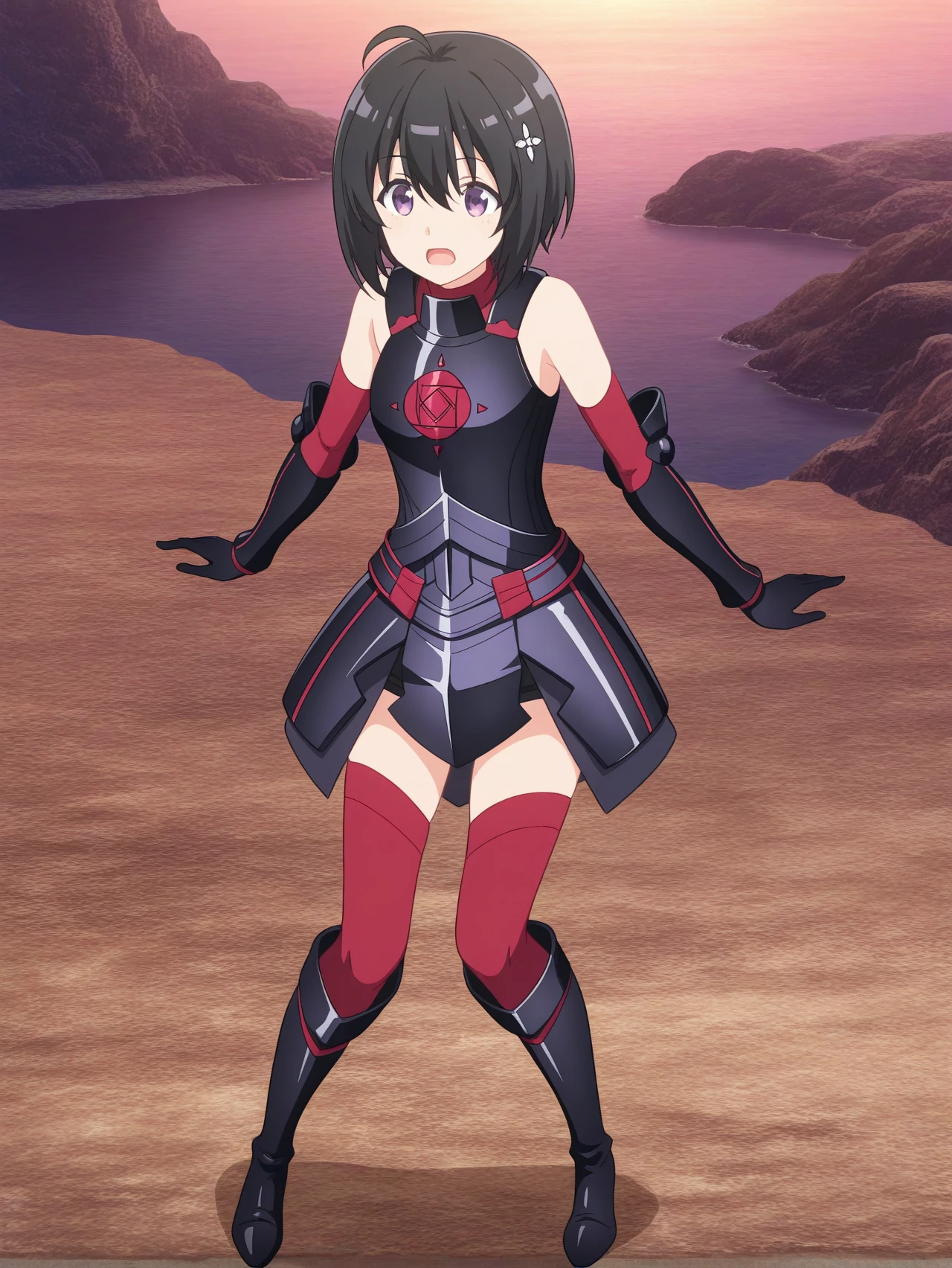 black armor black gloves black boots red sleeves red thighhighs
