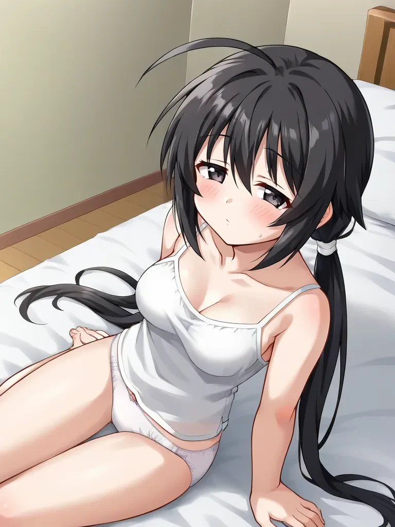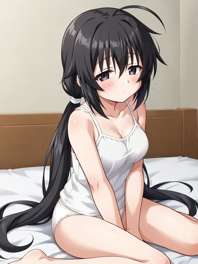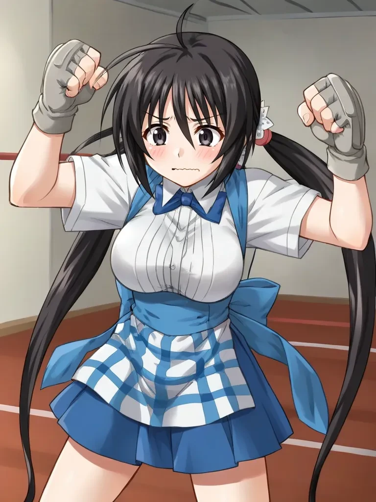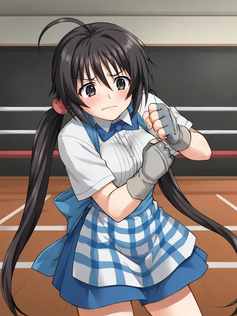 sakuragihiyorivgrebirth, black hair, long hair, low twintails, ahoge, black eyes, waitress