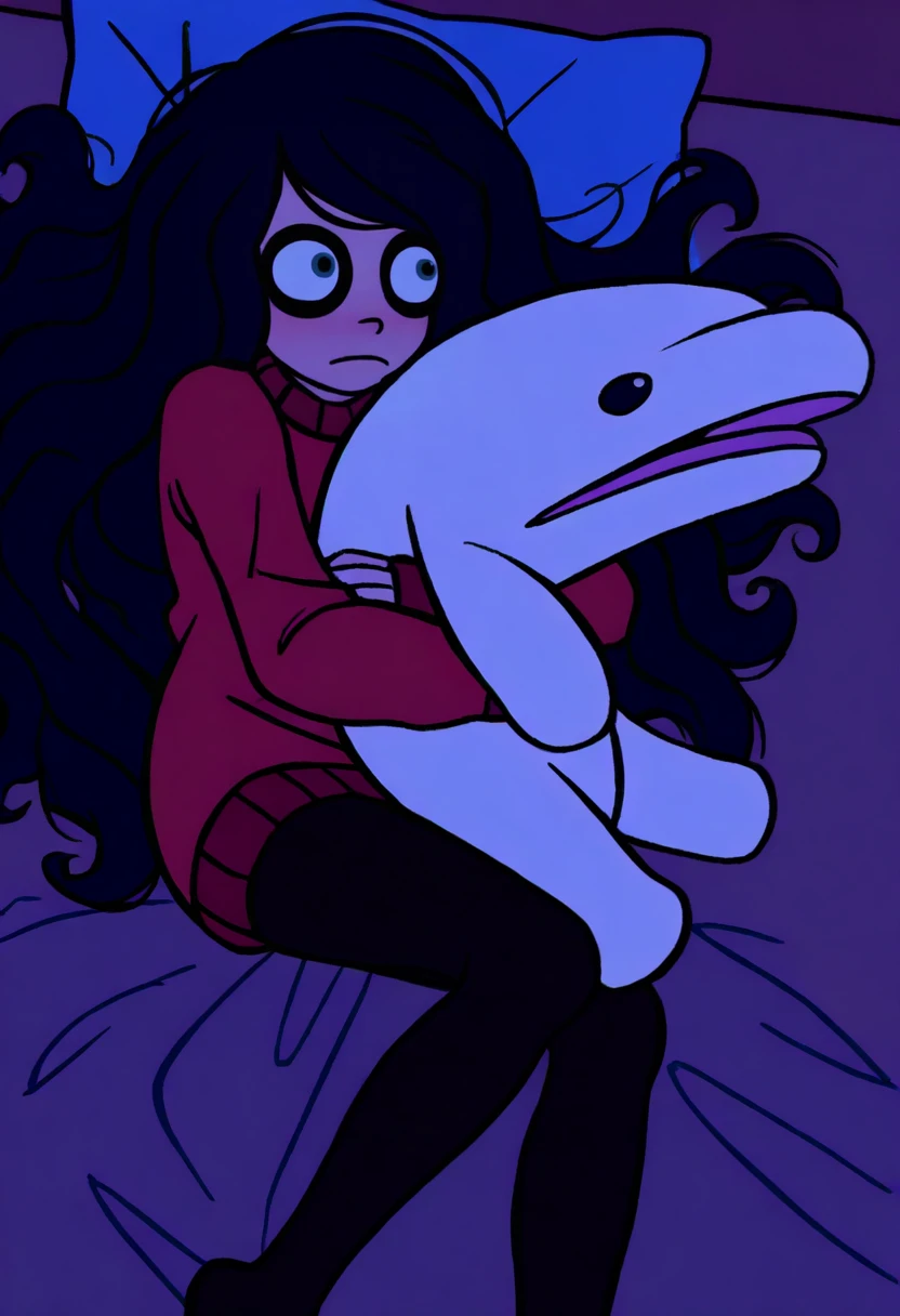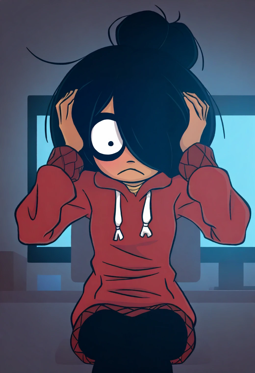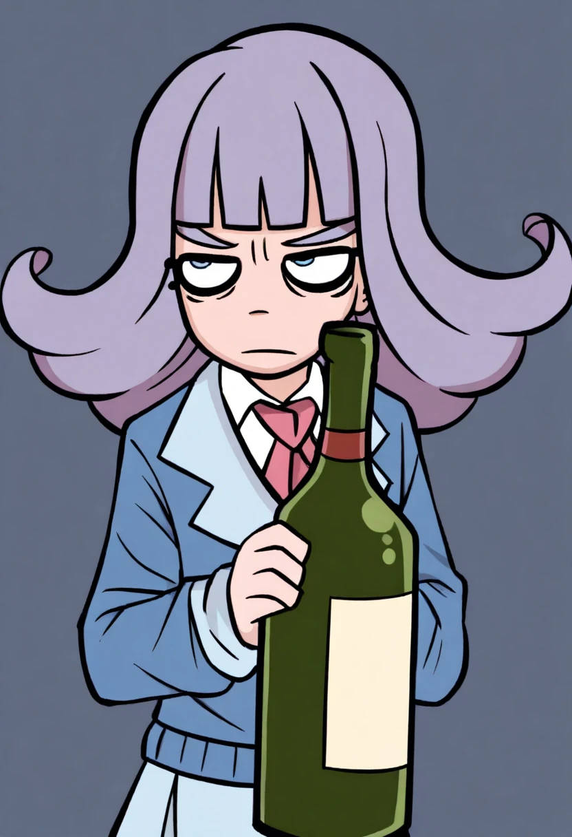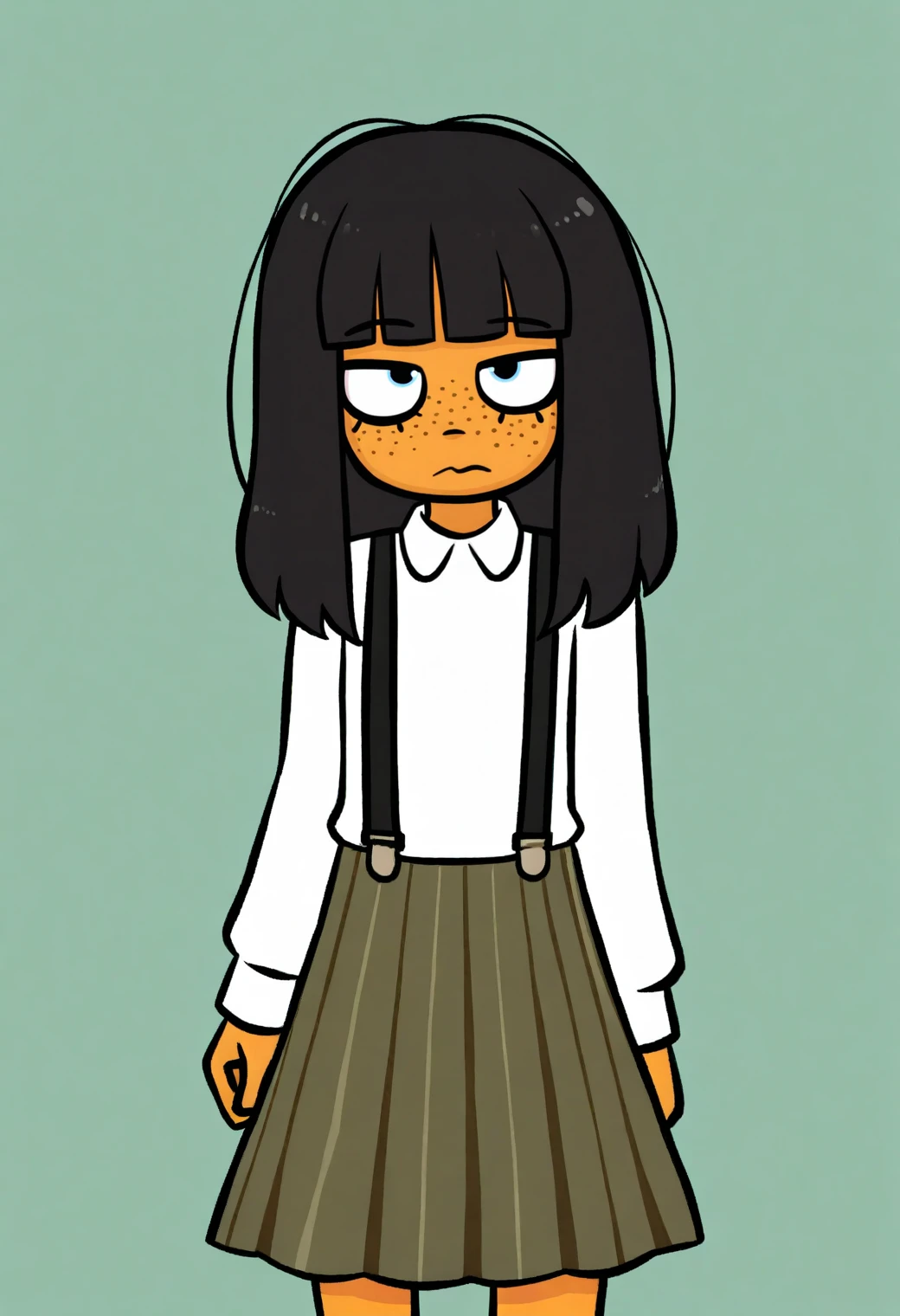 Other helpful triggers: cartoon, flat color, film grain, thick outlines, constricted pupils,