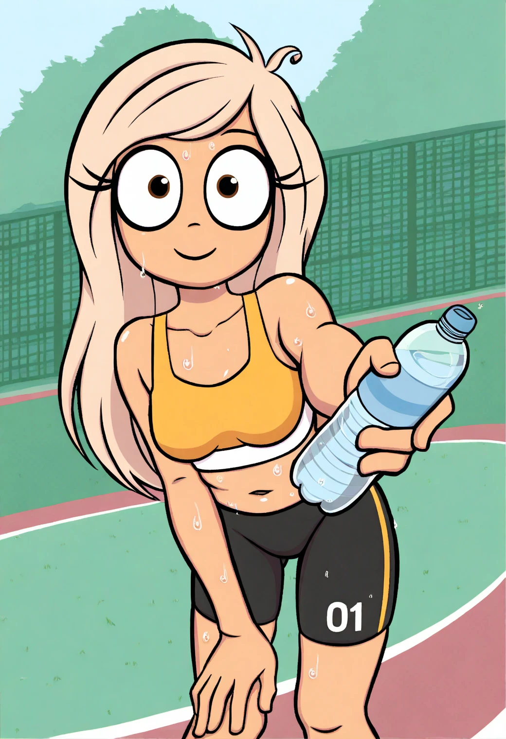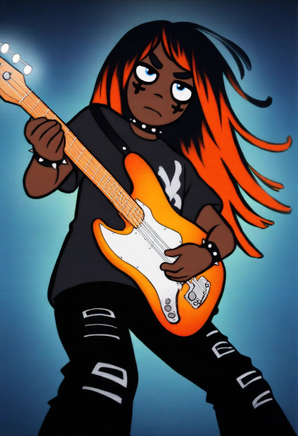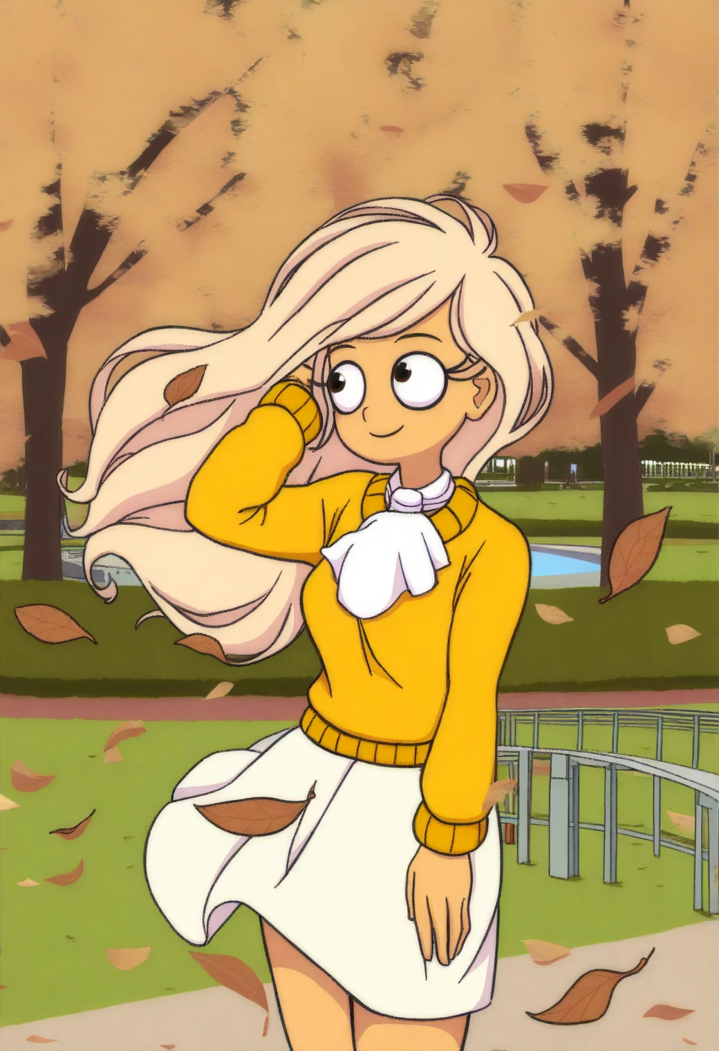 Other helpful triggers: cartoon, flat color, film grain, thick outlines, constricted pupils,