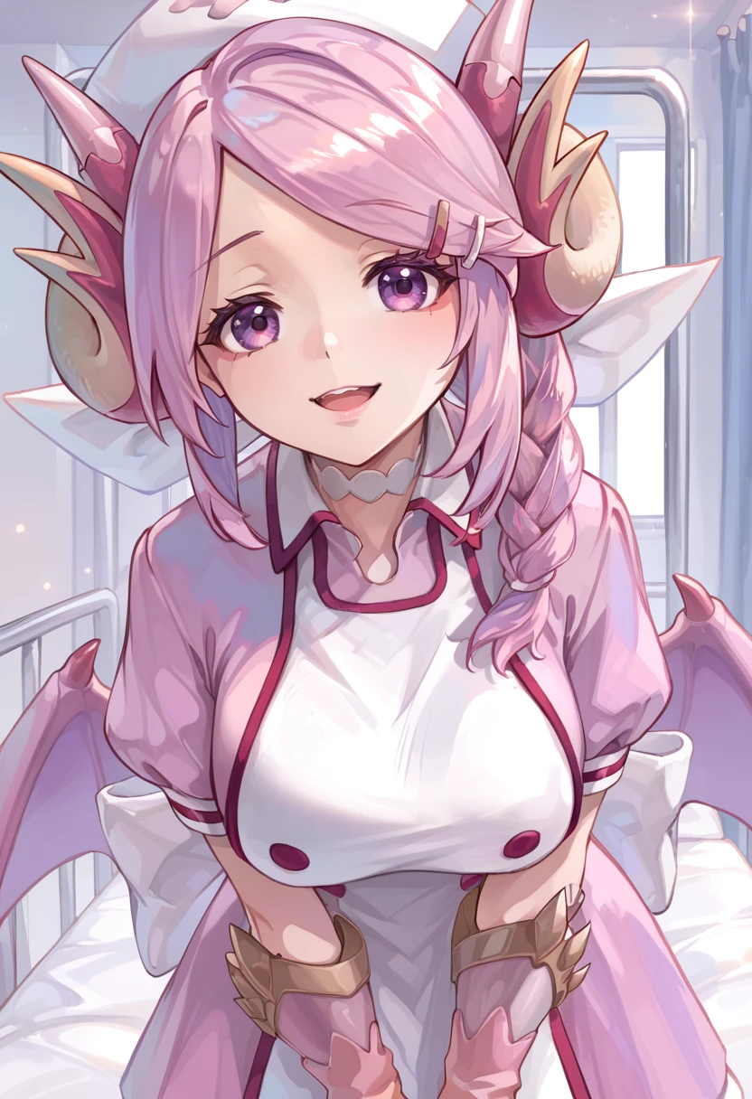 Tags (clothes): nurse cap, nurse dragonmaid, pink wings, nurse dress, pink fingerless gloves, claws boots,