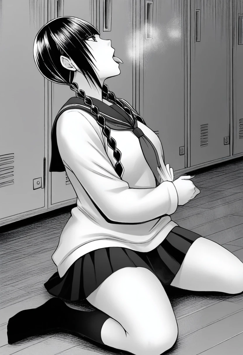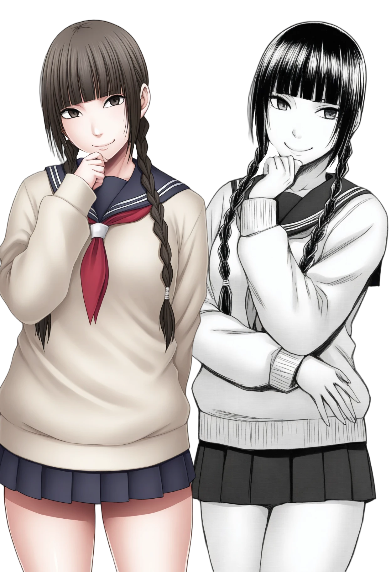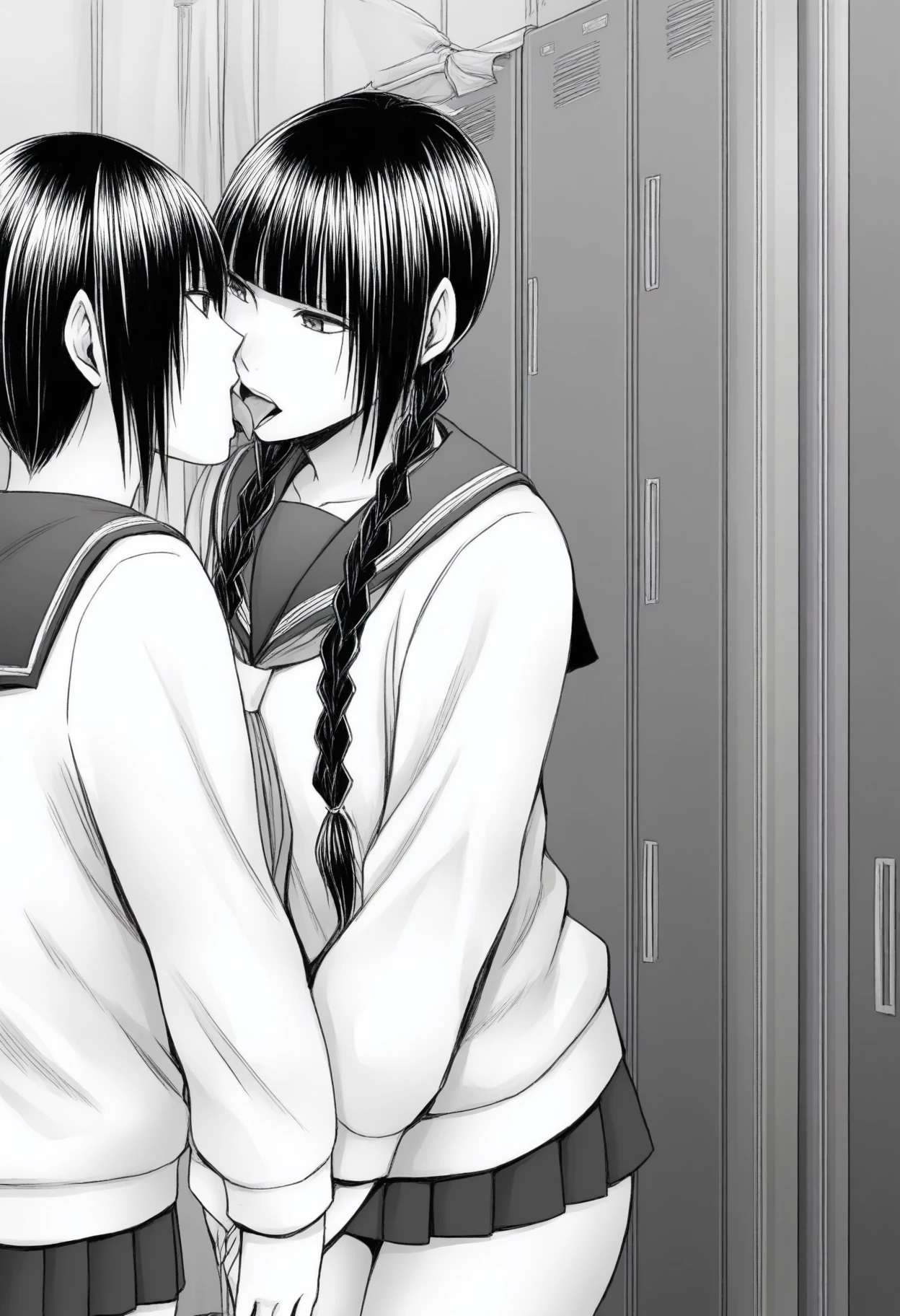 Trigger words: greyscale, c-tsuki, long hair, twin braids,