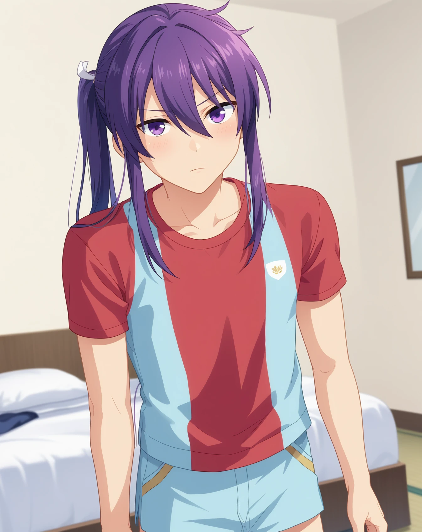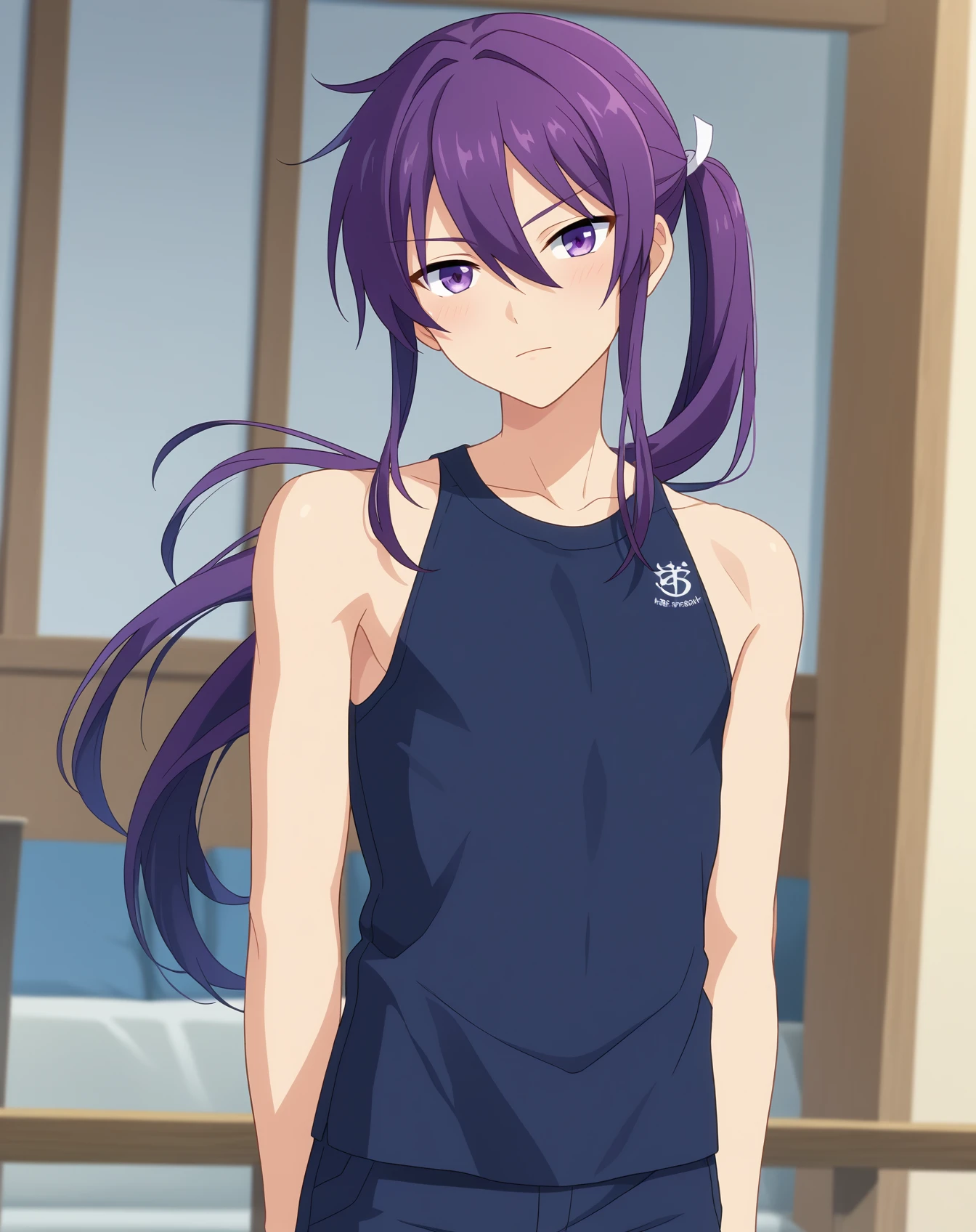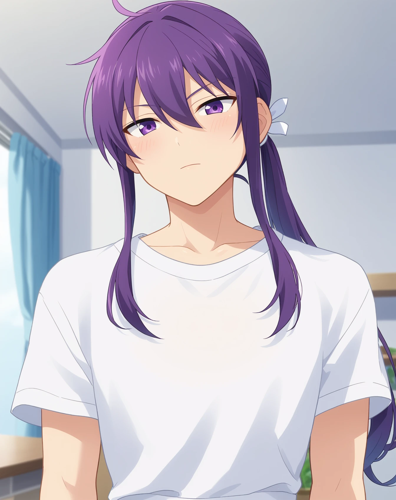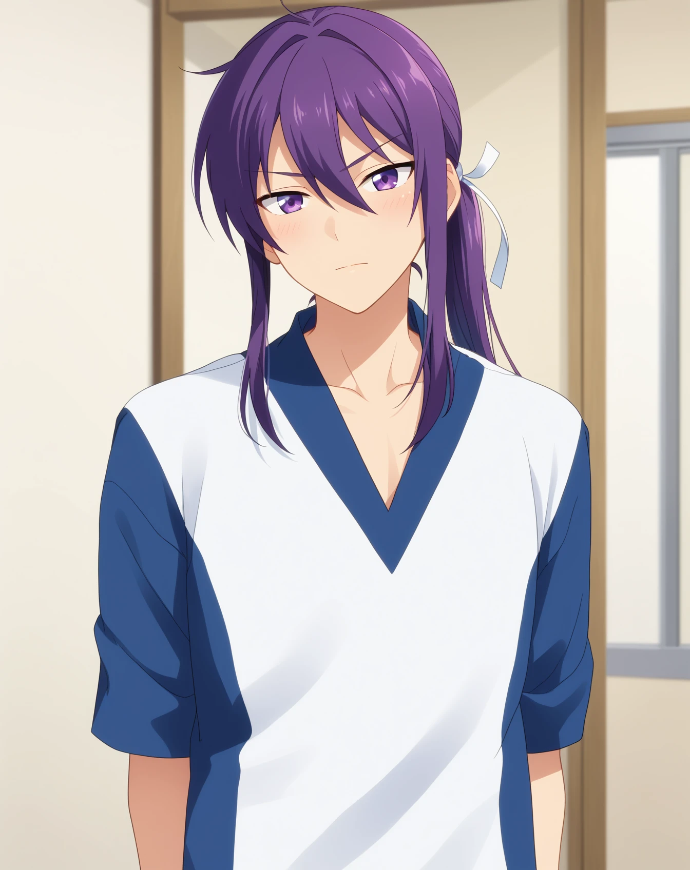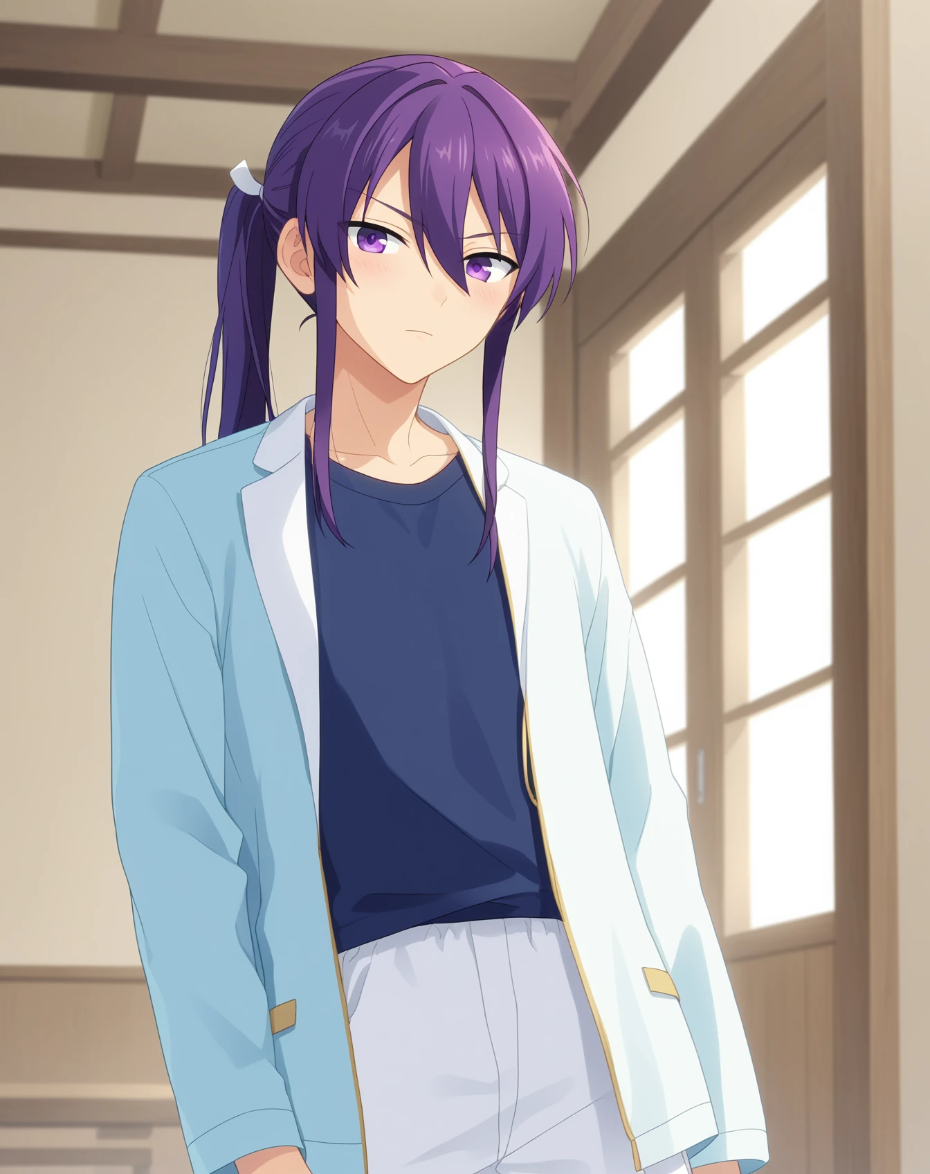 kanzaki_souma_pony, purple hair, purple eyes, long hair, low ponytail,