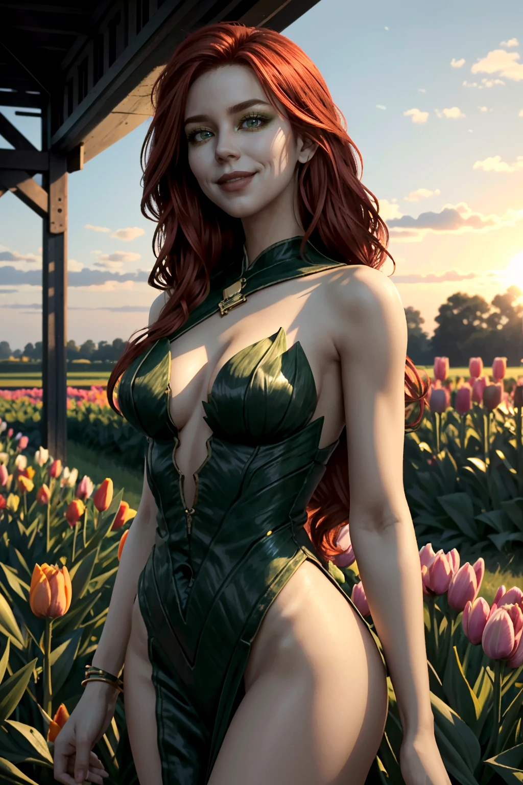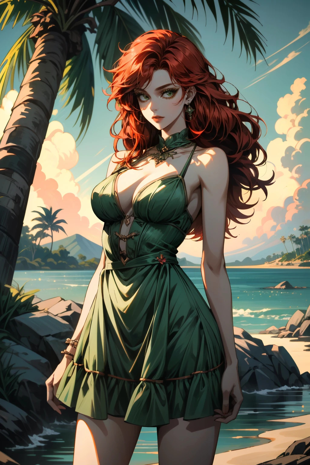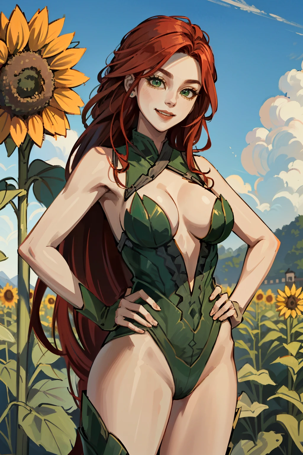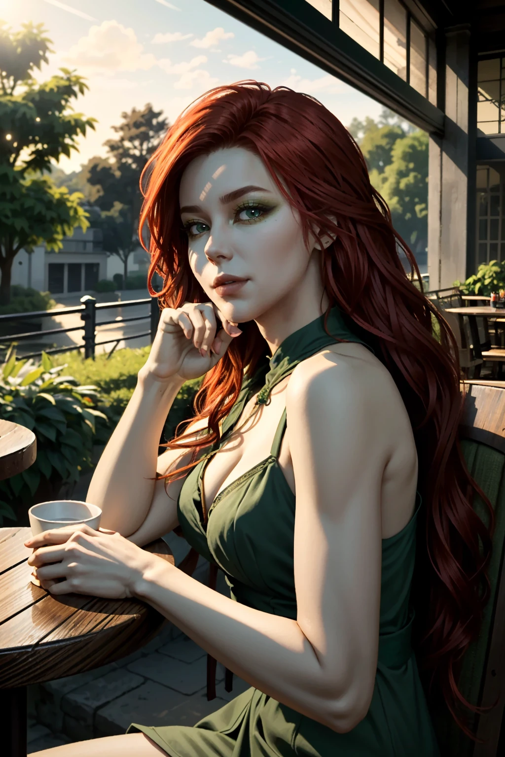 I2PIvy, long hair, red hair, green eyes