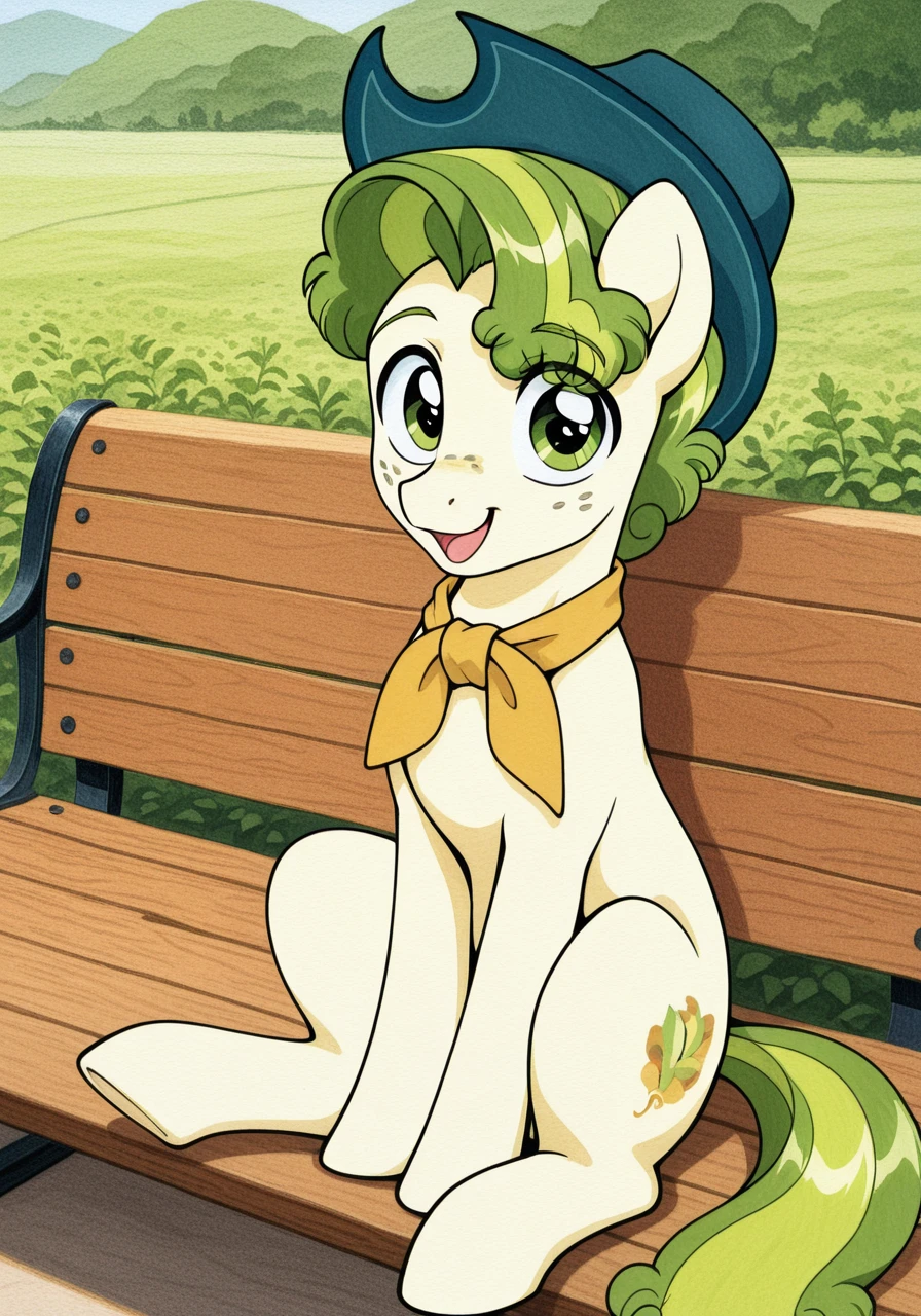 tan fur, green hair, freckles, green eyes