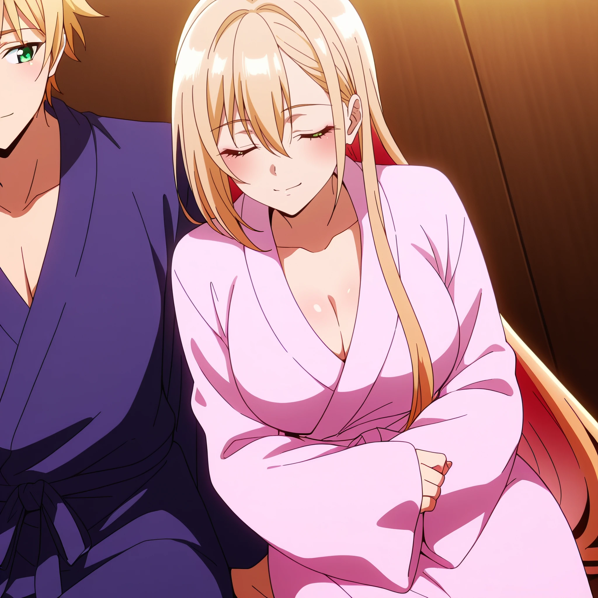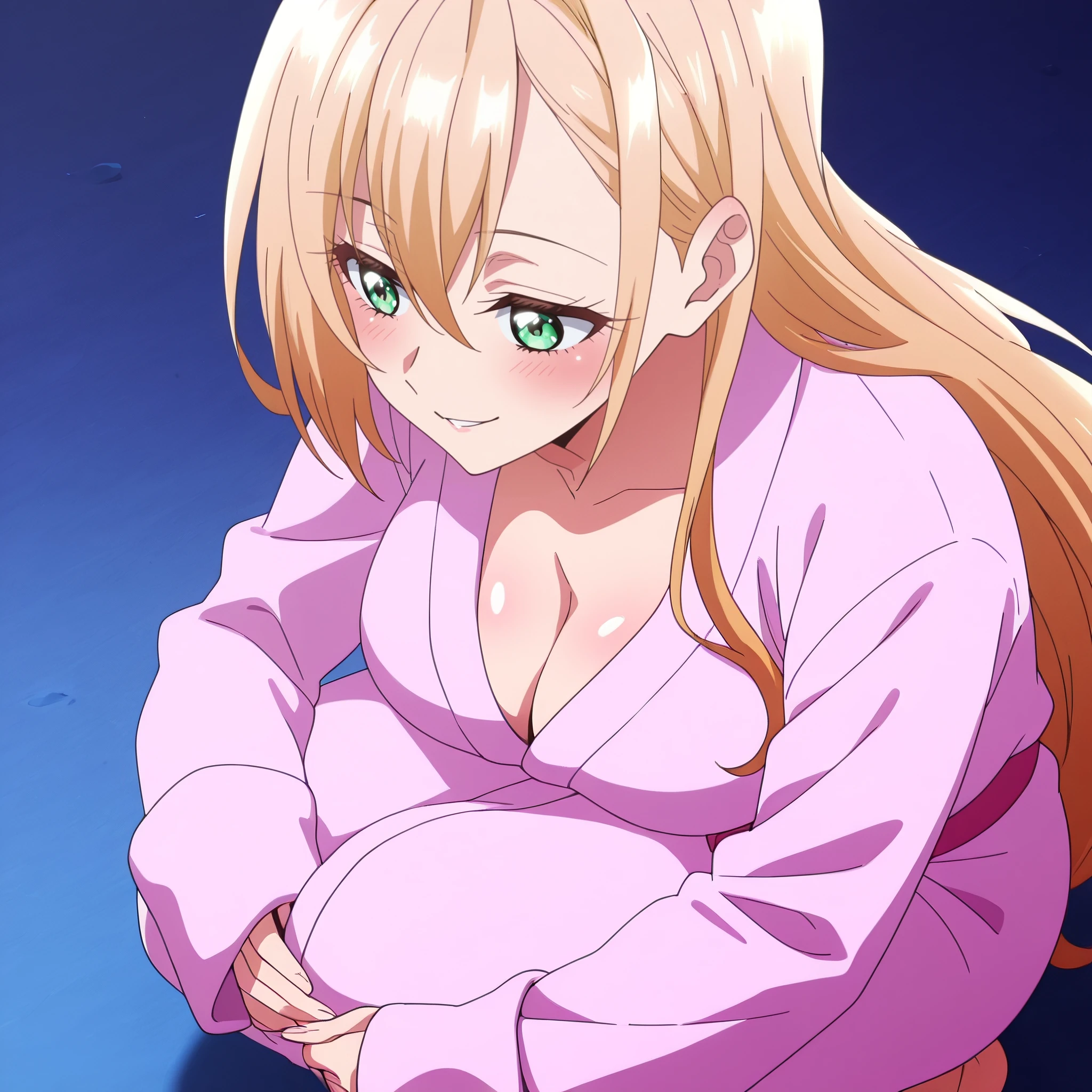 PrimulaBath, long sleeves, bathrobe, pink bathrobe, sleeves past wrists, wide sleeves, cleavage, collarbone,