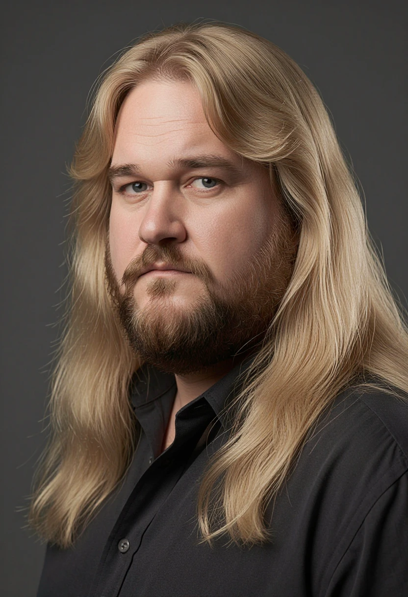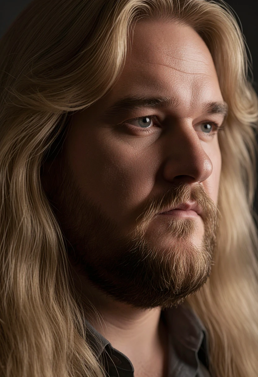 Suggested terms for prompt: B1LL A MAN WITH LONG BLONDE HAIR,and the rest of the prompt