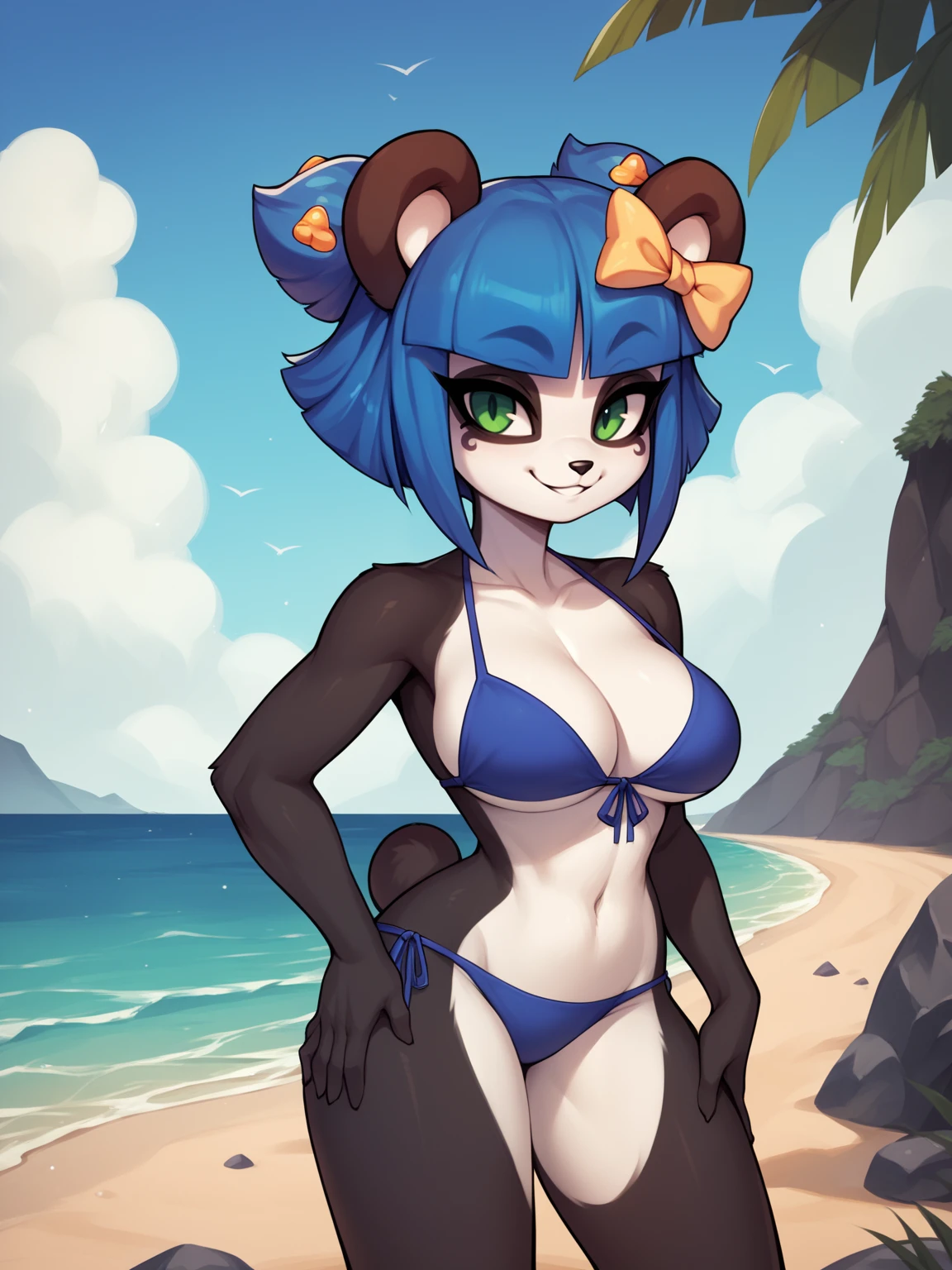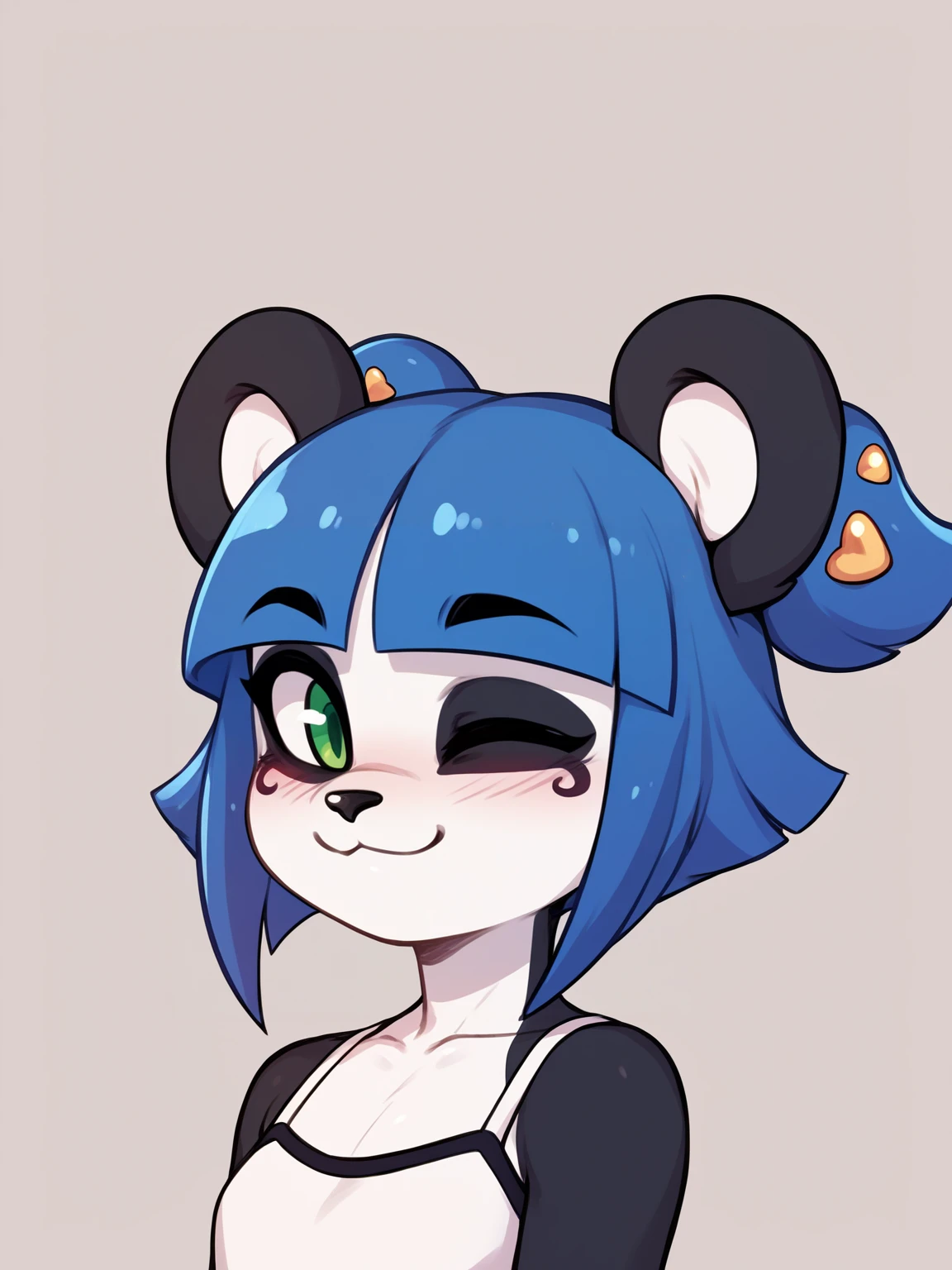 Basic prompts : 1girl, nuwa,blue hair, blunt bangs, short hair, green eyes, hair bow, furry, panda ears, tail