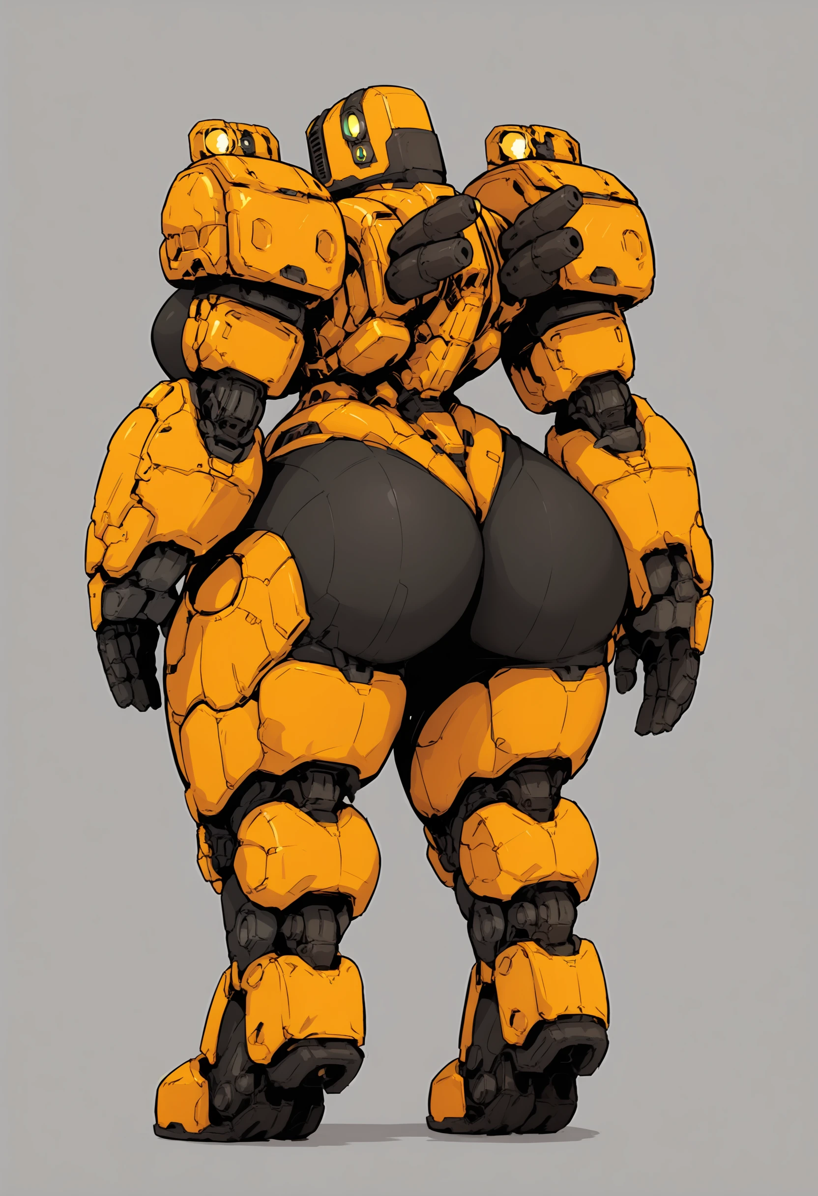 1girl, robot, no humans, mecha, thighs, thick thighs, breasts, huge breasts, standing, upped body, blush