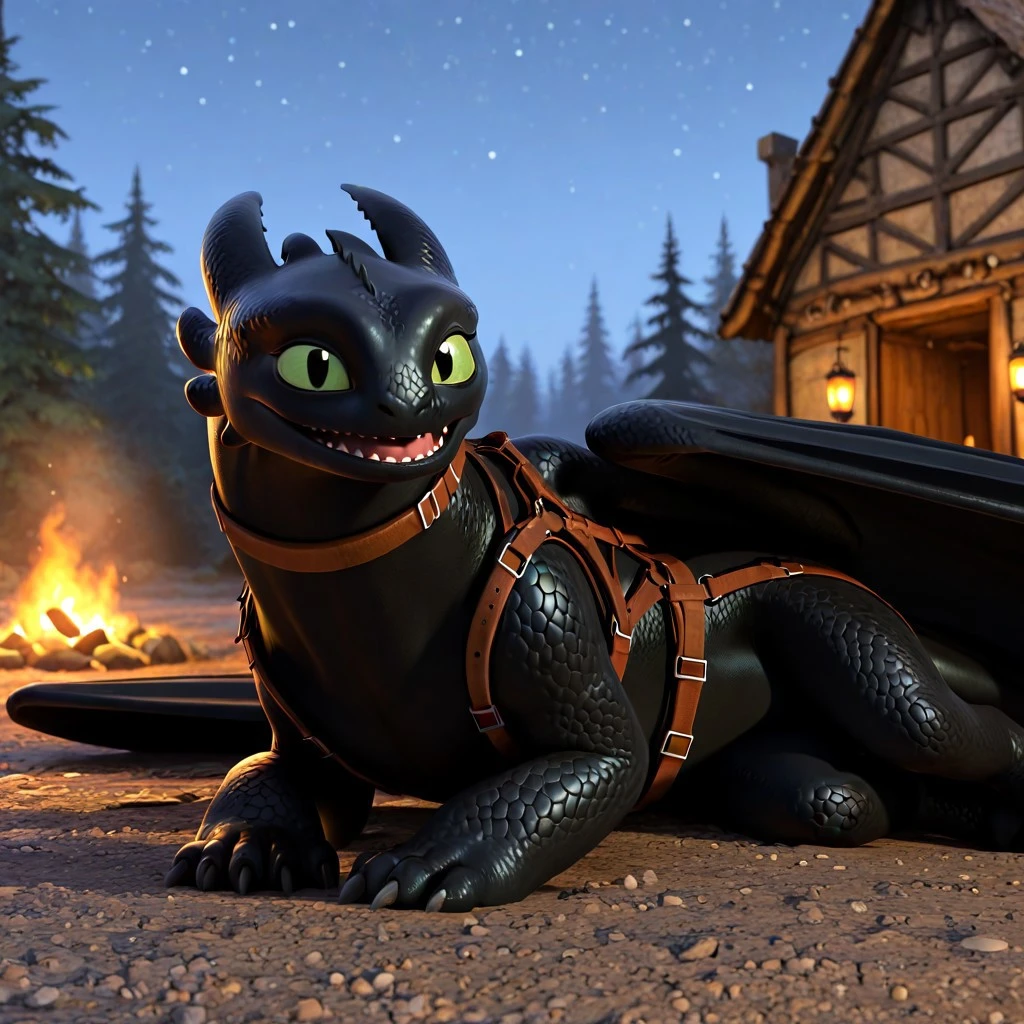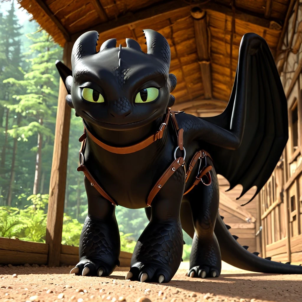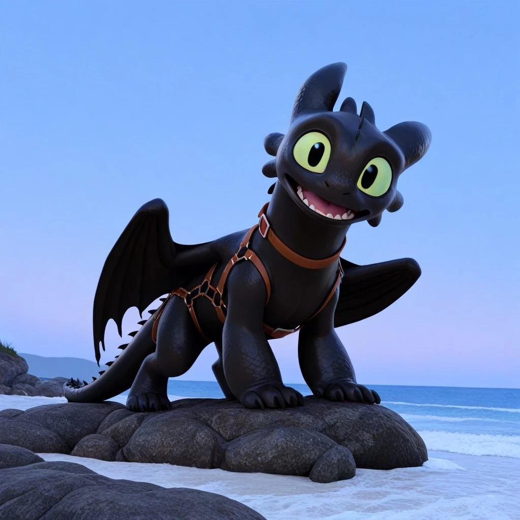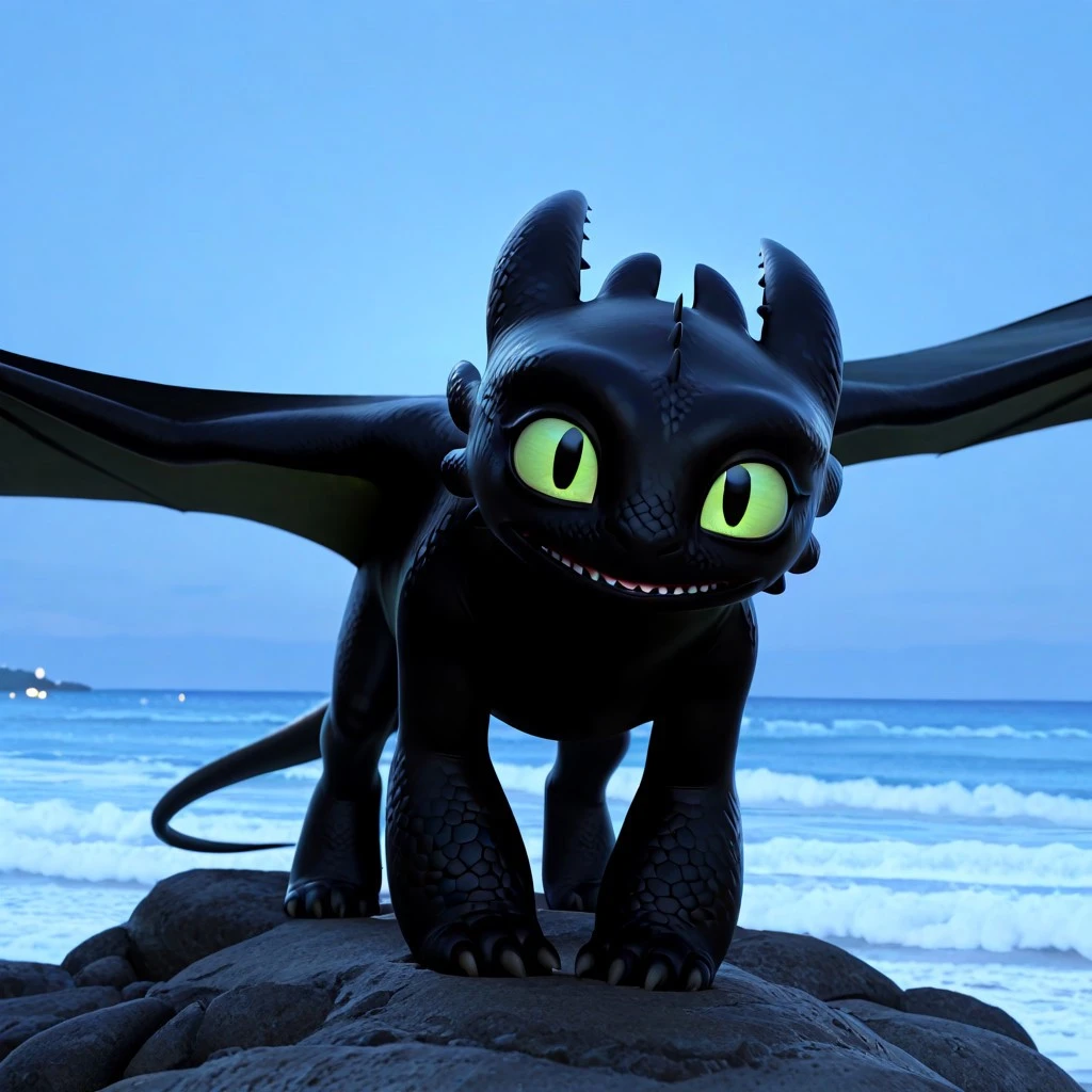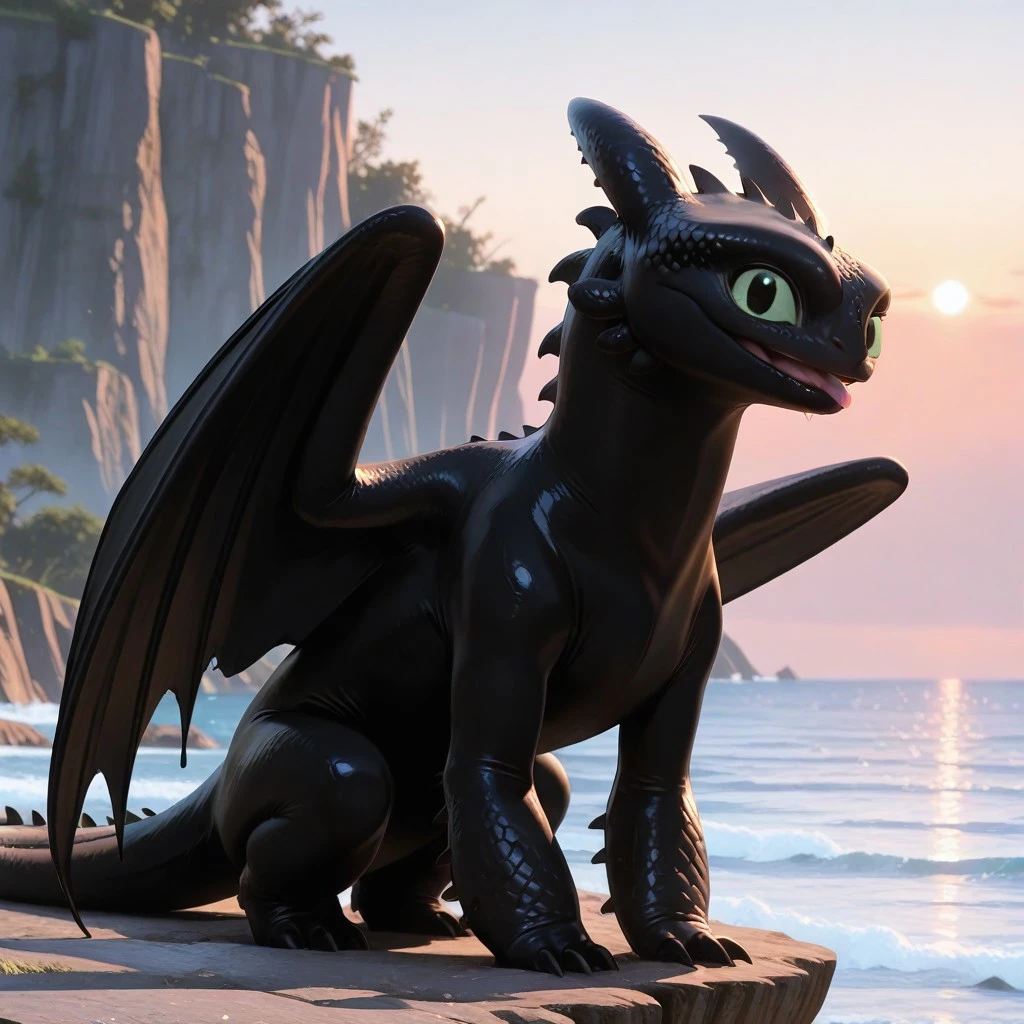 Toothle55, dragon, black body, black scales, claws, tail, wings, green sclera, black pupils