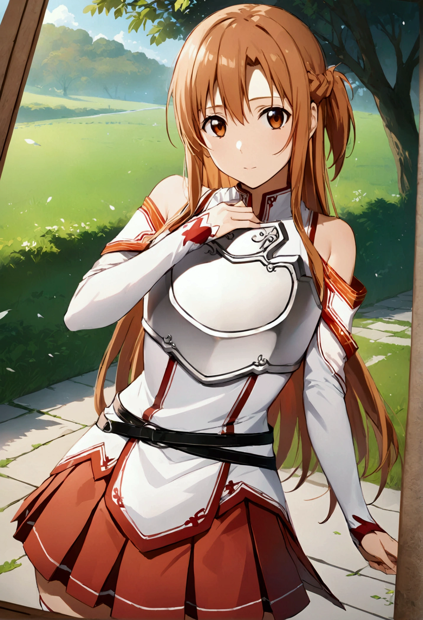 asuna \(sao\), bangs, braid, brown eyes, brown hair, long hair,
