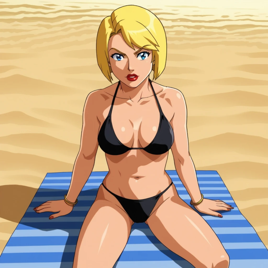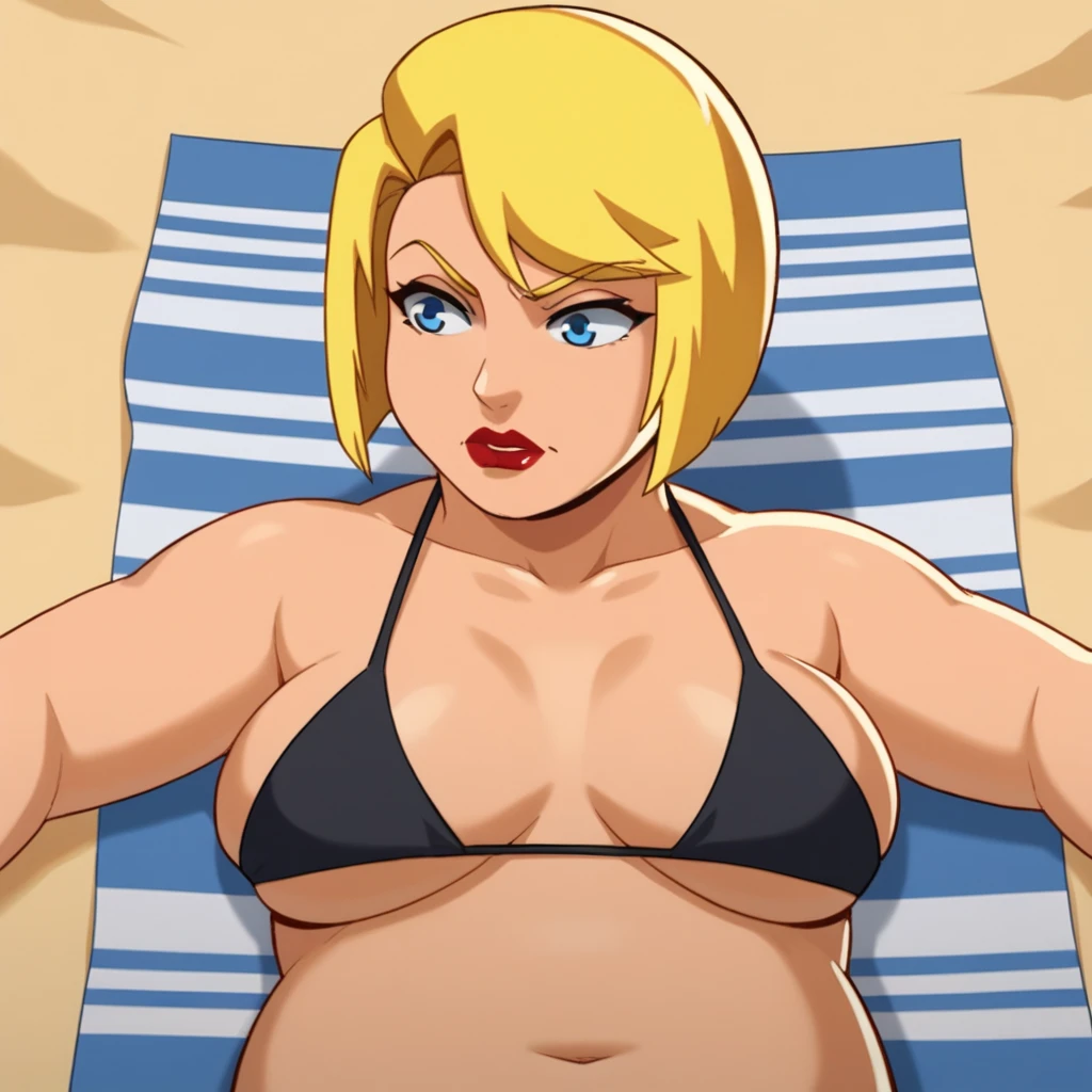 PrincipalShields, 1girl, solo, blonde hair, short hair, blue eyes, lipstick,
