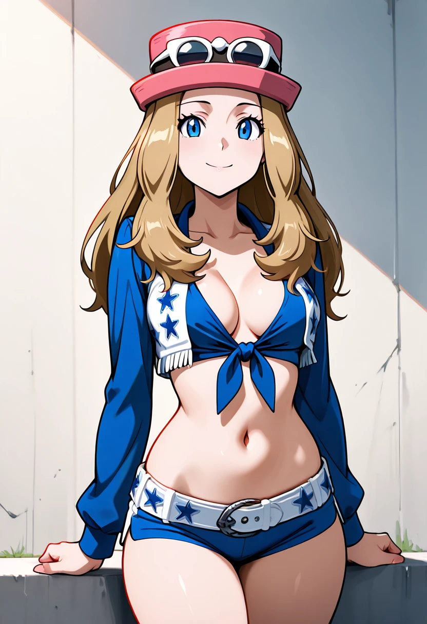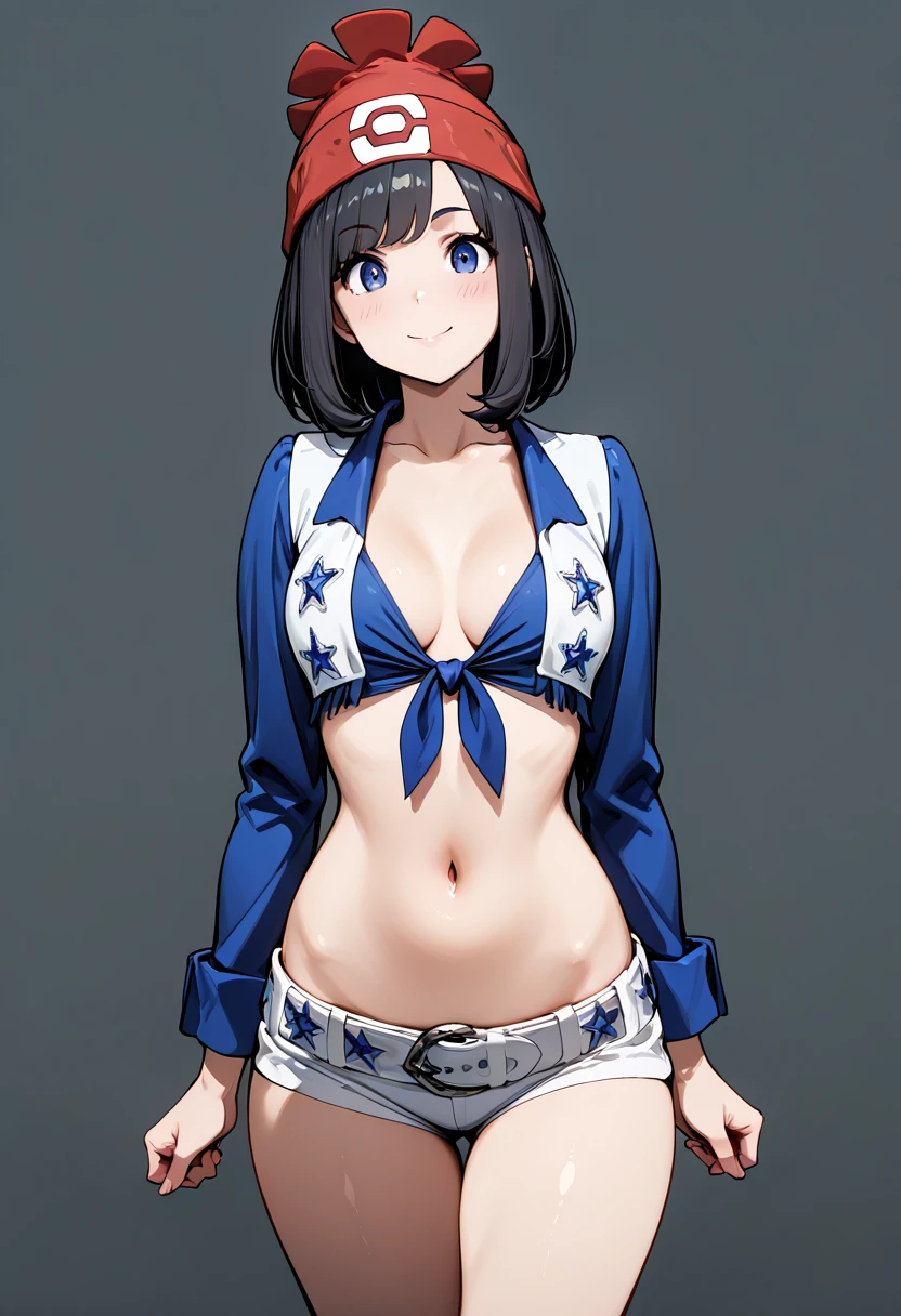 DalCowCheer, navel, midriff, belt, blue tied shirt, white vest, white shorts, short shorts, skindentation,