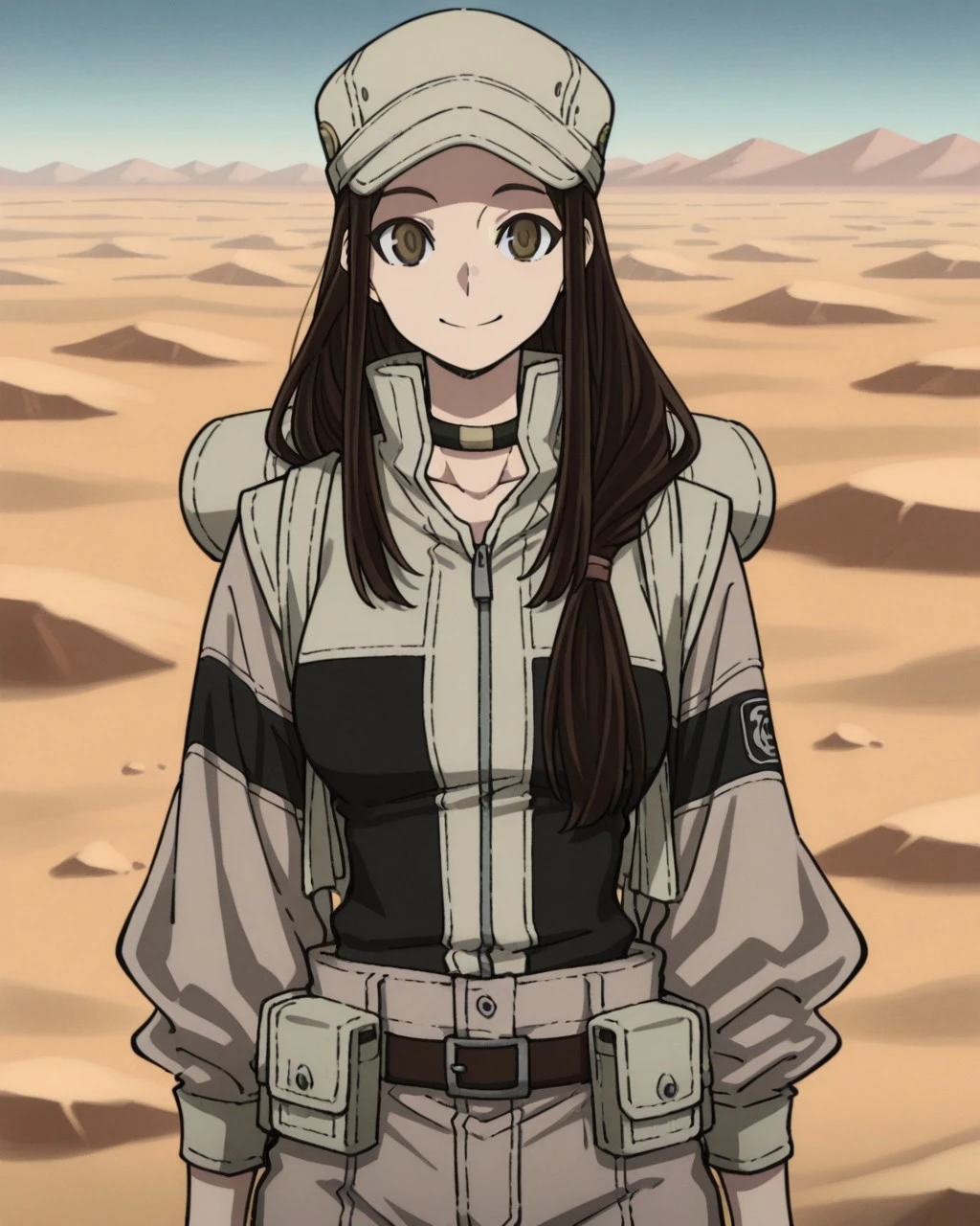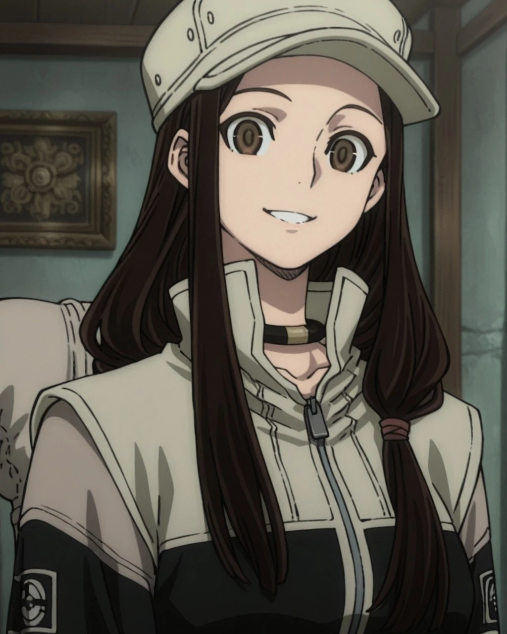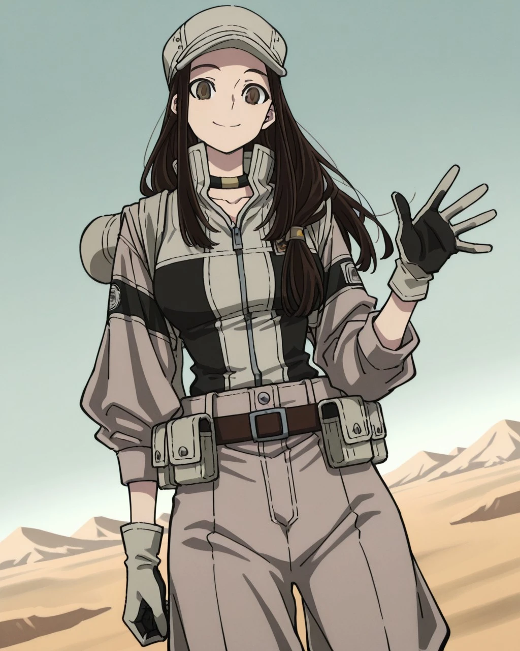 tomme,brown hair,long hair,brown eyes,hat,neckband,gloves
