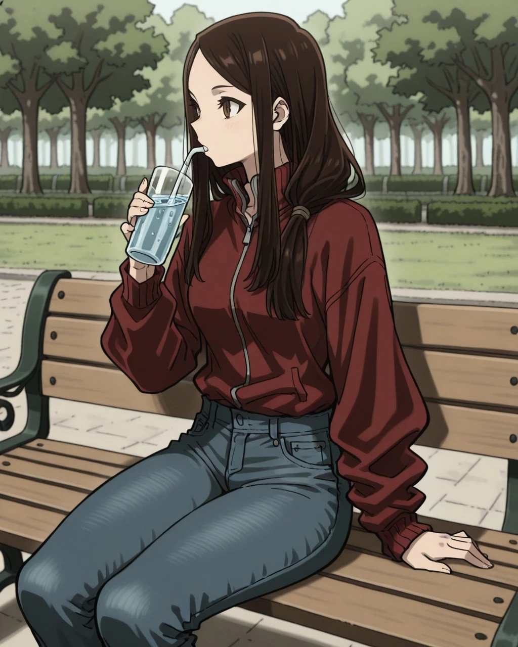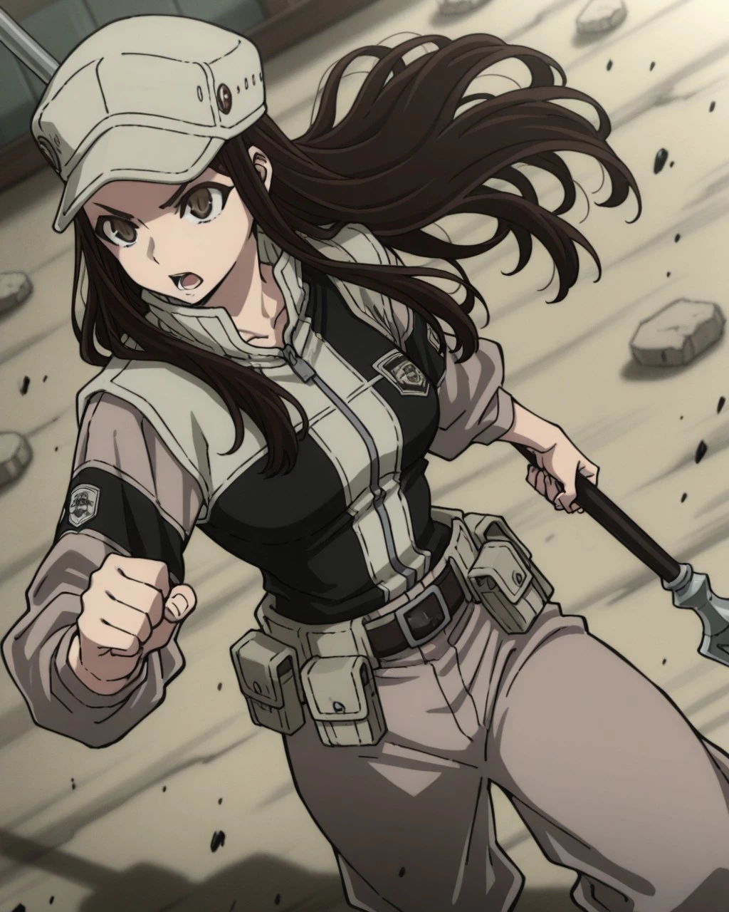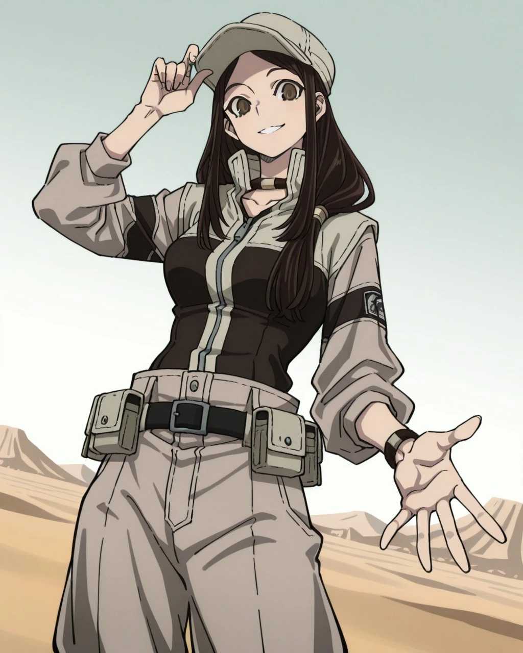 tomme,brown hair,long hair,brown eyes,hat,neckband,gloves